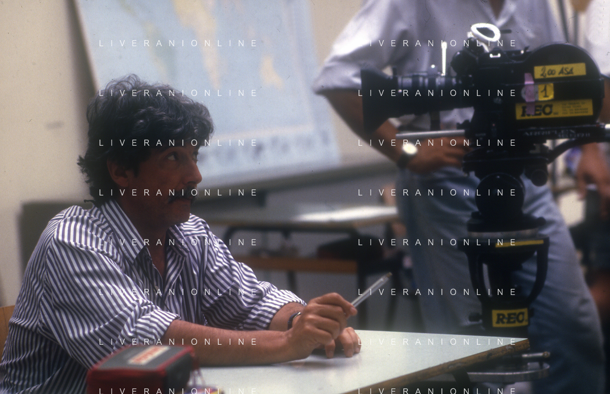DIAP-RETROSPETTIVA MARA VENIER ATTIRCE E PRESENTATRICE TELEVISIVA NELLA FOTO RUGGIERO MITI REGISTA SUL SET DEL FILM“IL GOAL DI MARTIN PESCATORE “NELL'ANNO 1997 AG ALDO LIVERANI SAS
