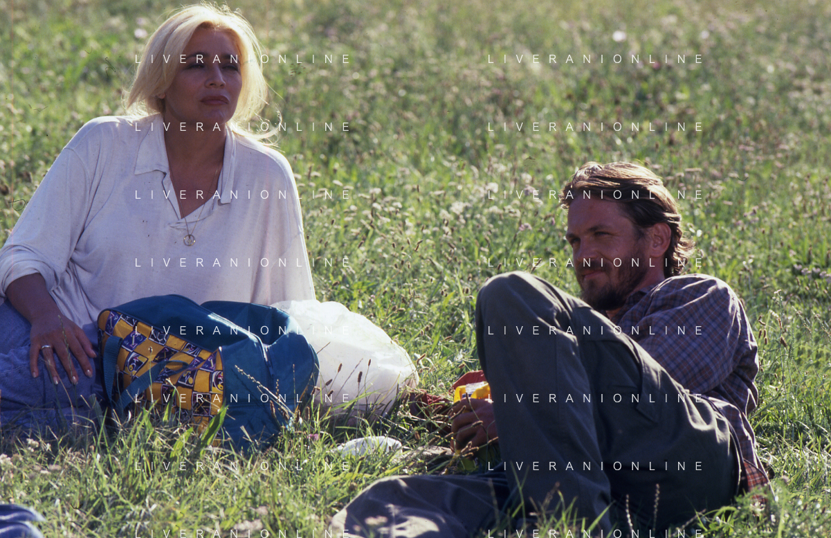 DIAP-RETROSPETTIVA MARA VENIER ATTIRCE E PRESENTATRICE TELEVISIVA NELLA FOTO MARA VENIER CON LORENZO DE ANGELIS SUL SET DEL FILM“IL GOAL DI MARTIN PESCATORE “NELL'ANNO 1997 AG ALDO LIVERANI SAS
