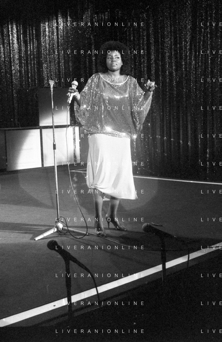 Neg- RETROSPETTIVA GLORIA GAYNOR CANTANTE NELLA FOTO AL CLUB 54 A MILANO NEL 1979 AG ALDO LIVERANI SAS