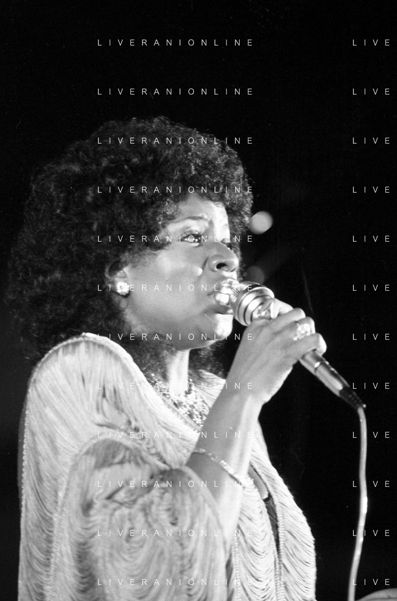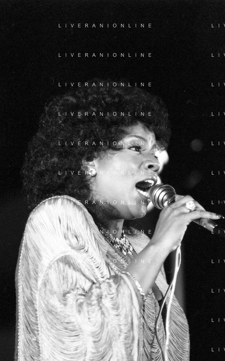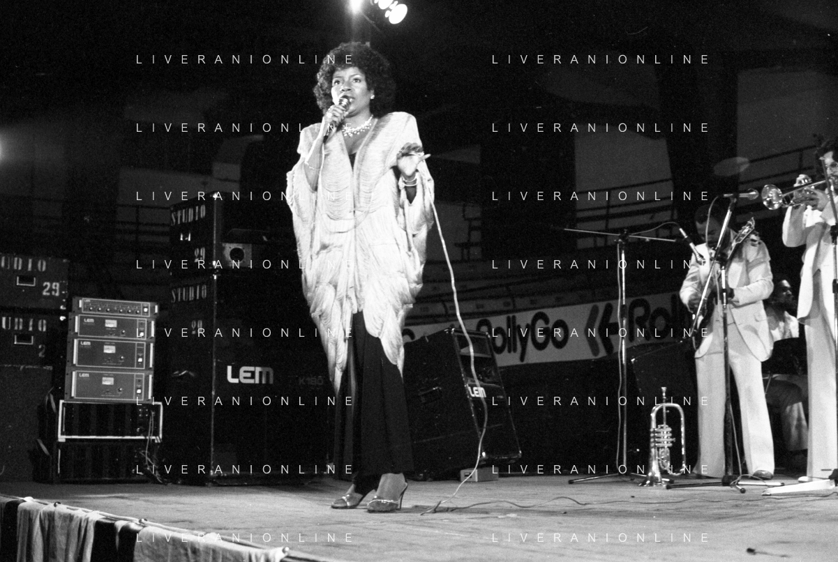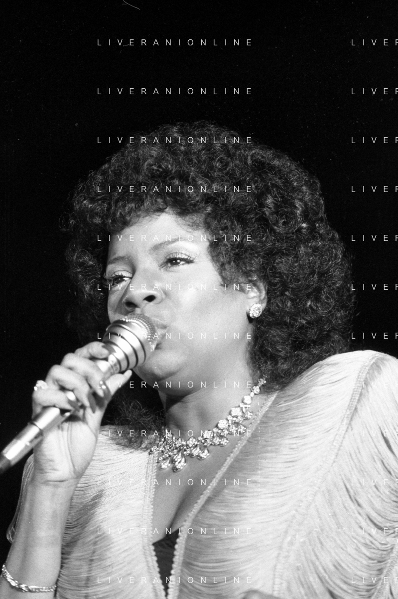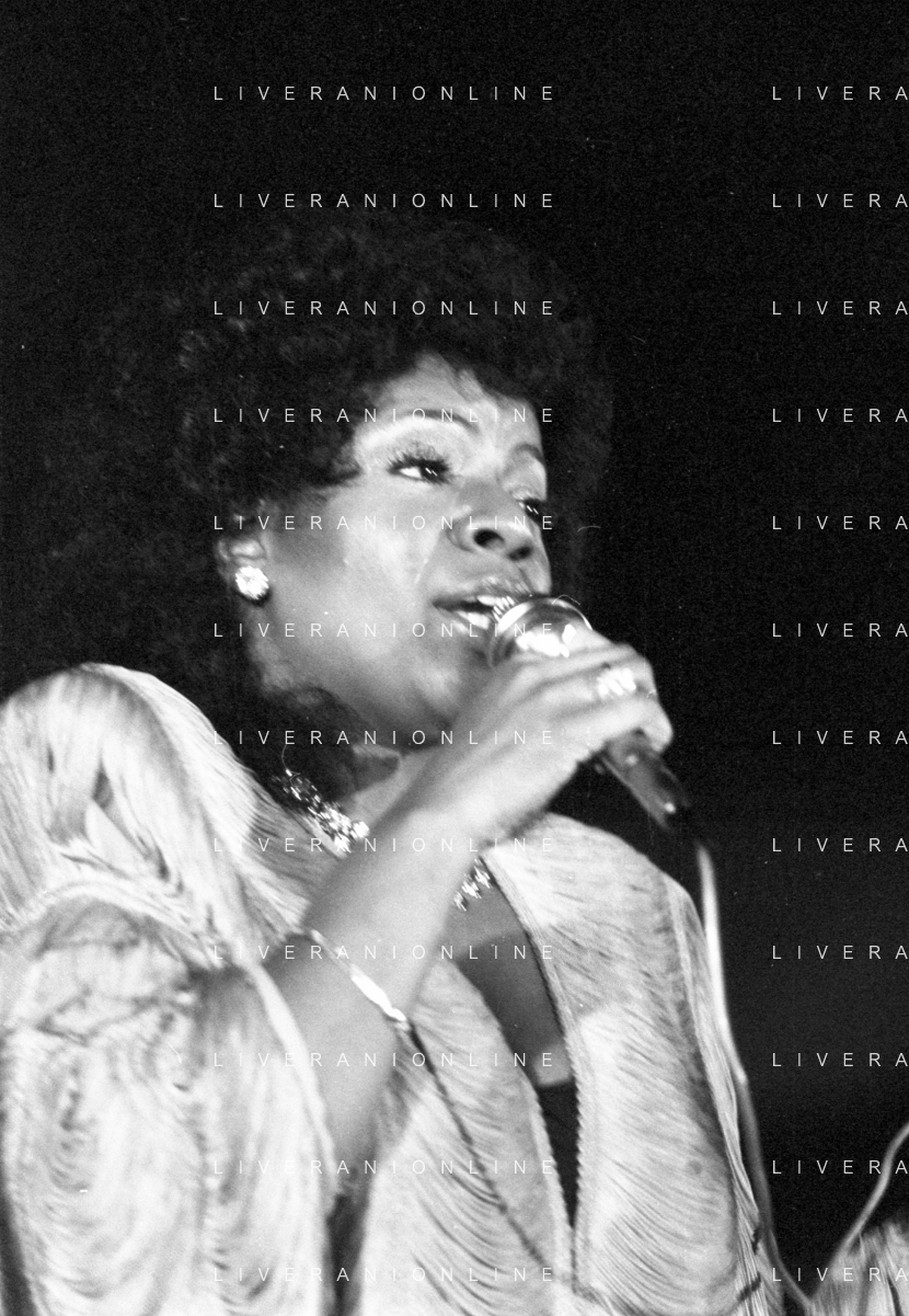 Neg- RETROSPETTIVA GLORIA GAYNOR CANTANTE NELLA FOTO A MILANO NEL 1982 AG ALDO LIVERANI SAS