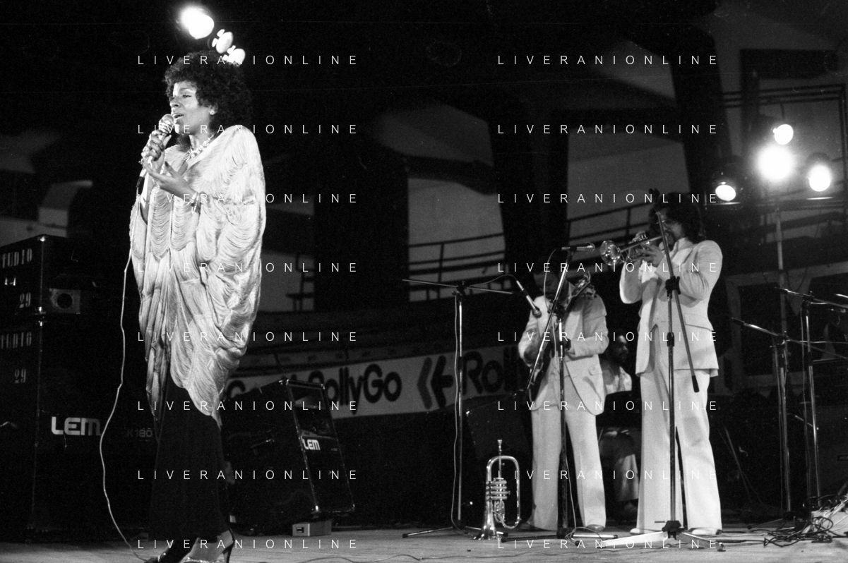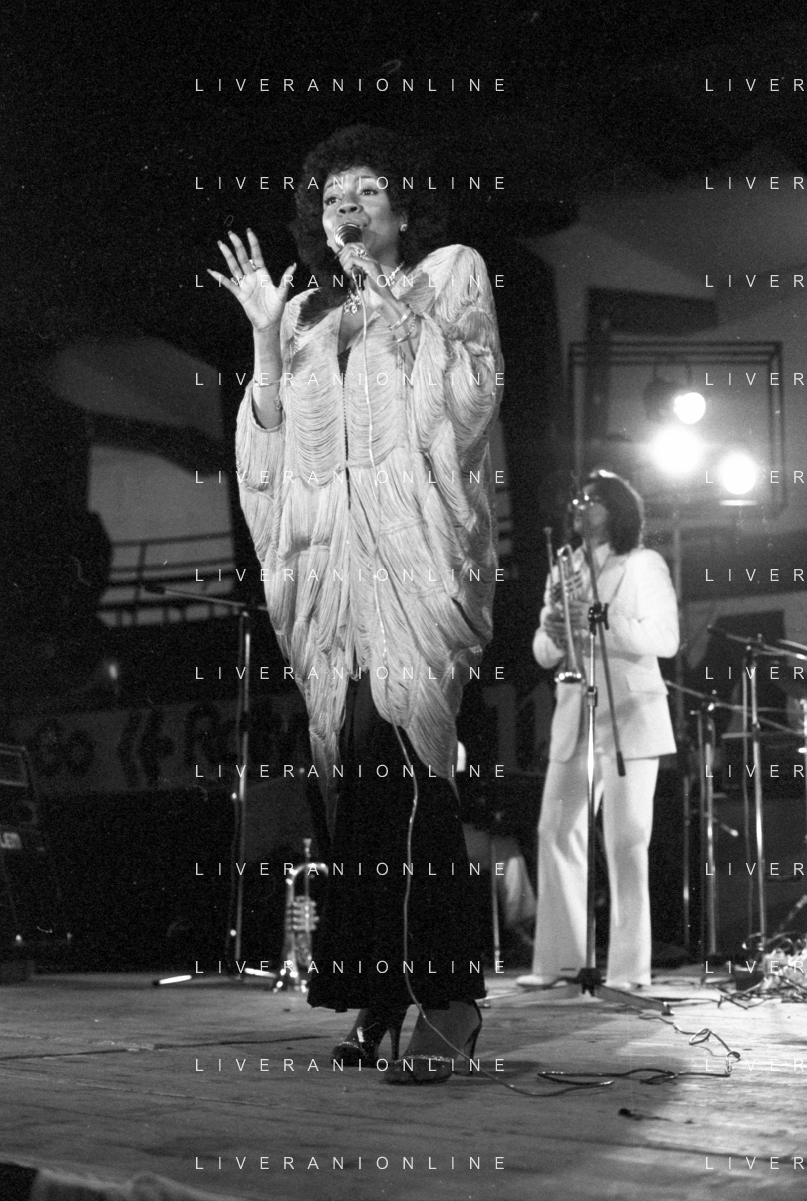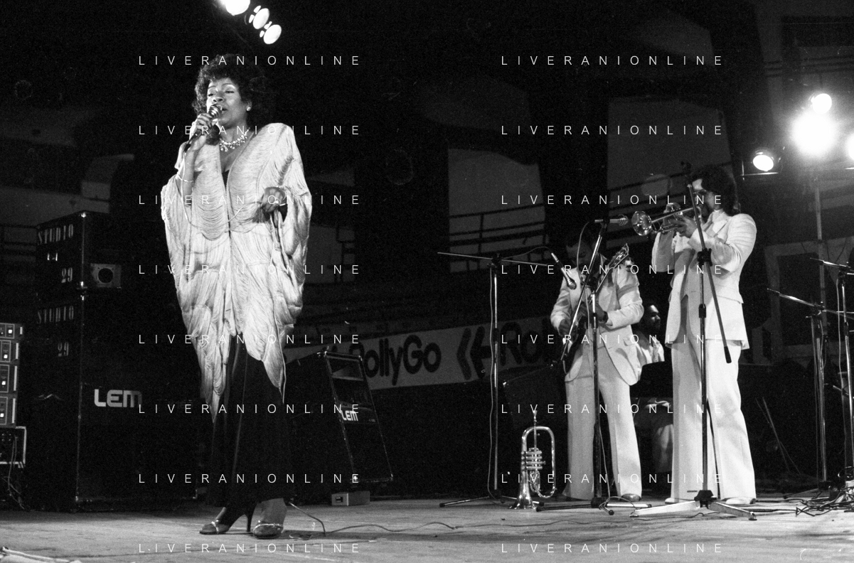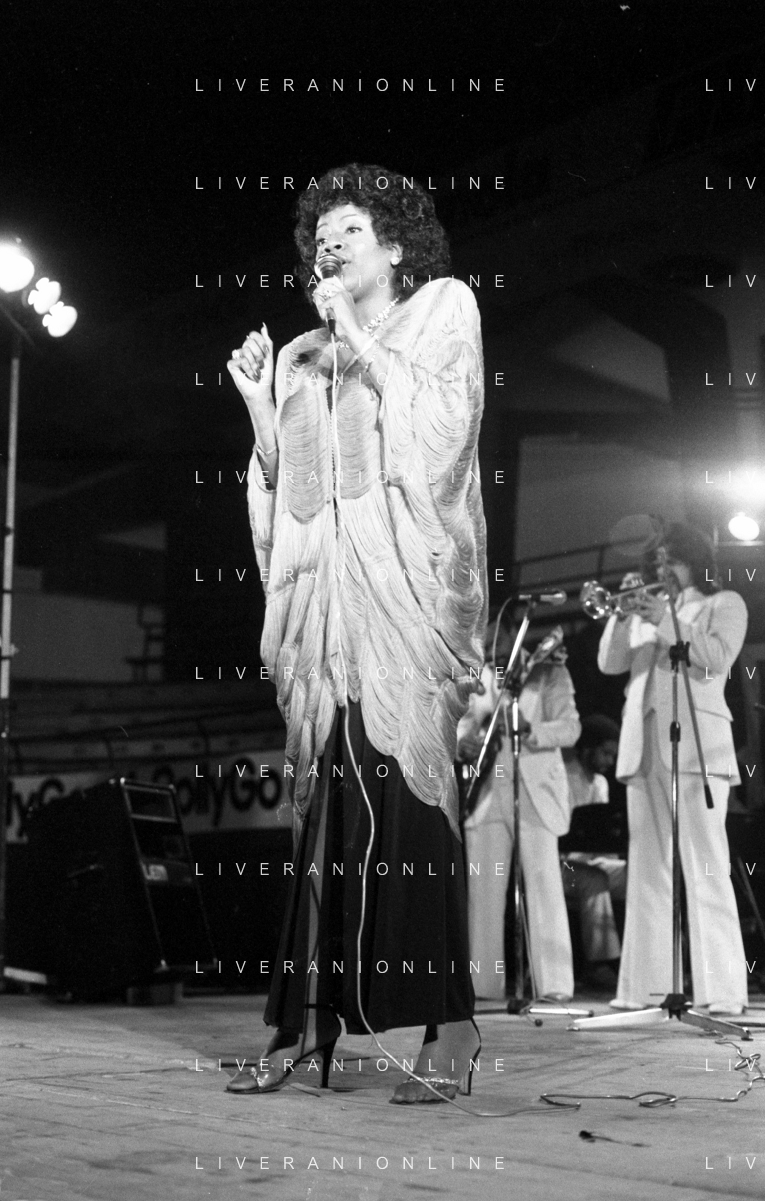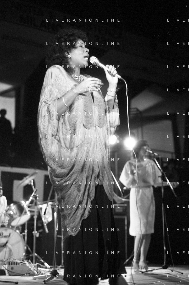Neg- RETROSPETTIVA GLORIA GAYNOR CANTANTE NELLA FOTO A MILANO NEL 1982 AG ALDO LIVERANI SAS