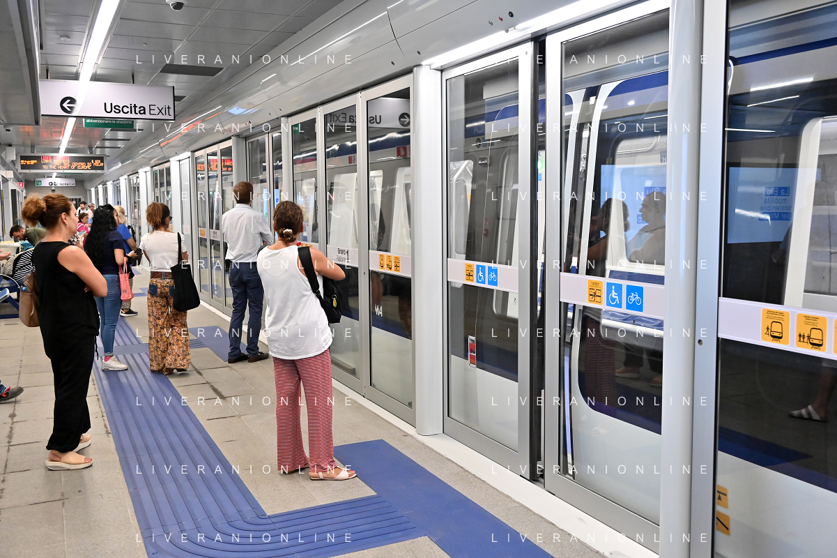 TVRG Metropolitana M4 Milano 05-07-2023 Completata e aperta al pubblico la tratta della linea metropolitana M4 tra le stazioni di San Babila e l'aeroportro di Milano Linate foto Roberto Garavaglia/ag. Aldo Liverani sas/AGENZIA ALDO LIVERANI SAS