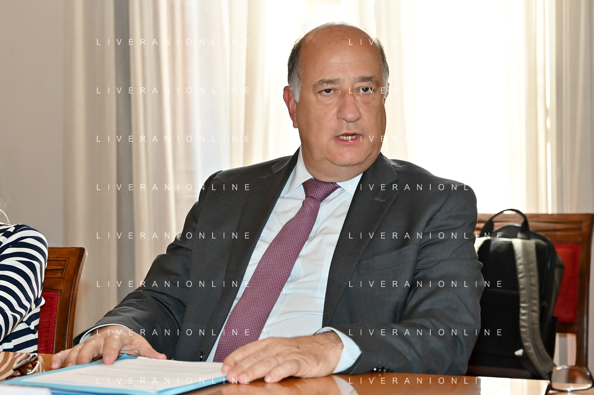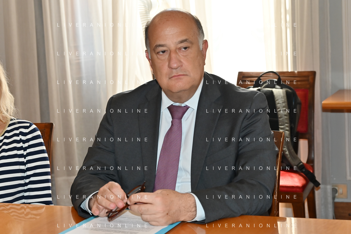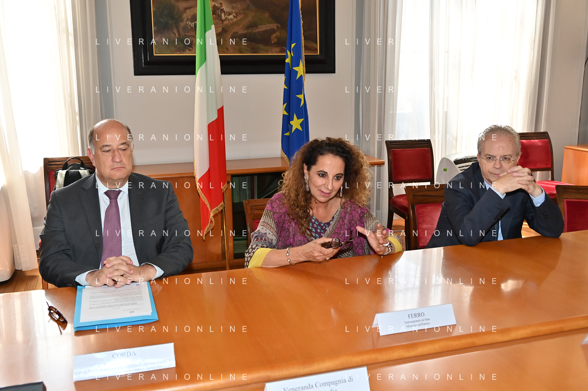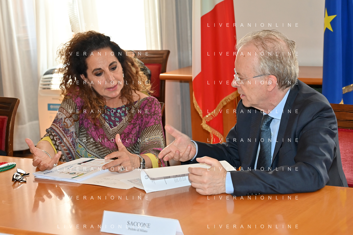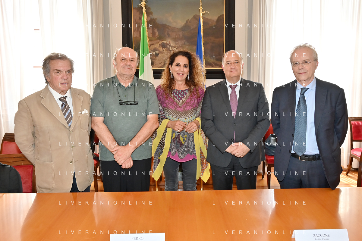 TVRG Assegnazione beni confiscati nella foto da SX Enrico Giuseppe Rosselli della Veneranda Compagnia di Misericordia di Genova, Piergiorgio Novelli della Fondazione Somaschi onlus di Gorgonzola, Wanda Ferro sottosegratrio all'interno, Bruno Corda prefetto direttore dell'ANBSC e Renato Saccone prefetto di Milano Milano 05-07-2023 Conferenza di servizi dell'ANBSC presso la Prefettura di Milano per l'assegnazione di beni confiscati alla crminalita' organizzata foto Roberto Garavaglia/ag. Aldo Liverani sas/AGENZIA ALDO LIVERANI SAS