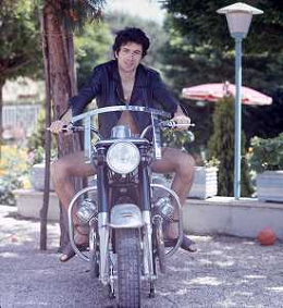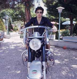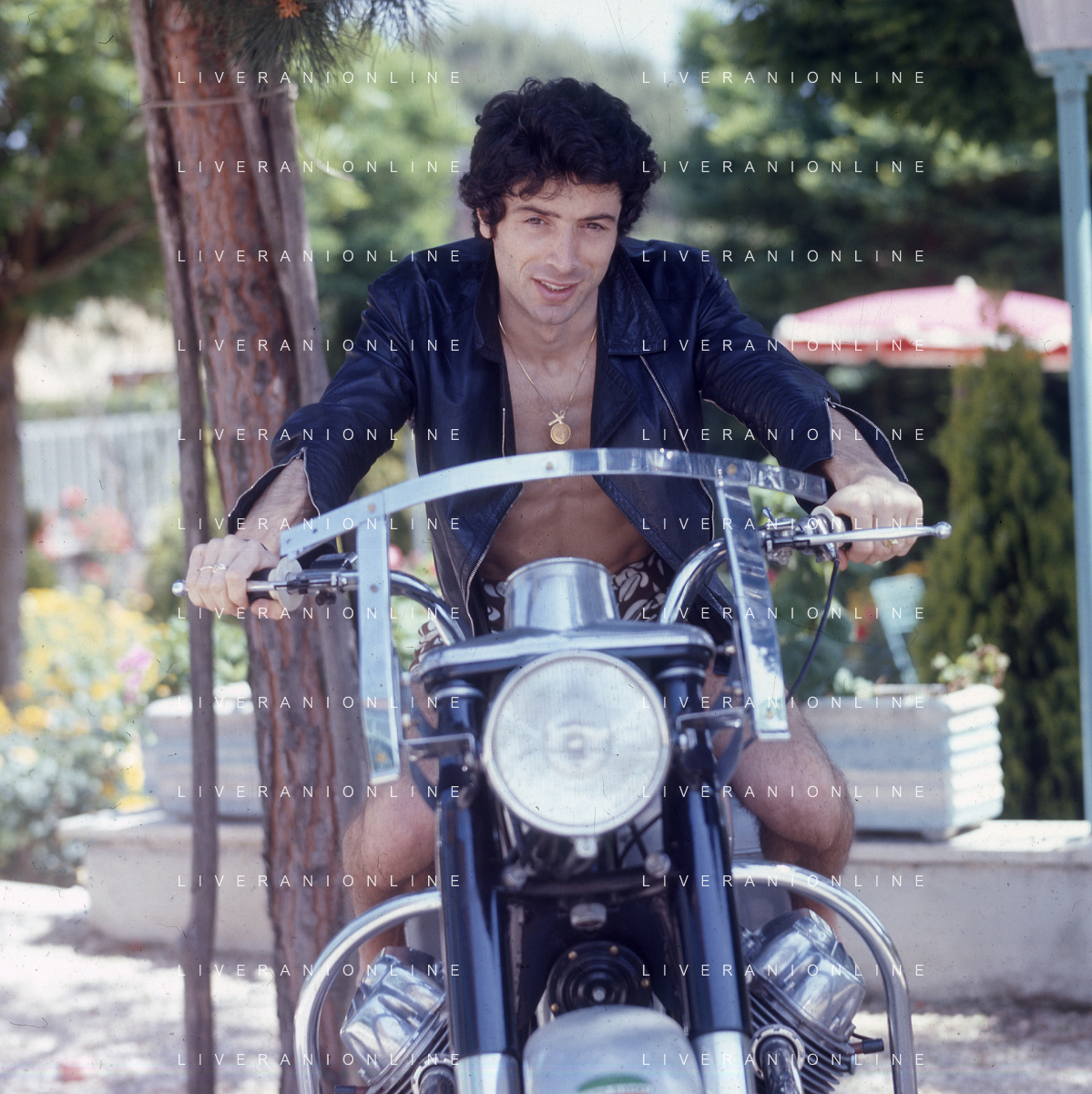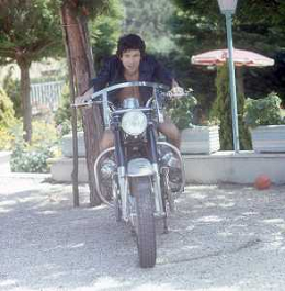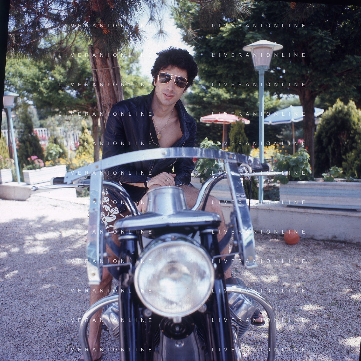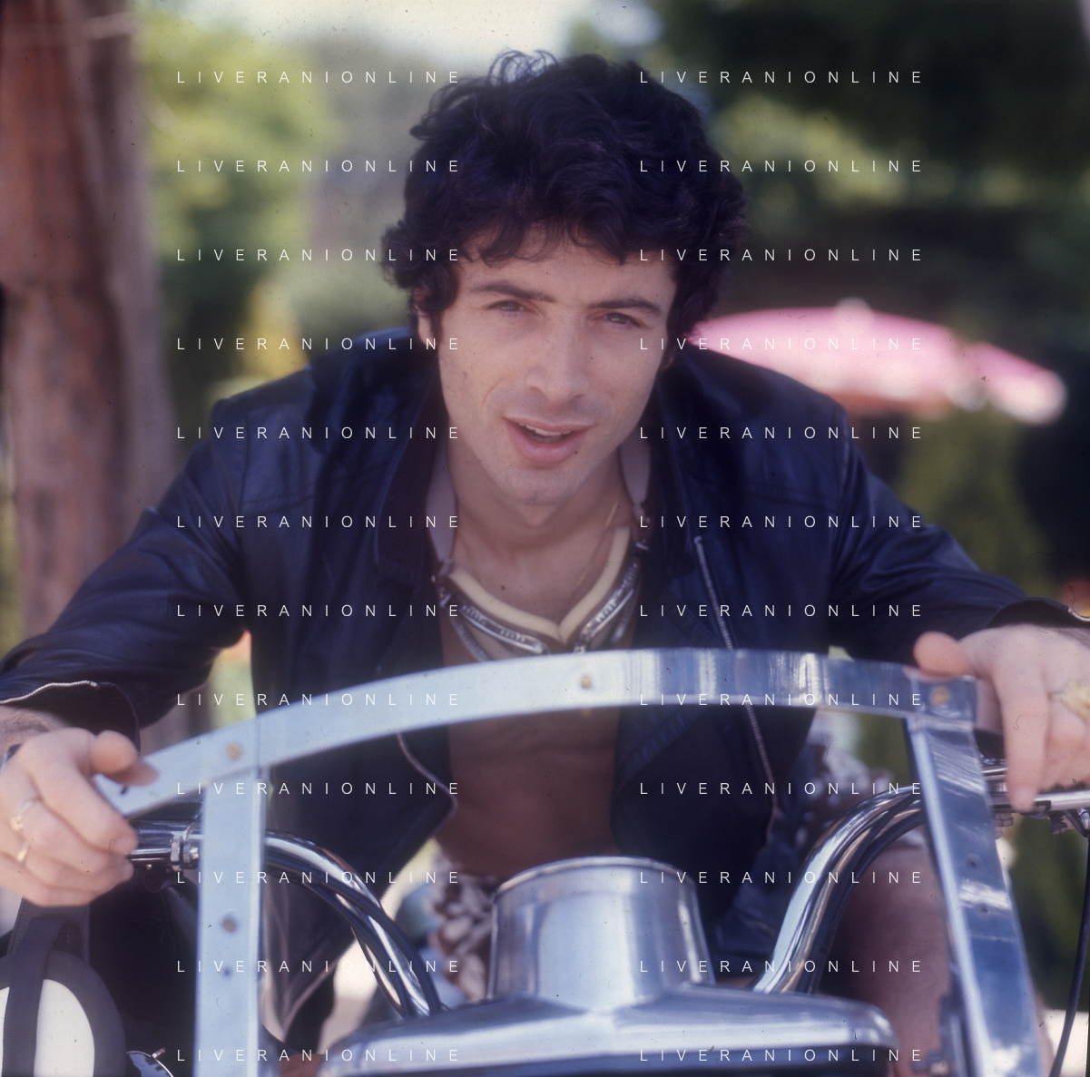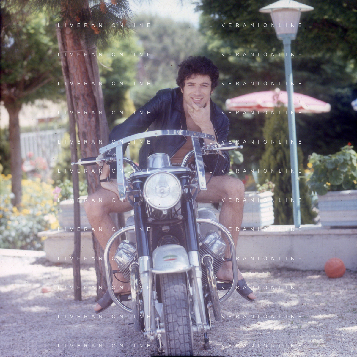 COL--RETROSPETTIVA DON BACKY PSEUDONIMO DI ALDO CAPONI CANTAUTORE ATTORE E SCRITTORE NELLA FOTO DON BACKY SULLA MOTOCICLETTA GUZZI AG ALDO LIVERANI SAS