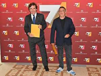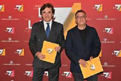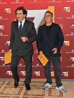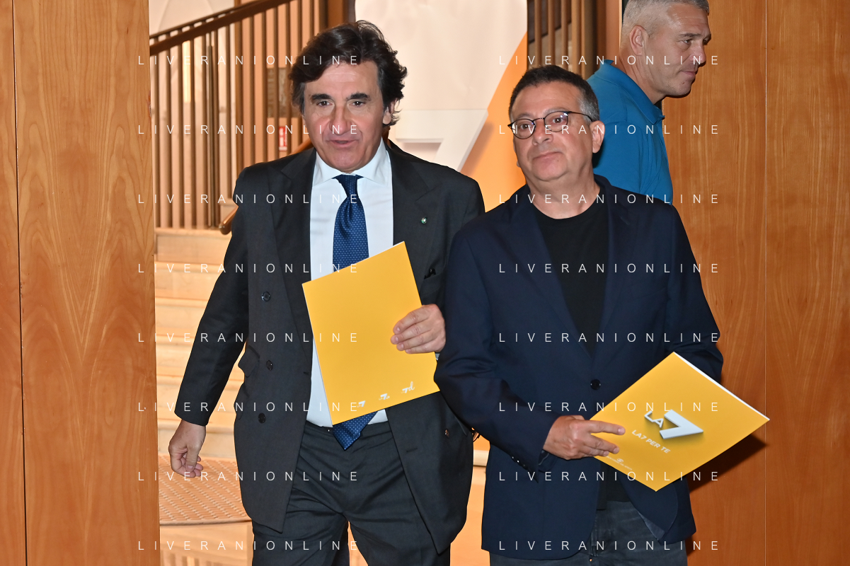 TVRG Palinsesti La7 nella foto Urbano Cairo SX e Andrea Salerno DX Milano 11-07-2023 Photocall in occasione della presentazione dei palinsesti de La7 foto Roberto Garavaglia/ag. Aldo Liverani sas/AGENZIA ALDO LIVERANI SAS