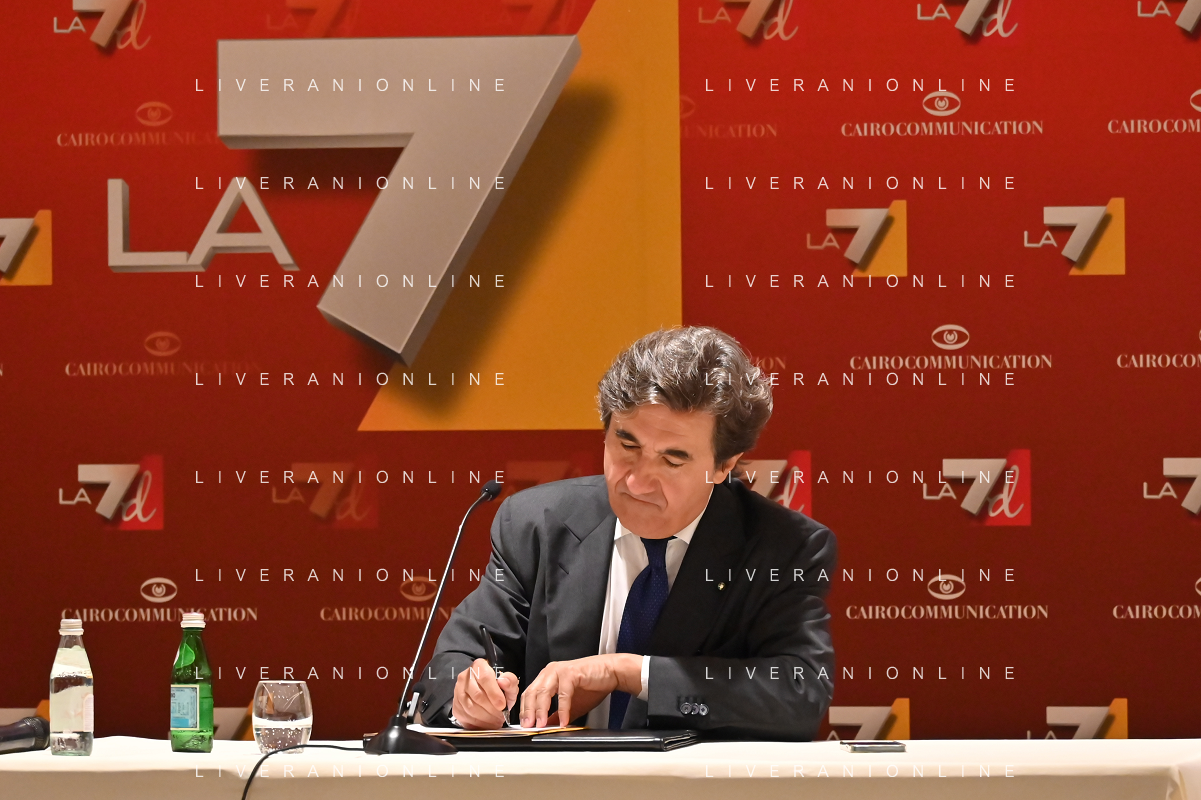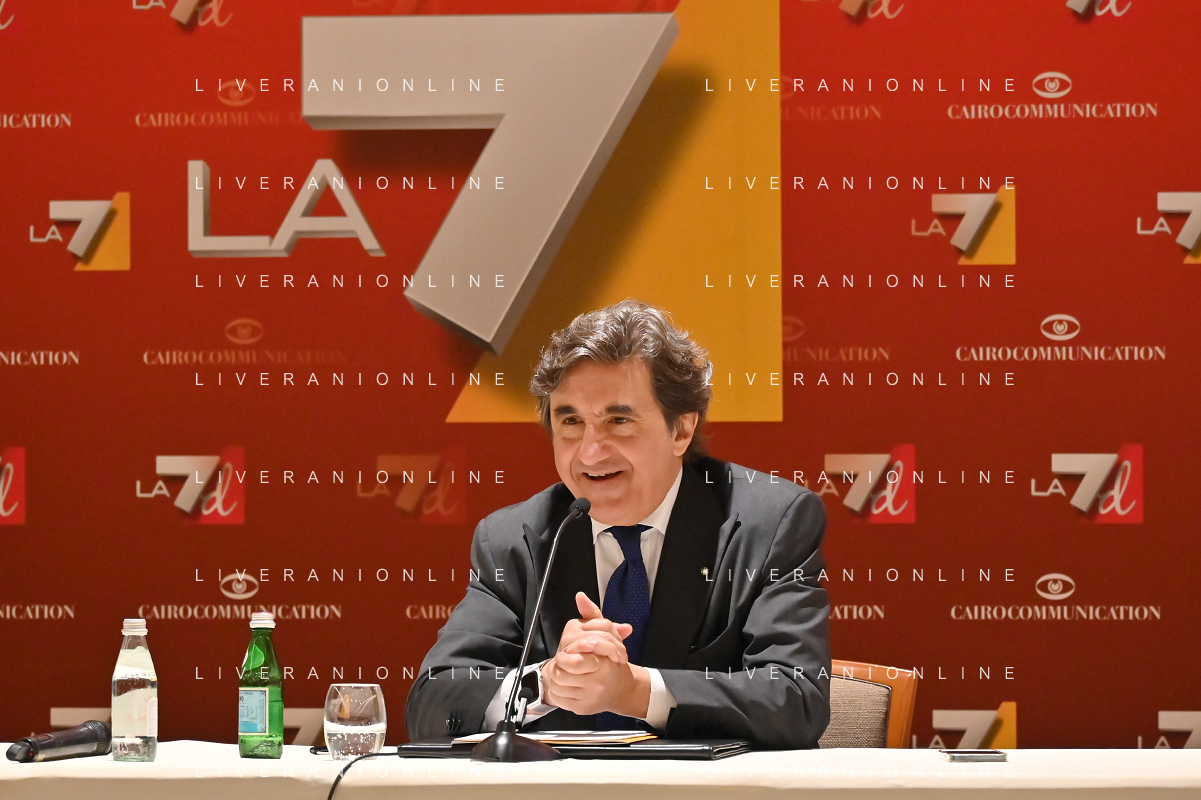 TVRG Palinsesti La7 nella foto Urbano Cairo Milano 11-07-2023 Photocall in occasione della presentazione dei palinsesti de La7 foto Roberto Garavaglia/ag. Aldo Liverani sas/AGENZIA ALDO LIVERANI SAS