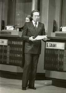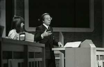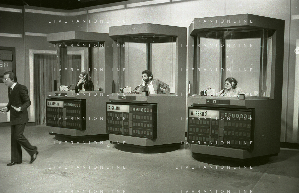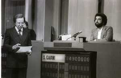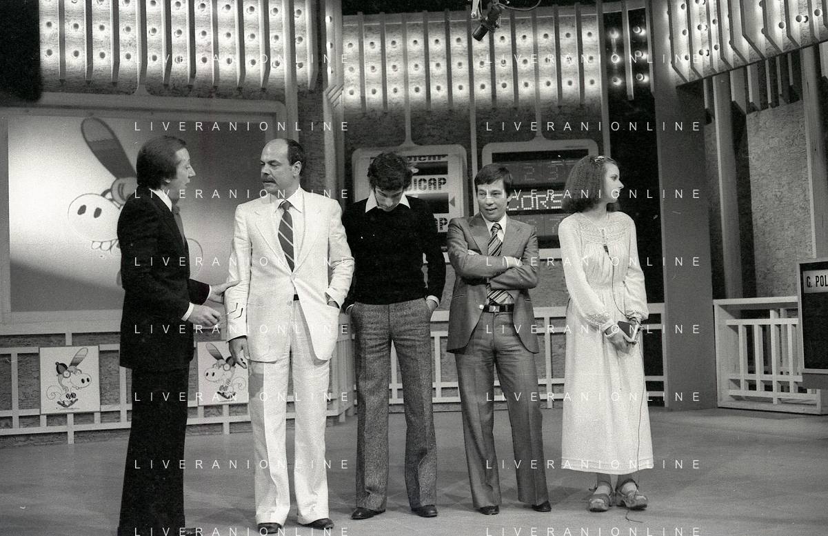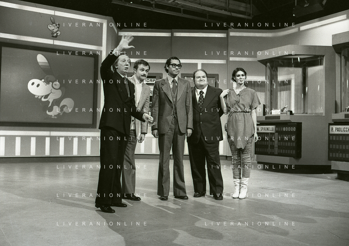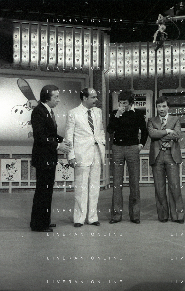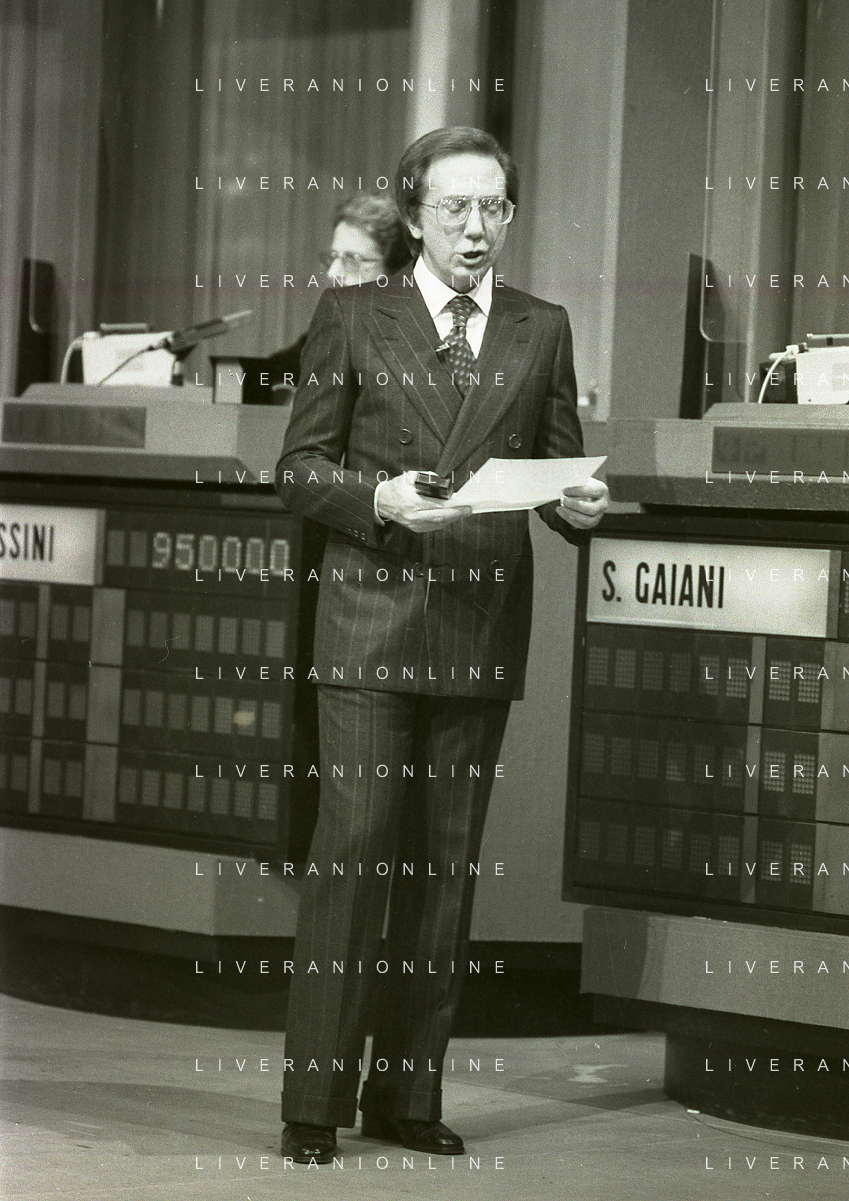 NEG-RETROSPETTIVA MIKE BONGIORNO PRESENTATORE TELEVISIVO NELLA FOTO MIKE BONGIORNO NELLA TRASMISSIONE TELEVISIVA SCOMMETTIAMO NELL'ANNO 1977-1978 AG ALDO LIVERANI SAS