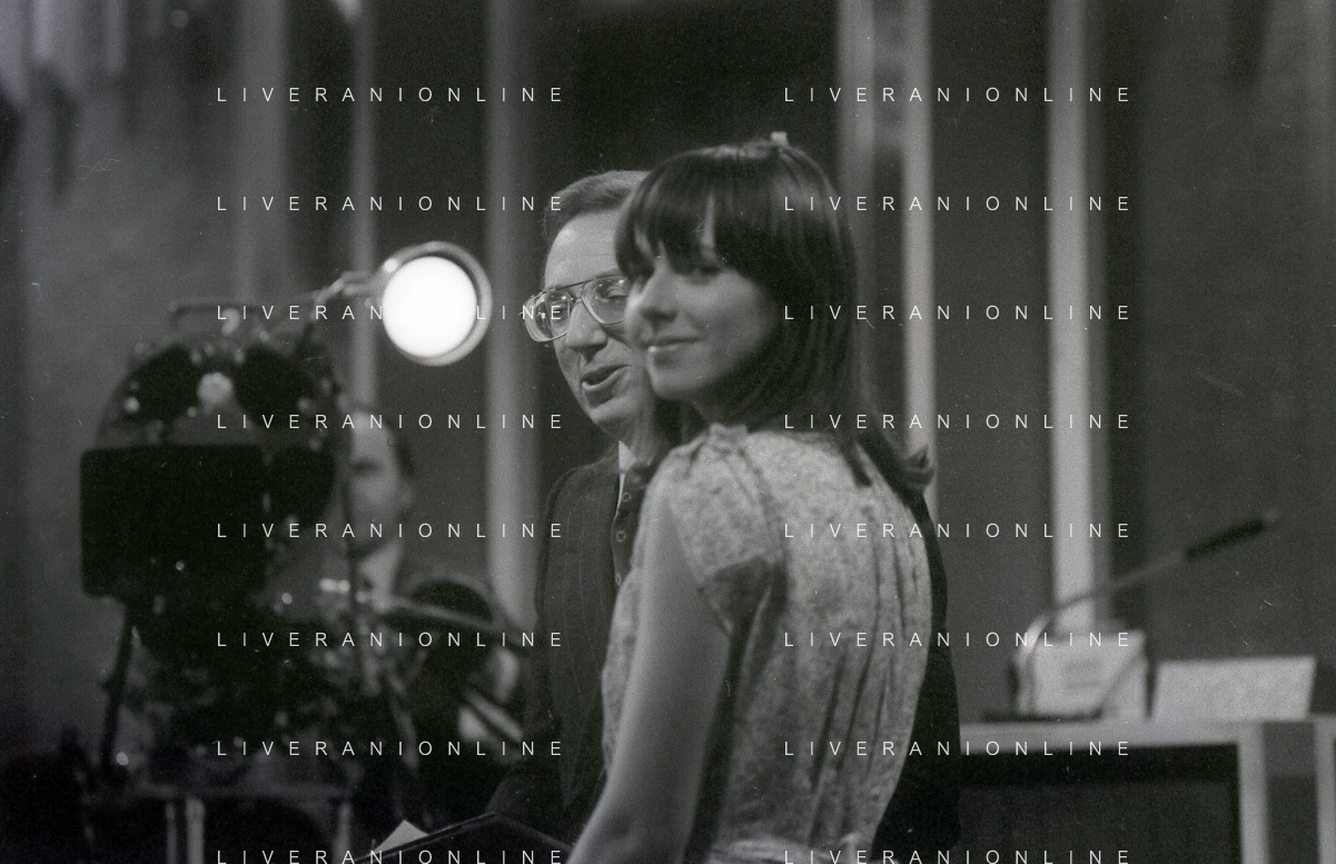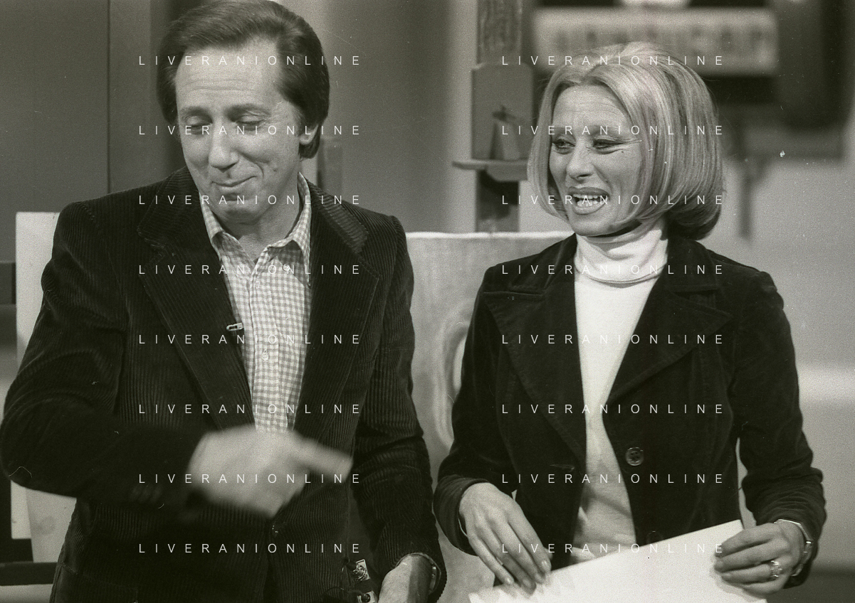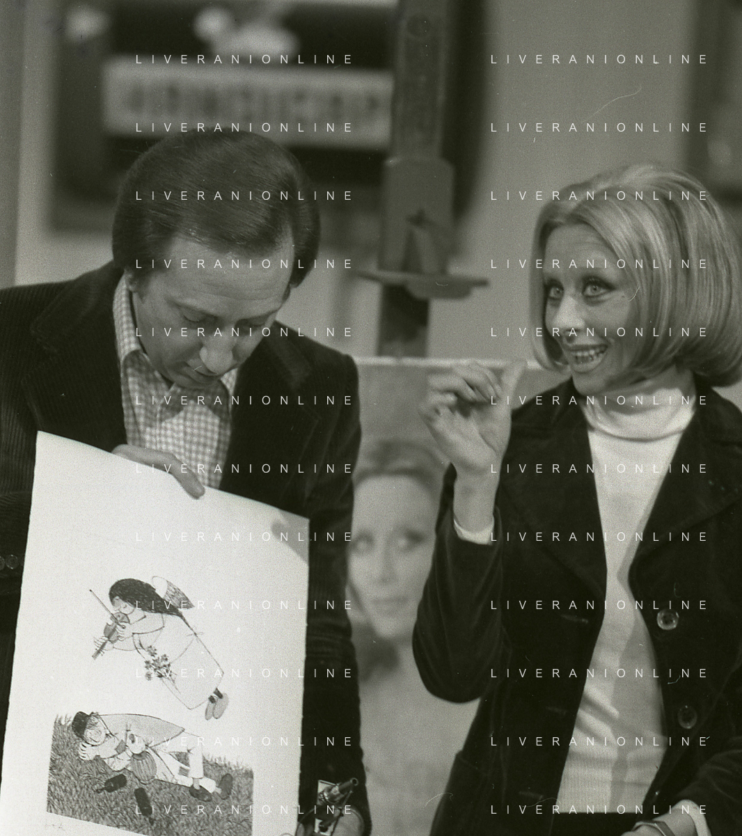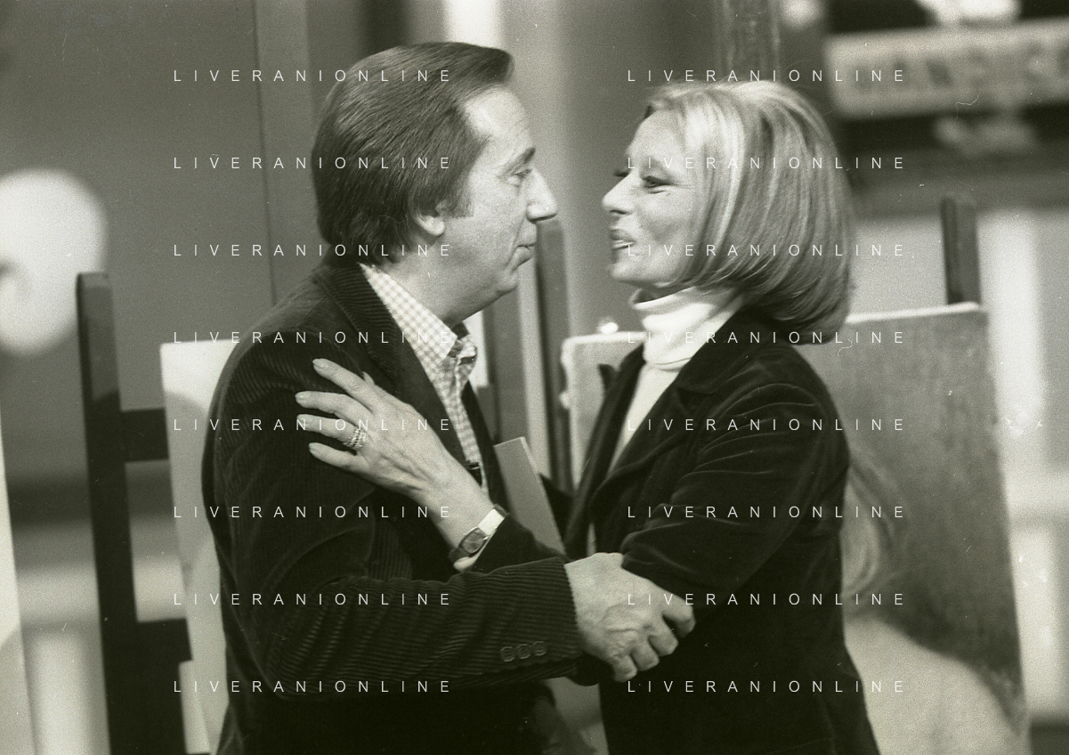 NEG-RETROSPETTIVA MIKE BONGIORNO PRESENTATORE TELEVISIVO NELLA FOTO MIKE BONGIORNO CON SANDRA MONDAINI NELLA TRASMISSIONE TELEVISIVA SCOMMETTIAMO NELL'ANNO 1977-1978 AG ALDO LIVERANI SAS