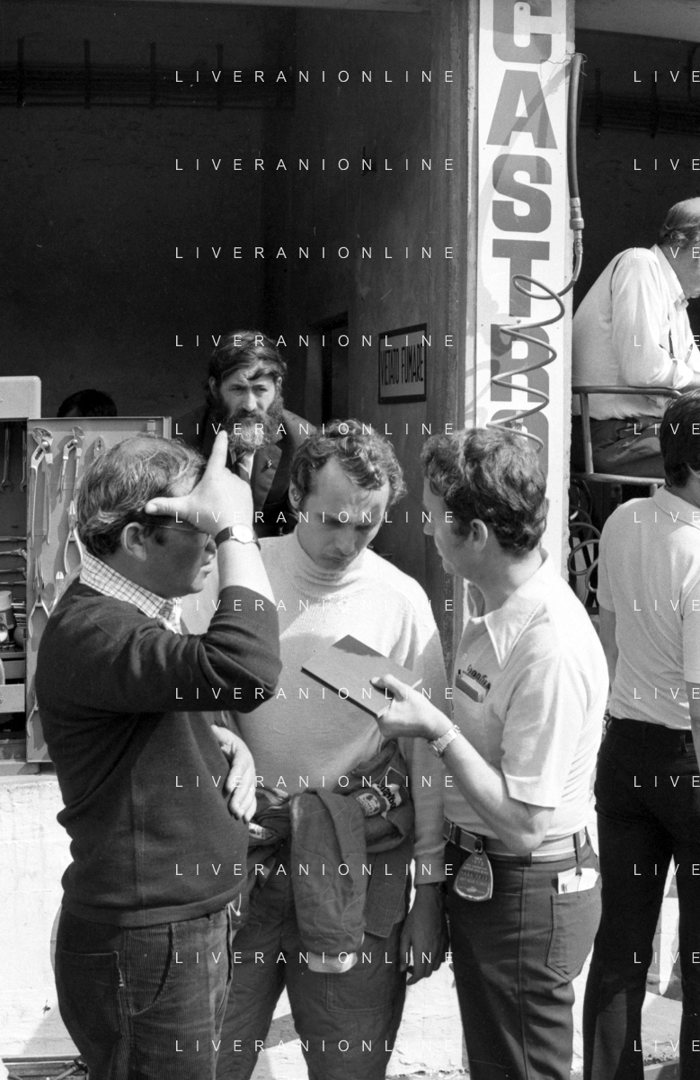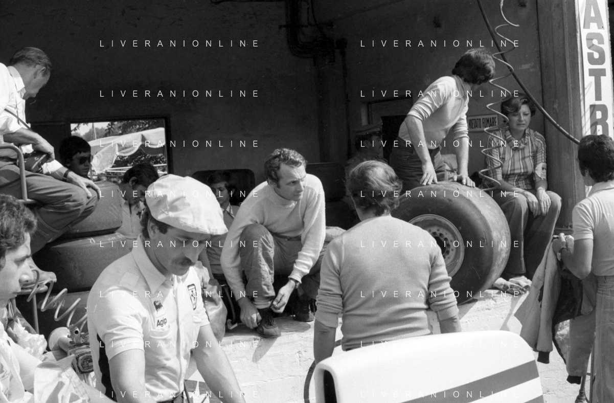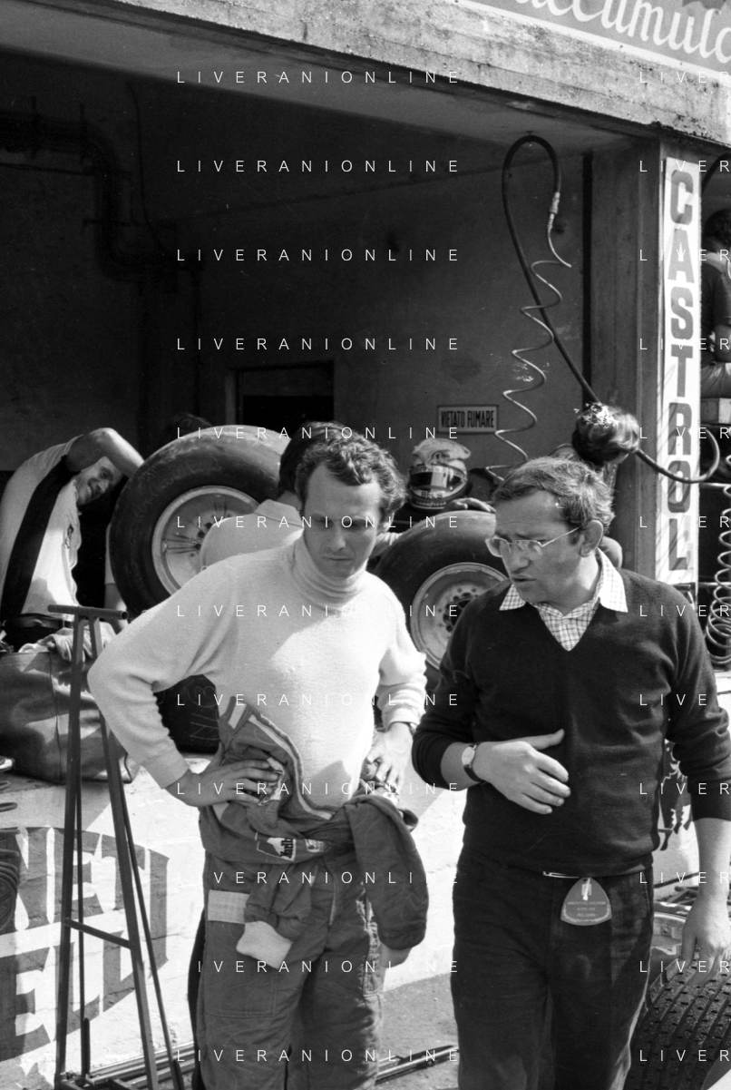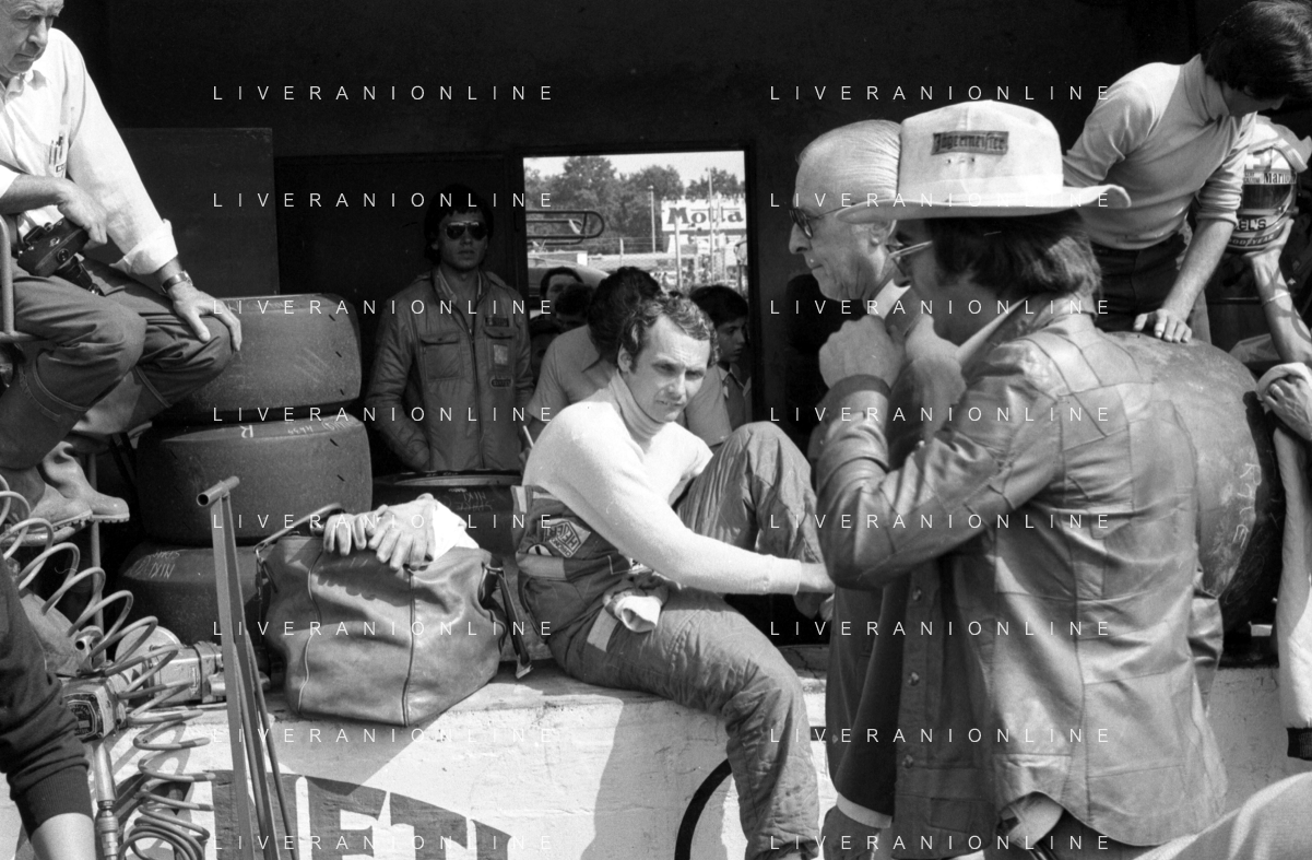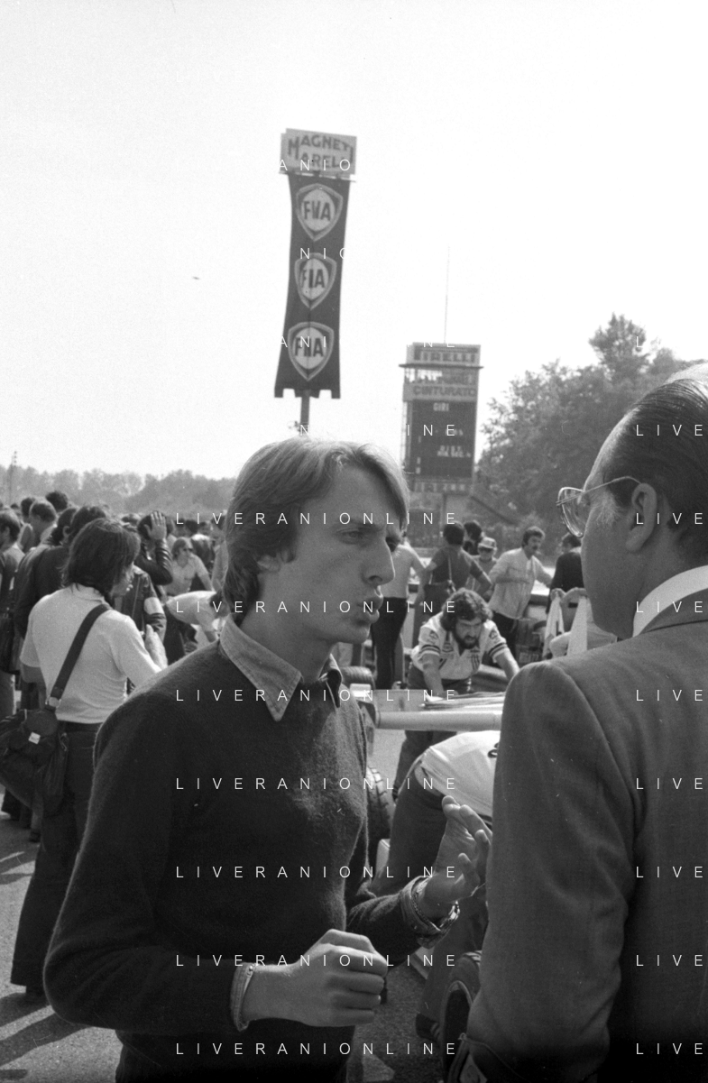 Neg- GRAN PREMIO D'ITALIA 1975 CAMPIONATO MONDIALE DI FORMULA 1 MONZA - RETROSPETTIVA NELLA FOTO NIKI LAUDA (FERRARI) E LUCA CORDERO DI MONTEZEMOLO AI BOX AG ALDO LIVERANI SAS
