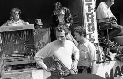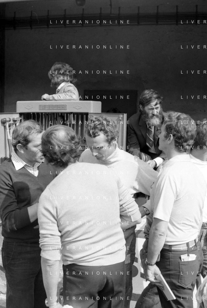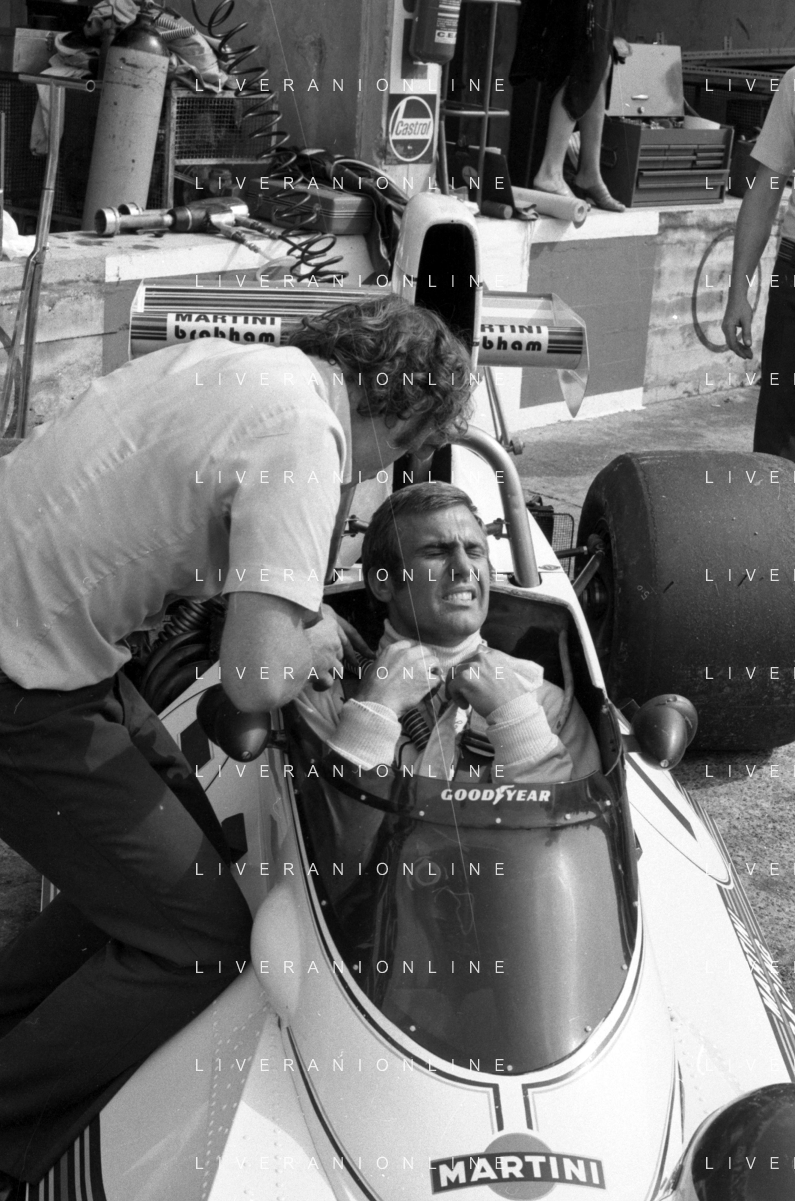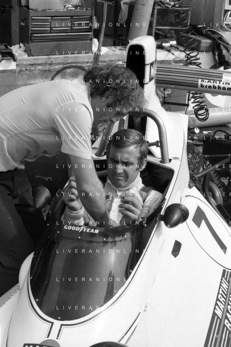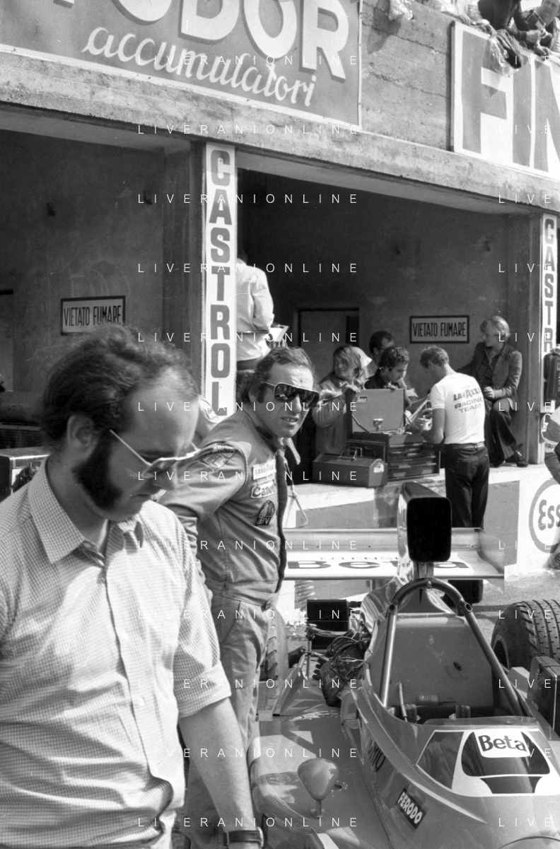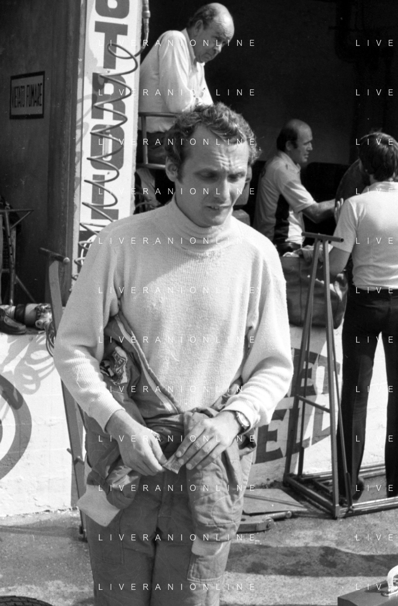 Neg- GRAN PREMIO D'ITALIA 1975 CAMPIONATO MONDIALE DI FORMULA 1 MONZA - RETROSPETTIVA NELLA FOTO NIKI LAUDA (FERRARI) E LUCA CORDERO DI MONTEZEMOLO AI BOX AG ALDO LIVERANI SAS