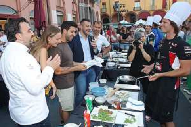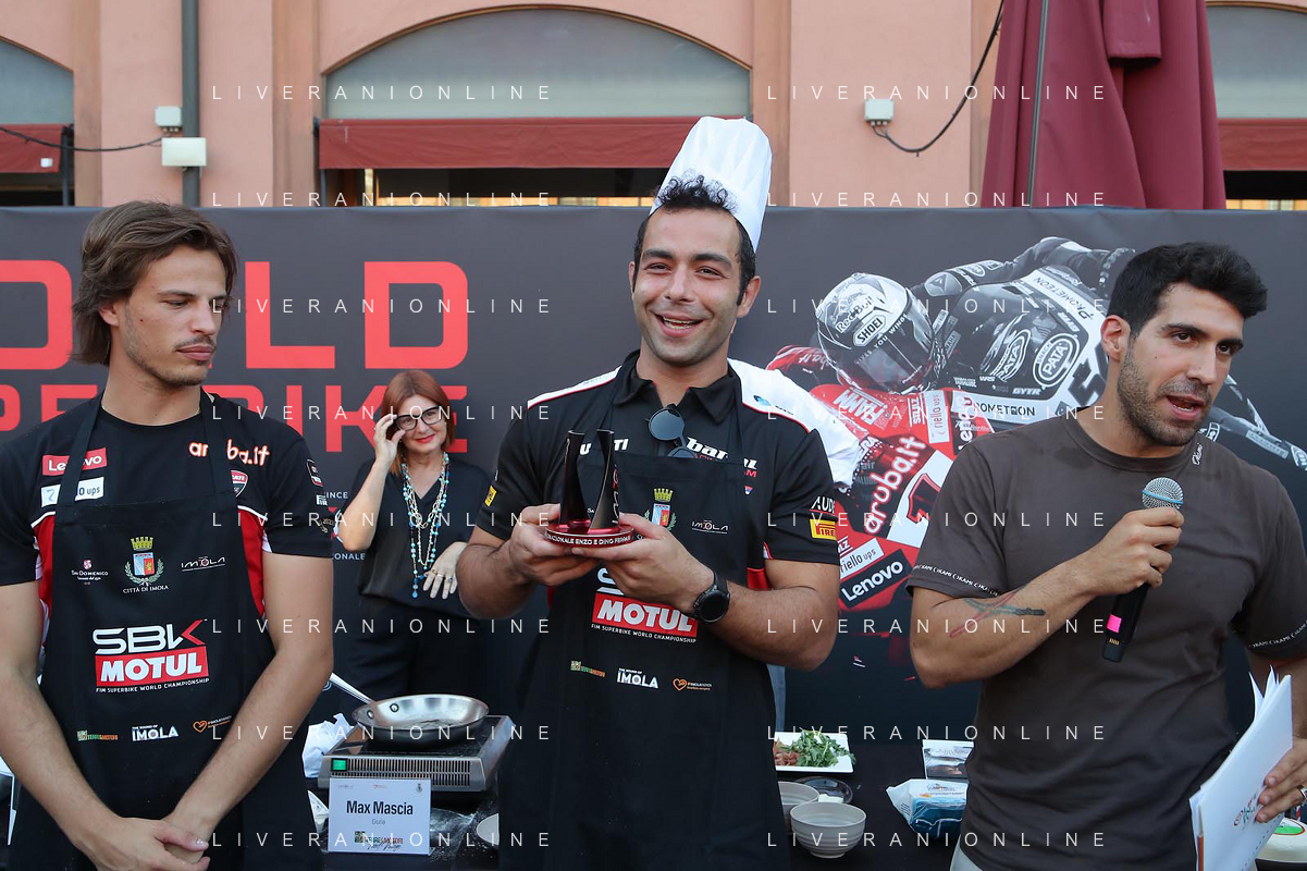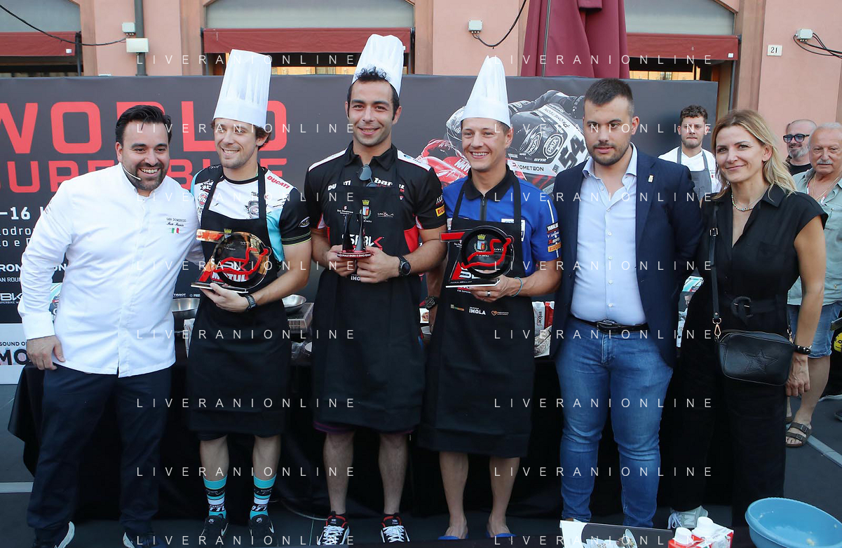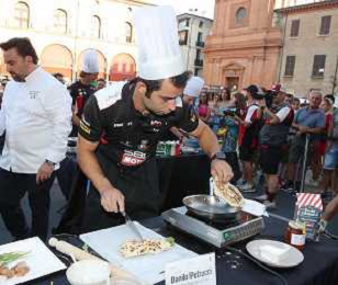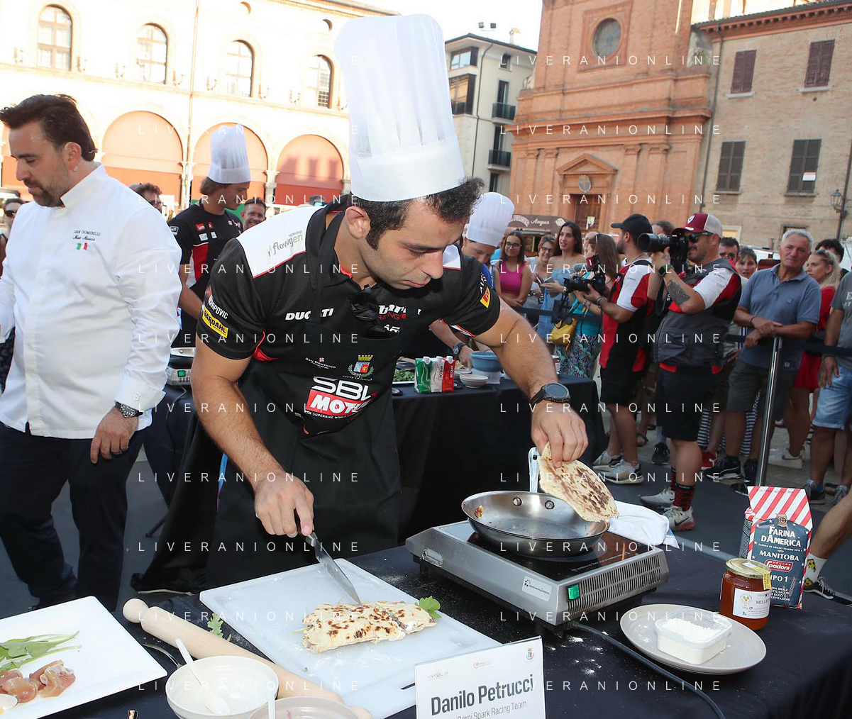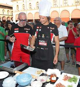IMOLA 13 07 2023 PIAZZA MATTEOTTI show cooking con in gara i piloti Superbike , che si sfideranno nel preparare la Piadina Romagnola - 8 file