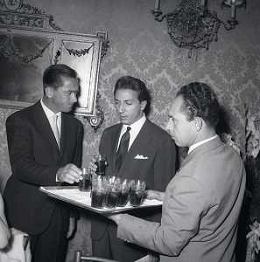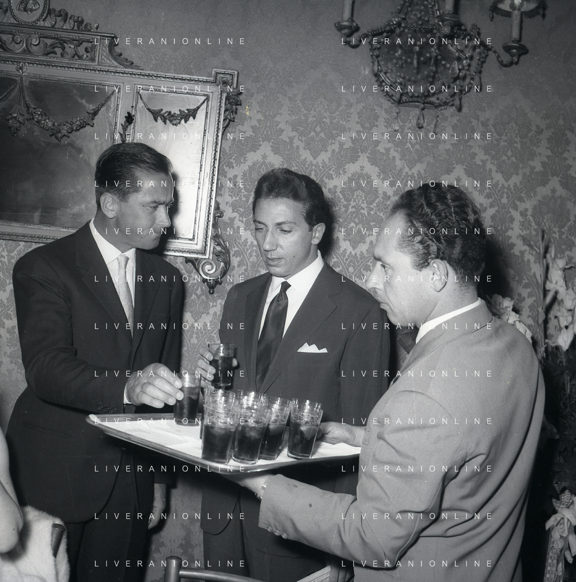 NEG-RETROSPETTIVA MIKE BONGIORNO PRESENTATORE TELEVISIVO NELLA FOTO MIKE BONGIORNO A ROMA NELL'ANNO 1952 CON MILO SKOFIC AL PREMIO LASCIA O RADDOPPIA AG ALDO LIVERANI SAS