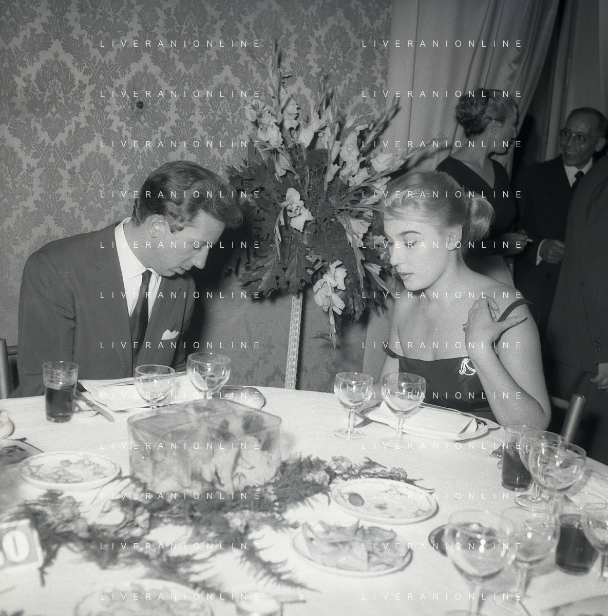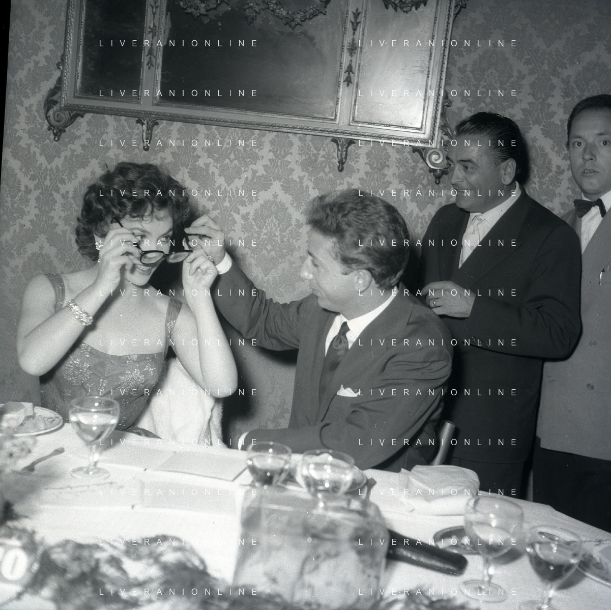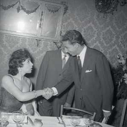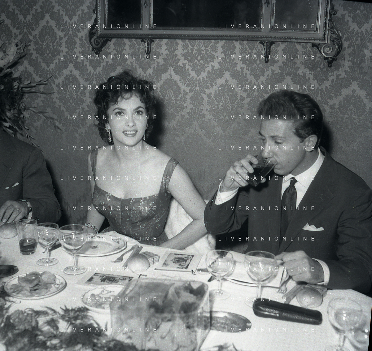 NEG-RETROSPETTIVA MIKE BONGIORNO PRESENTATORE TELEVISIVO NELLA FOTO MIKE BONGIORNO A ROMA NELL'ANNO 1952 CON GINA LOLLOBRIGIDA AL PREMIO LASCIA O RADDOPPIA AG ALDO LIVERANI SAS