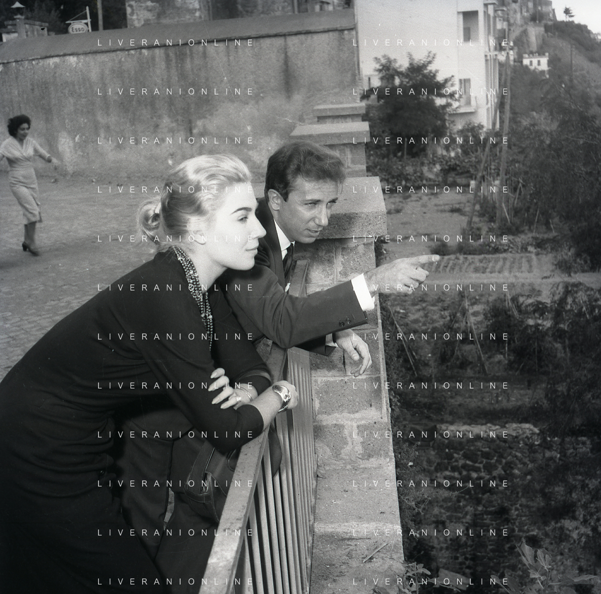 NEG-RETROSPETTIVA MIKE BONGIORNO PRESENTATORE TELEVISIVO NELLA FOTO MIKE BONGIORNO A ROMA NELL'ANNO 1952 CON EDI CAMPAGNOLI PREMIO LASCIA O RADDOPPIA AG ALDO LIVERANI SAS