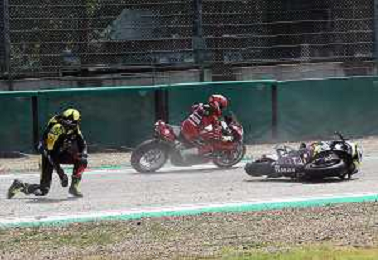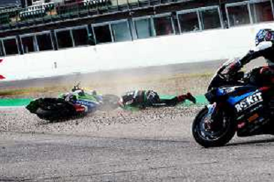 IMOLA 14 07 2023 AUTODROMO ENZO E DINO FERRARI SUPERBIKE PROVE LIBEREE NELLA FOTO CADUTA DI GABRIELE RUIU PASSA ALVARO BAUTISTA ©SANNA/AGENZIA ALDO LIVERANI SAS