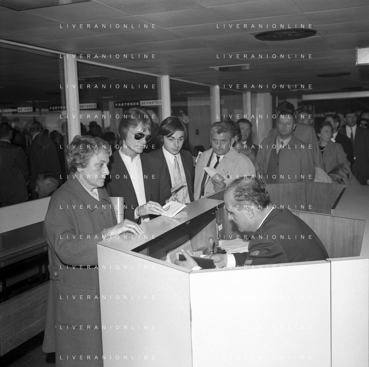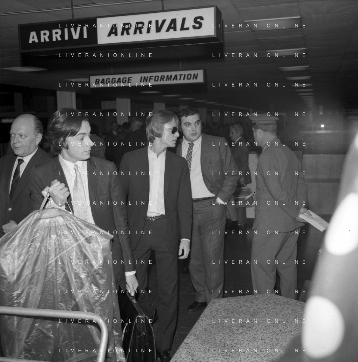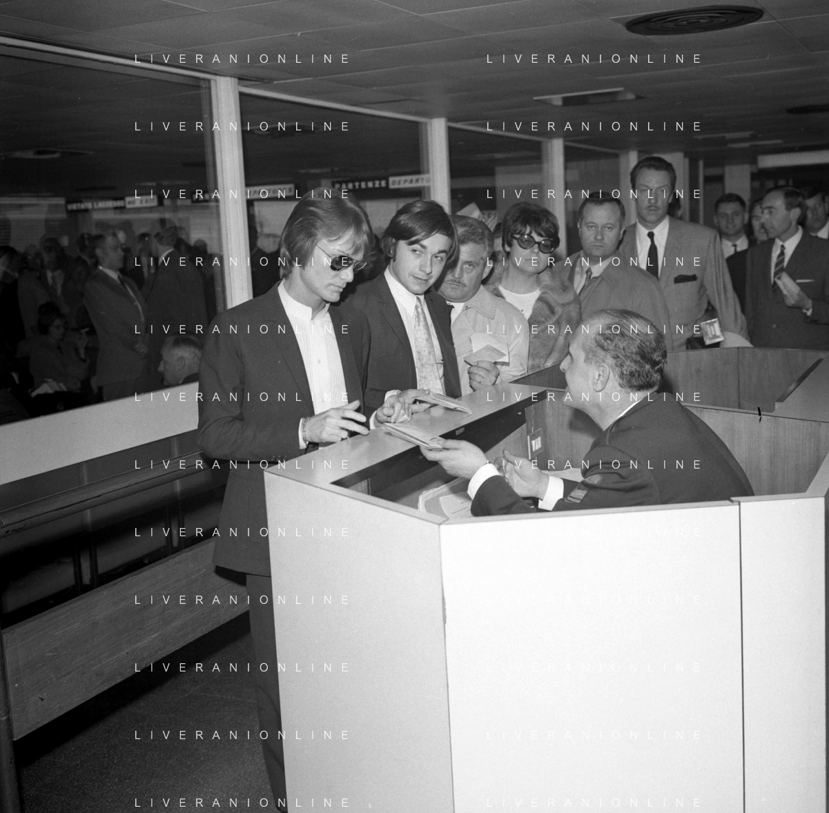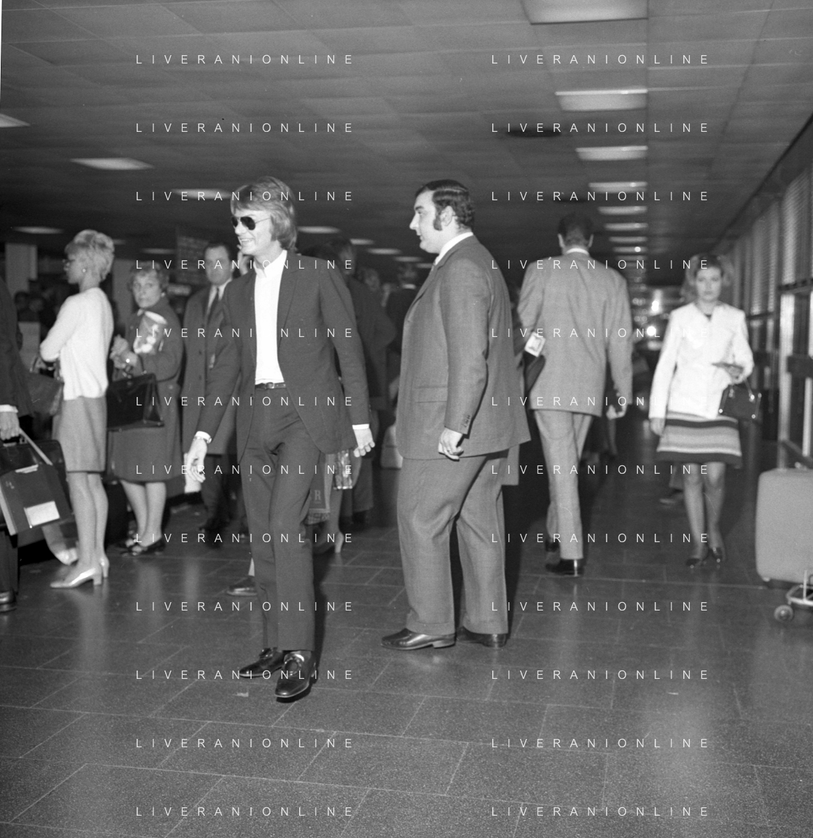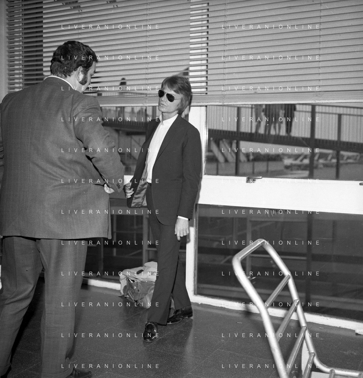 Neg- RETROSPETTIVA CLAUDE FRANCOIS (CLOCLO) CANTANTE FRANCESE NELLA FOTO AL SUO ARRIVO ALL'AEROPORTO DI LINATE MILANO NELL'ANNO 1968 AG ALDO LIVERANI SAS