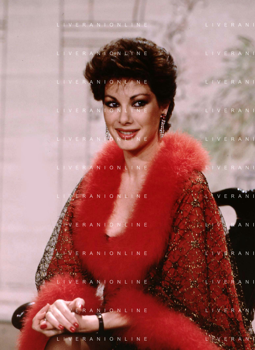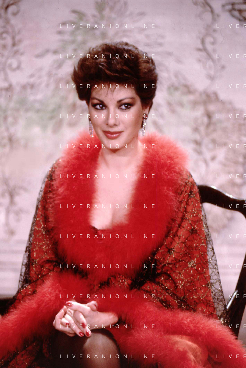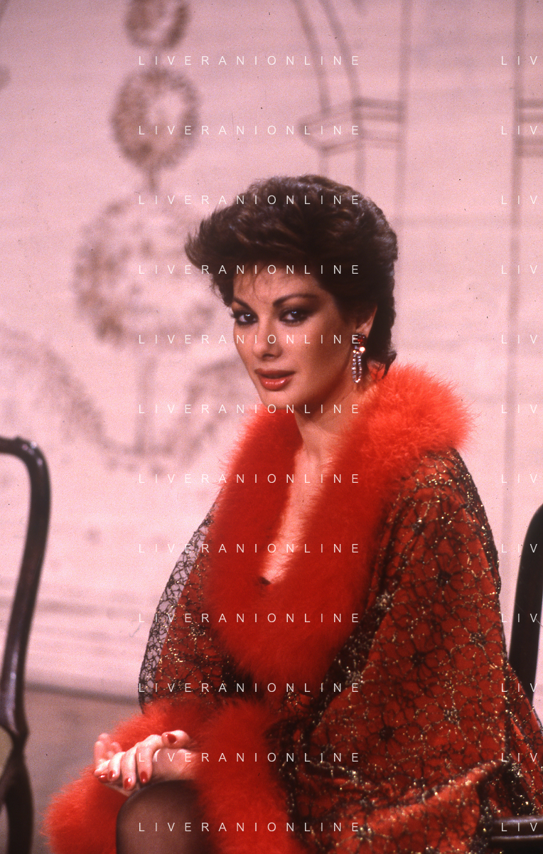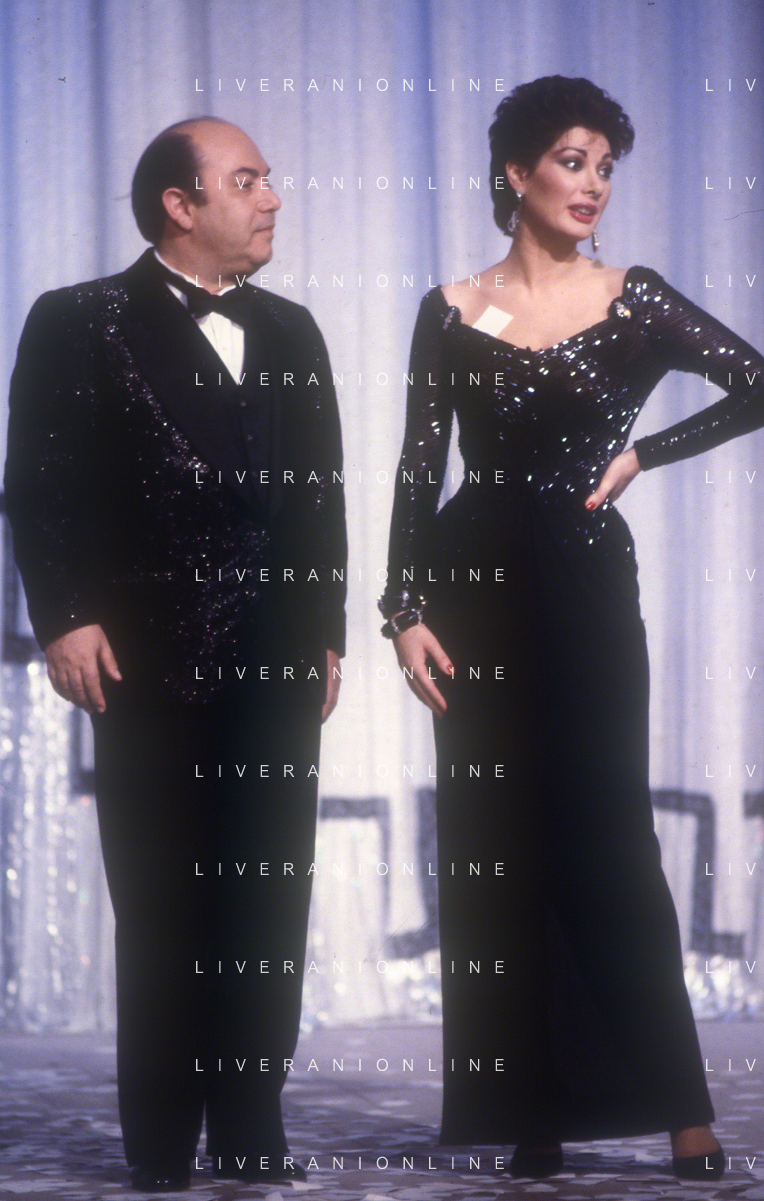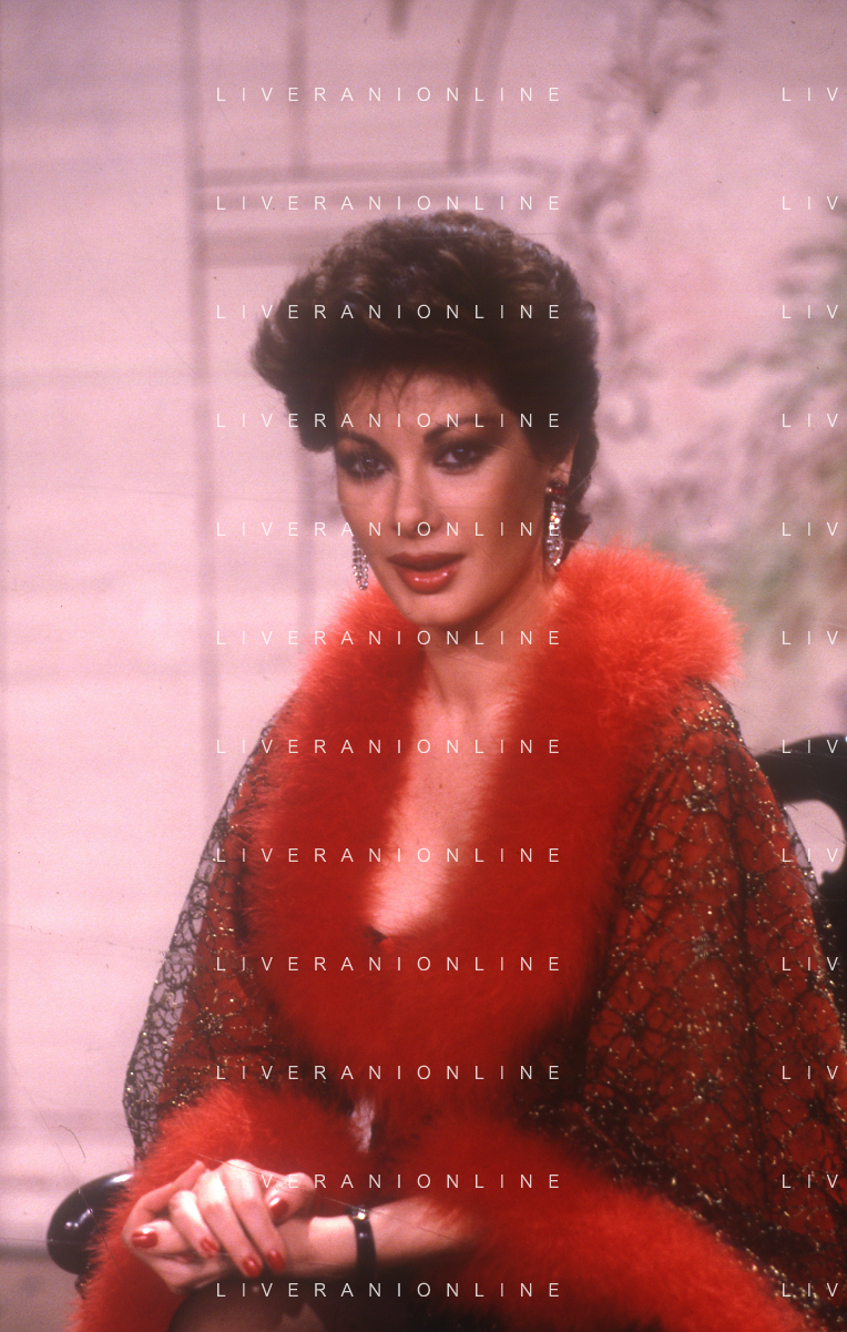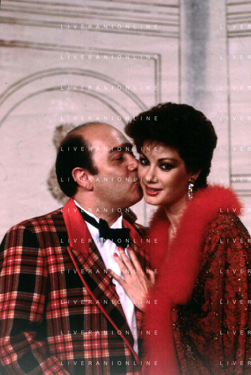 DIAP-RETROSPETTIVA EDWIGE FENECH ATTRICE NELLA FOTO EDWIGE FENECH NELL'ANNO 1985 NELLA TRASMISSIONE TELEVISIVA RISATISSIMA CON LINO BANFI AG ALDO LIVERANI SAS