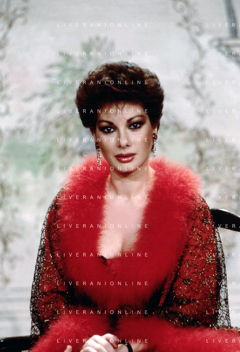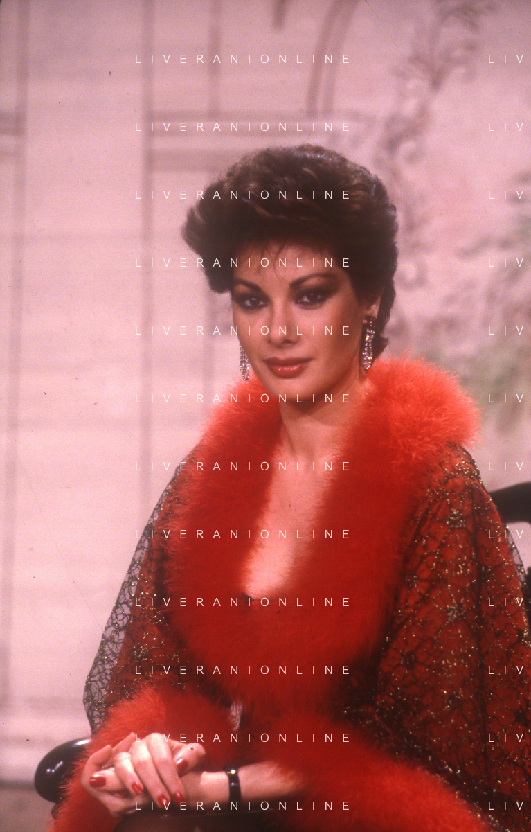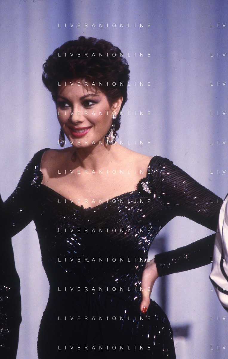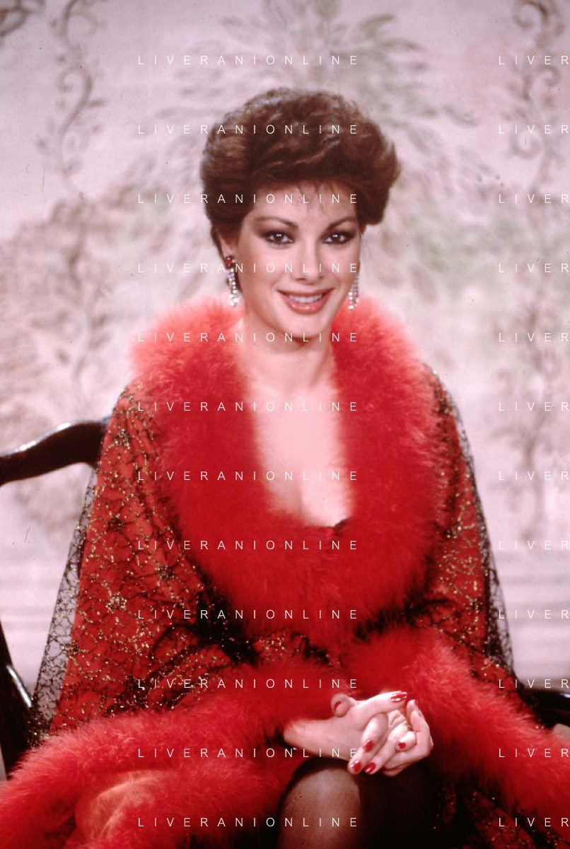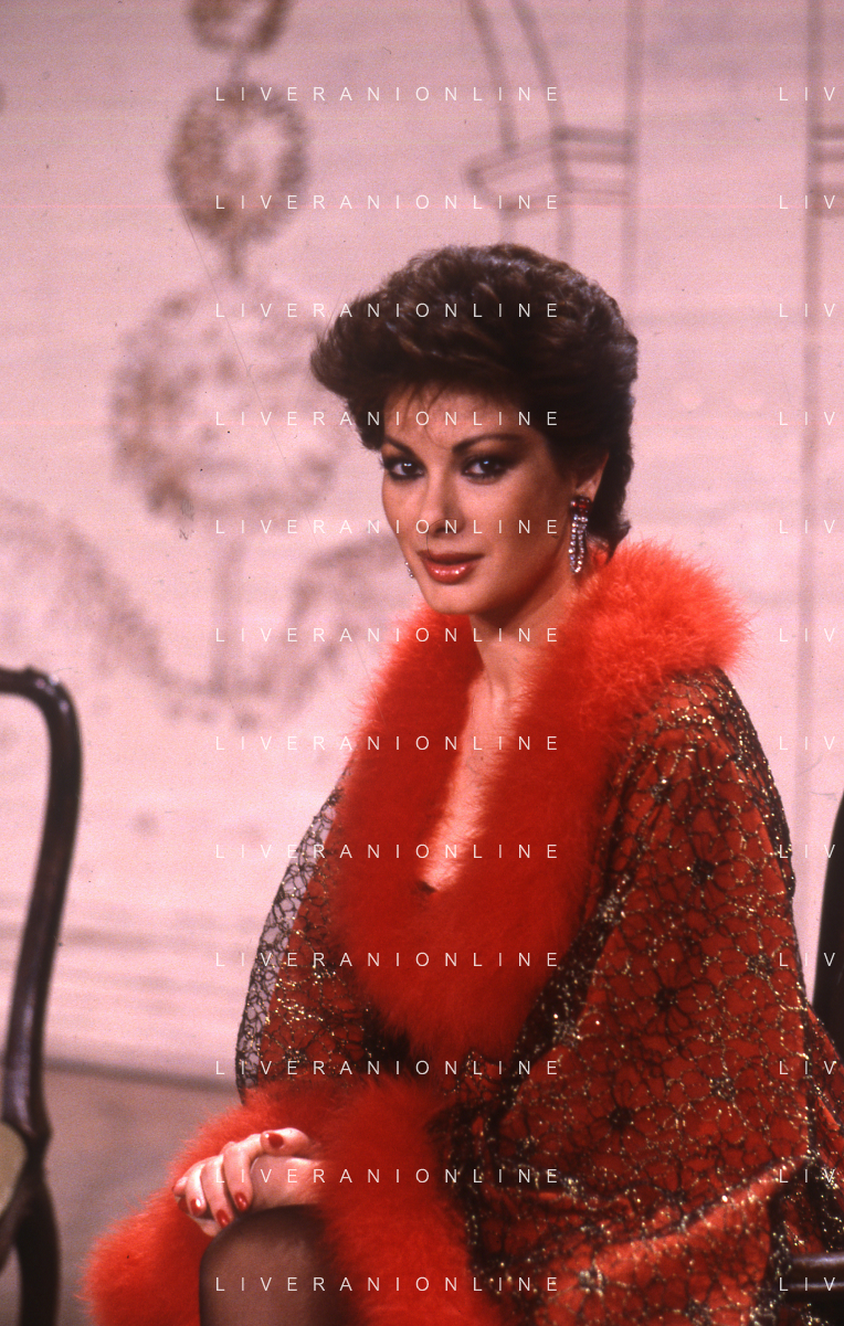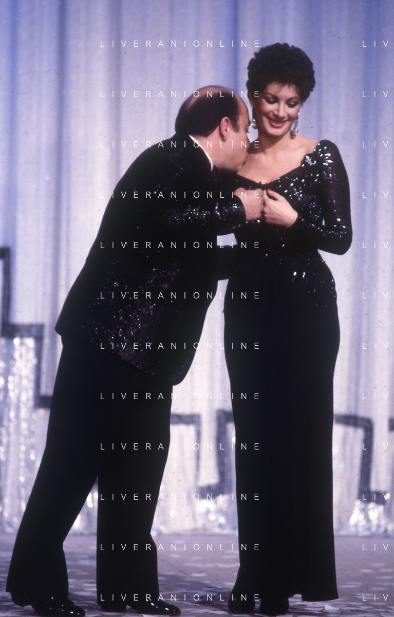 DIAP-RETROSPETTIVA EDWIGE FENECH ATTRICE NELLA FOTO EDWIGE FENECH NELL'ANNO 1985 NELLA TRASMISSIONE TELEVISIVA RISATISSIMA CON LINO BANFI AG ALDO LIVERANI SAS