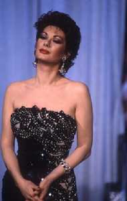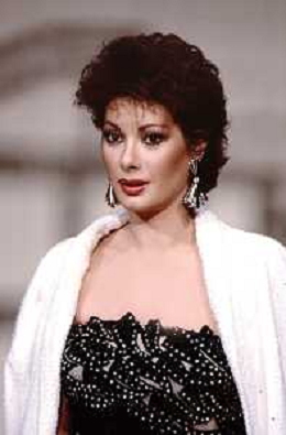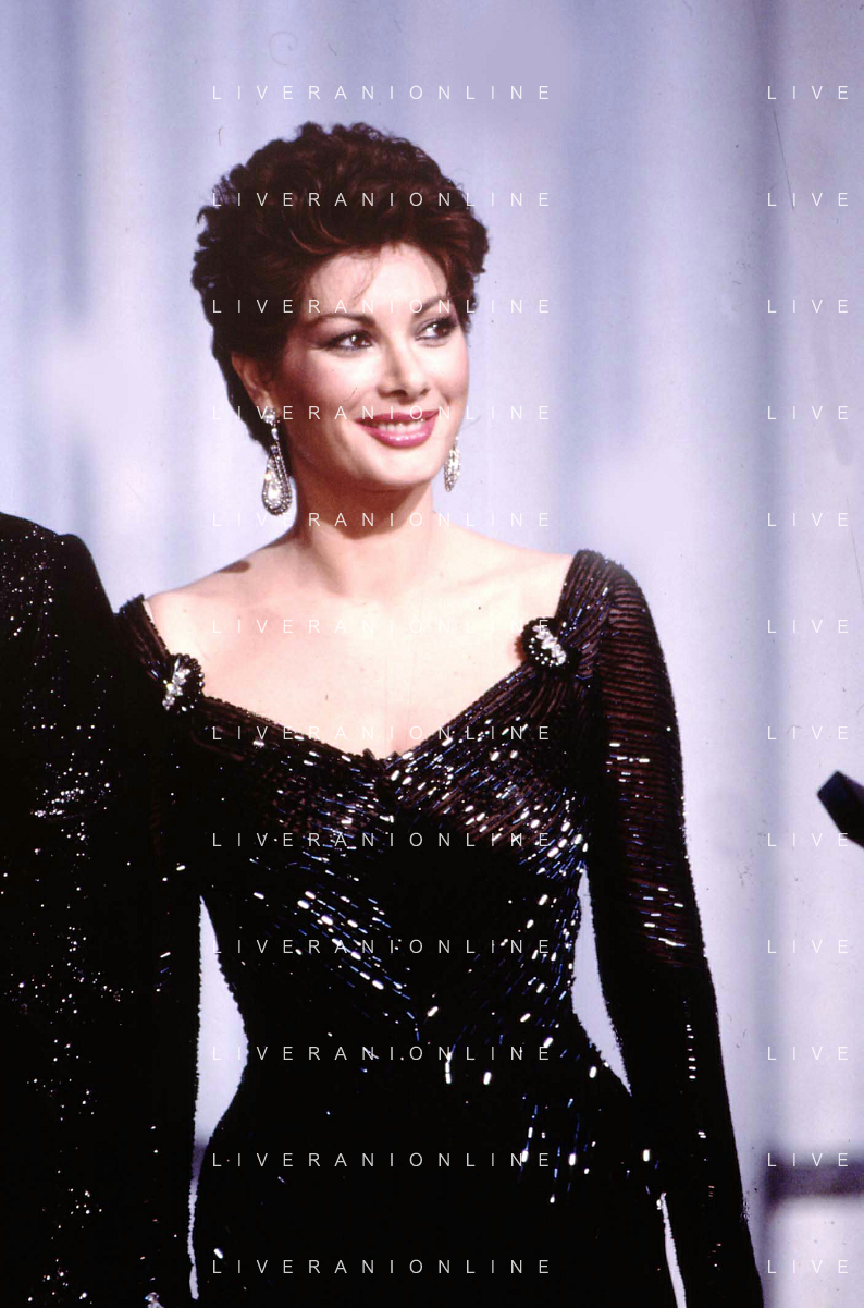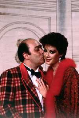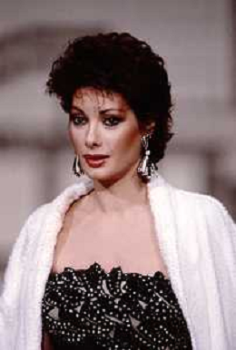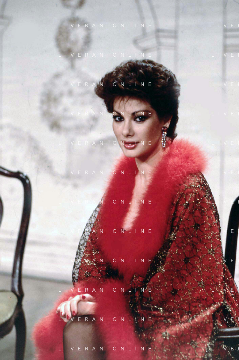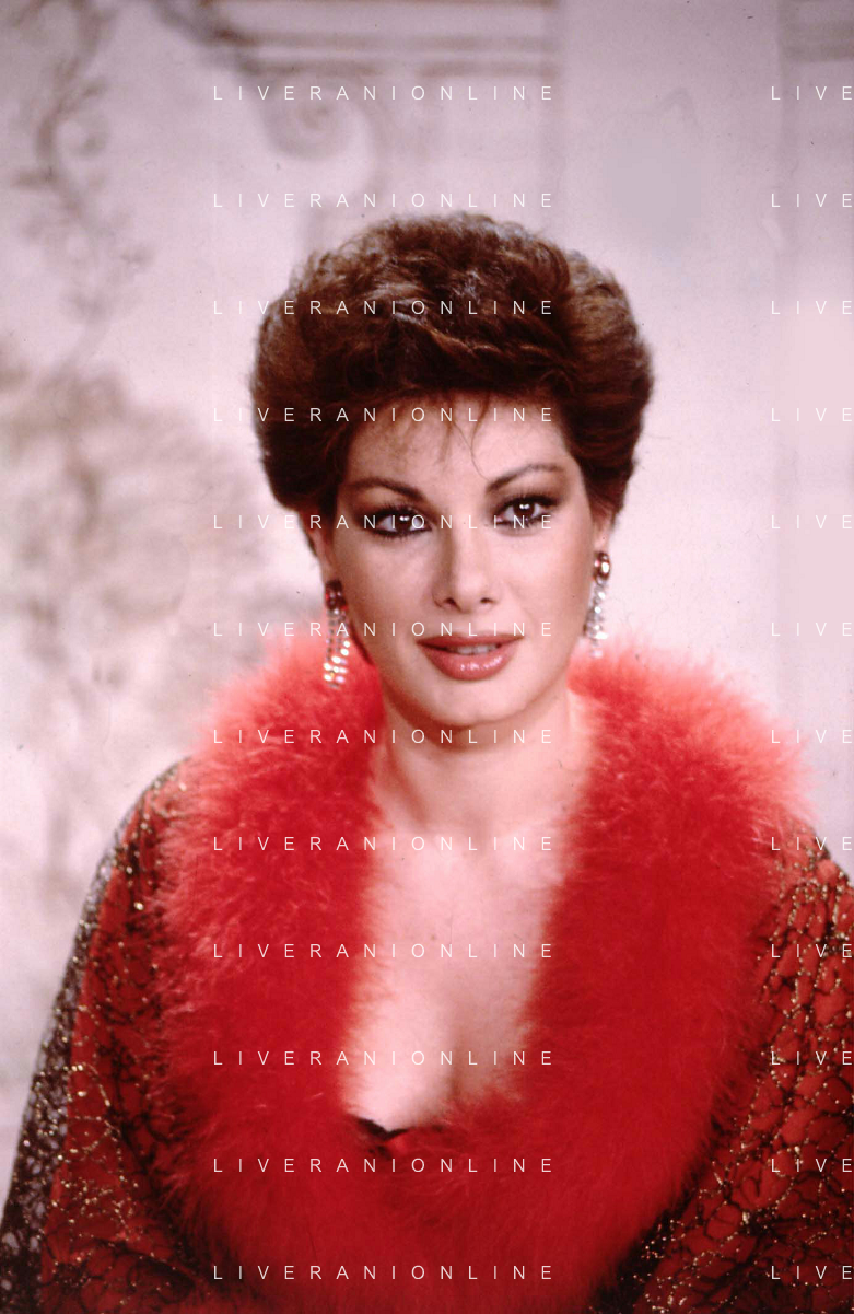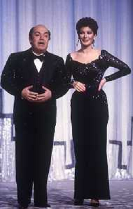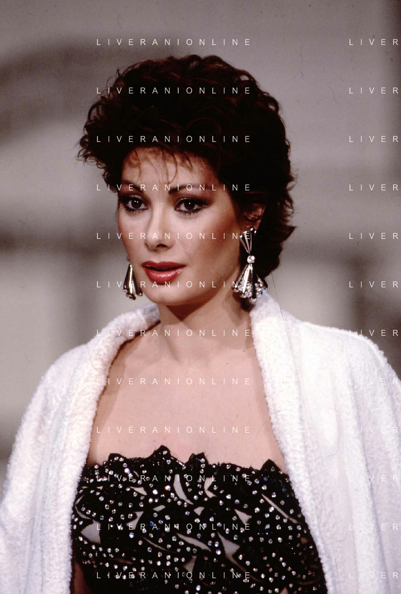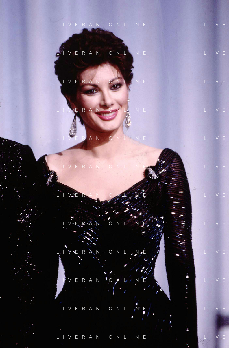 DIAP-RETROSPETTIVA EDWIGE FENECH ATTRICE NELLA FOTO EDWIGE FENECH NELL'ANNO 1985 NELLA TRASMISSIONE TELEVISIVA RISATISSIMA CON LINO BANFI AG ALDO LIVERANI SAS