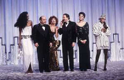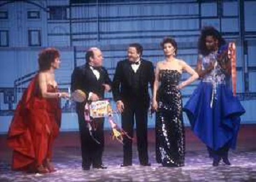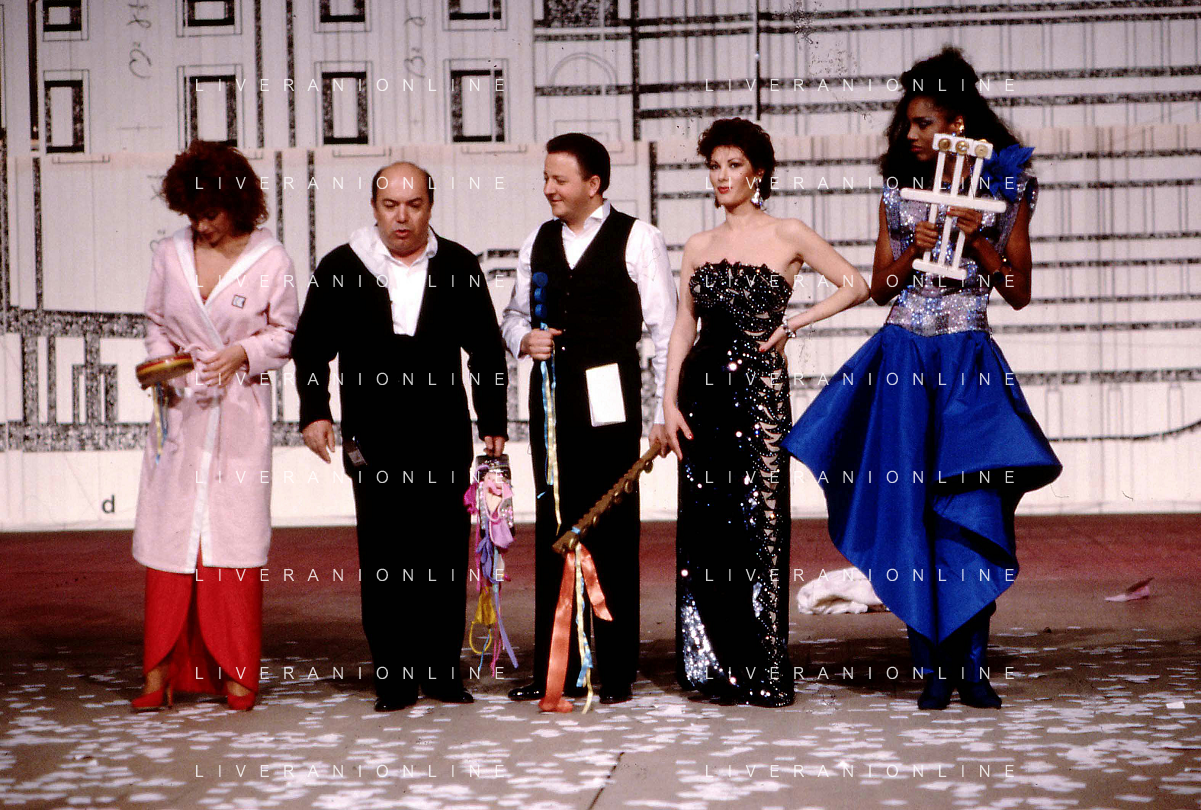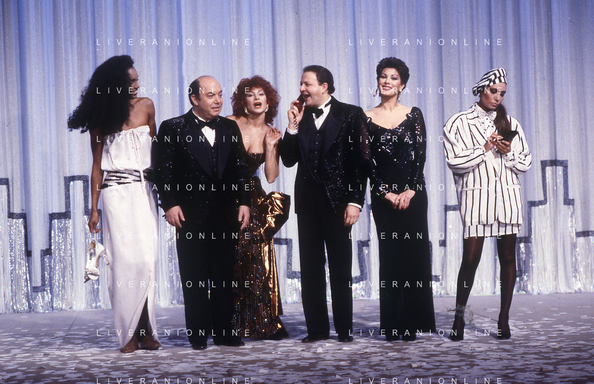 DIAP-RETROSPETTIVA EDWIGE FENECH ATTRICE NELLA FOTO EDWIGE FENECH NELL'ANNO 1985 NELLA TRASMISSIONE TELEVISIVA RISATISSIMA CON LINO BANFI-CARMEN RUSSO-MASSIMO BOLDI E LOREDANA BERTE' AG ALDO LIVERANI SAS