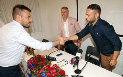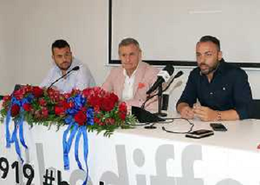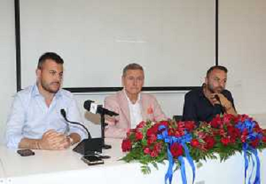 IMOLA 19 07 2023 IMOLESE CALCIO SERIE D CONFERENZA STAMPA PRESENTAZIONE DELLA NUOVA SOCIETA' NELLA FOTO PRESIDENTE DELL'IMOLESE CALCIO DOMENICO ALTOMONTE SINDACO DI IMOLA MARCO PANIERI E DIRETTORE GENERALE DELL'IMOLESE CALCIO ULISSE SAVINI ©SANNA/Agenzia Aldo Liverani Sas