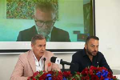 IMOLA 19 07 2023 IMOLESE CALCIO SERIE D CONFERENZA STAMPA PRESENTAZIONE DELLA NUOVA SOCIETA' NELLA FOTO PRESIDENTE DELL'IMOLESE CALCIO DOMENICO ALTOMONTE E DIRETTORE GENERALE DELL'IMOLESE CALCIO ULISSE SAVINI ©SANNA/Agenzia Aldo Liverani Sas