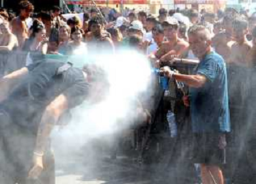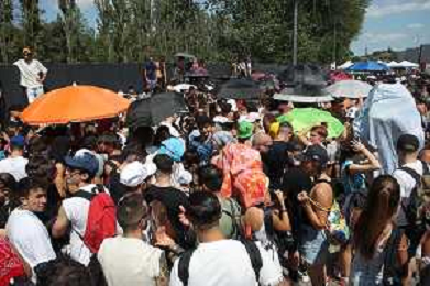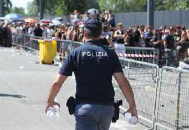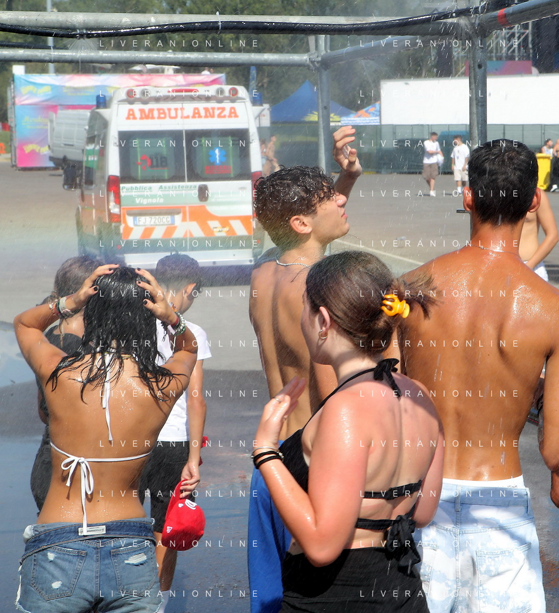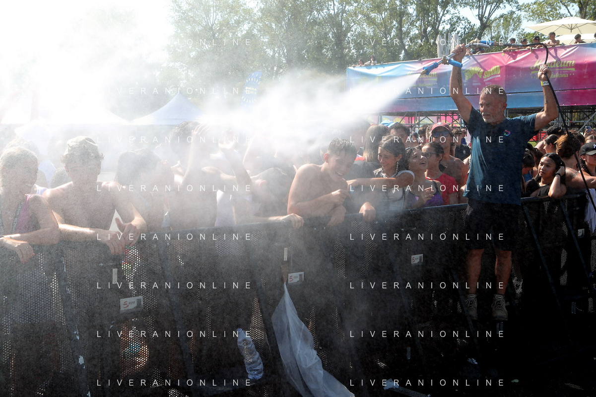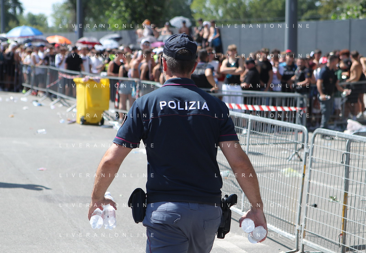 IMOLA 29 07 2023 AUTODROMO ENZO E DINO FERRARI "IMOLA SUMMER FESTIVAL" CONCERTO DI BENIFICENZA PER GLI ALLUVIONATI IN ROMAGNA NELLA FOTO PUBBLICO POLIZIA CON L'ACQUA FOTO GIANNI SANNA-AG ALDO LIVERANI SAS