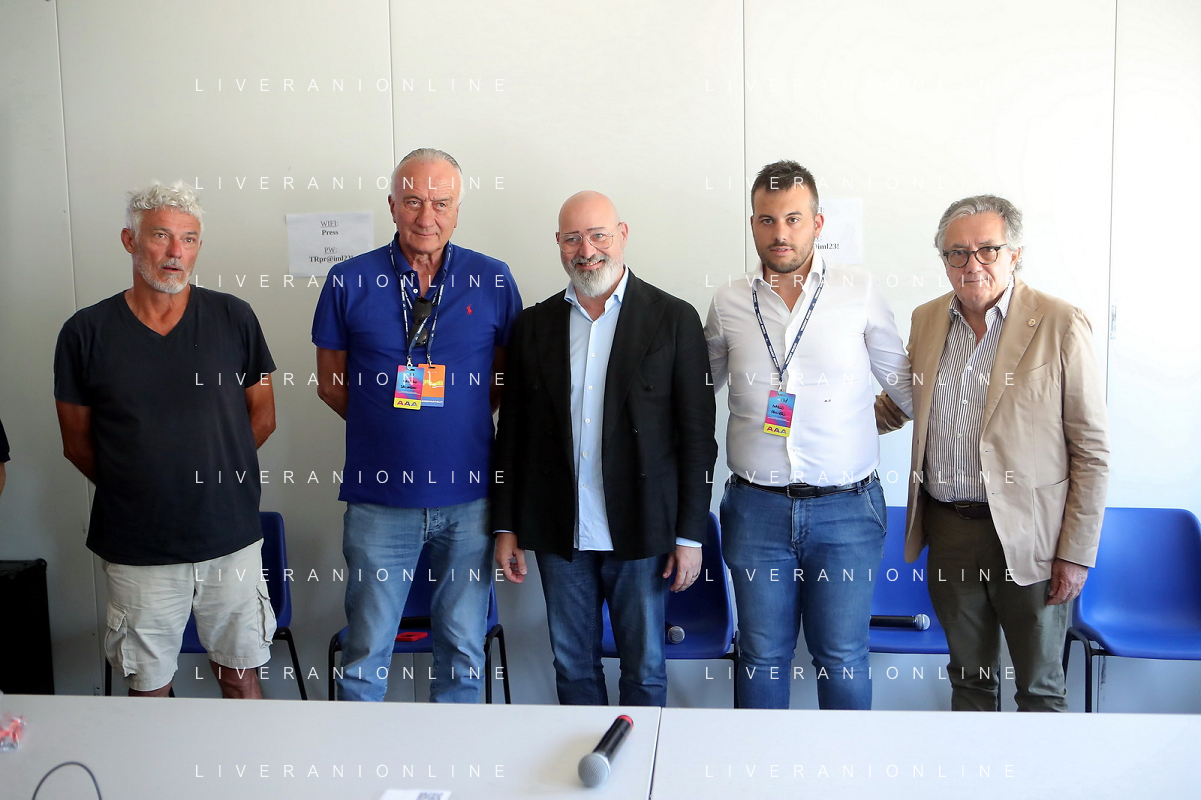 IMOLA 29 07 2023 AUTODROMO ENZO E DINO FERRARI "IMOLA SUMMER FESTIVAL" CONCERTO DI BENIFICENZA PER GLI ALLUVIONATI IN ROMAGNA NELLA FOTO ROLANDO RIVI STUDIO S, MAURIZIO SALVADORI,PRESIDENTE DELLA REGIONE EMILIA ROMAGNA STEFANO BONACCINI,SINDACO MARCO PANIERI E GIANCARLO MINARDI PRESIDENTE DELL'AUTODROMO FOTO GIANNI SANNA-AG ALDO LIVERANI SAS