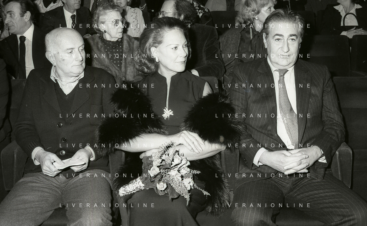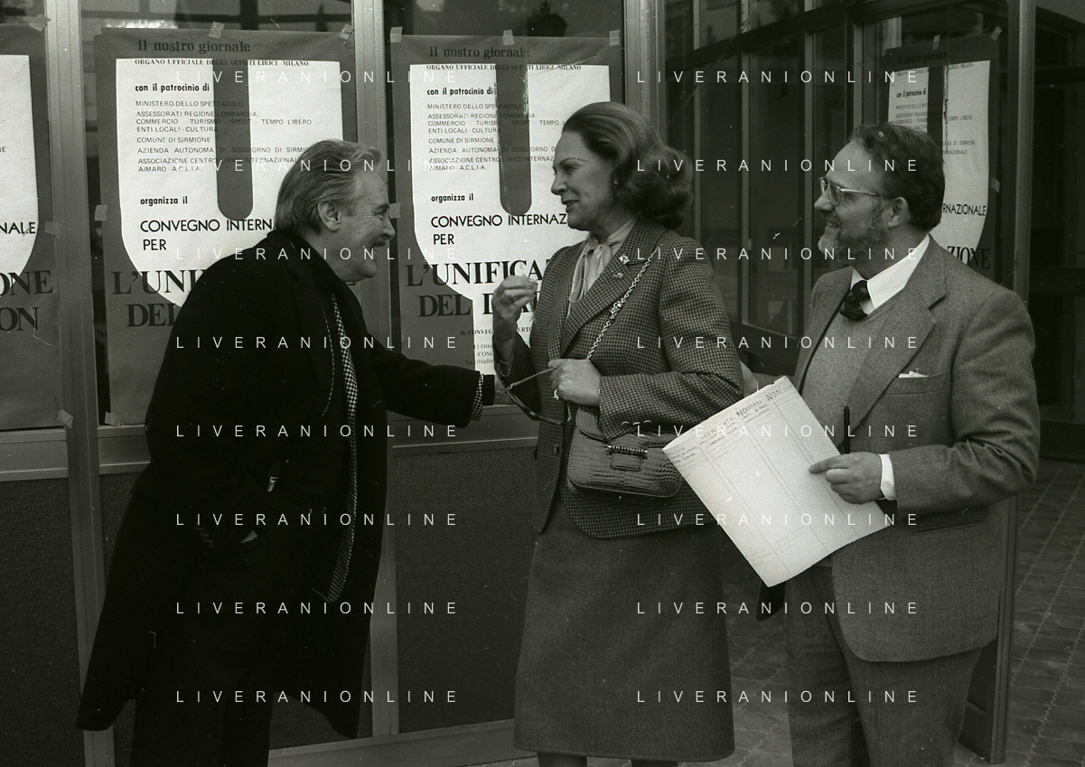 NEG-RETROSPETTIVA RENATA REBALDI CANTANTE LIRICA NELLA FOTO RENATA TEBALDI A SIRMIONE AL RADUNO LIRICO NELL'ANNO 1981 CON GIOVANNI TESTORI E L'ASSESSORE PARIDE ACCETTI AG ALDO LIVERANI SAS