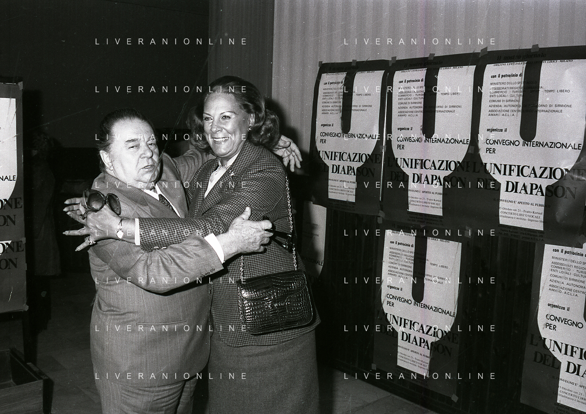 NEG-RETROSPETTIVA RENATA REBALDI CANTANTE LIRICA NELLA FOTO RENATA TEBALDI A SIRMIONE AL RADUNO LIRICO NELL'ANNO 1981 E GIOVANNI TESTORI AG ALDO LIVERANI SAS