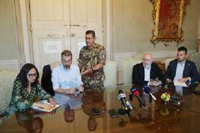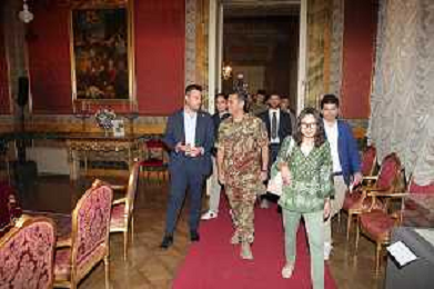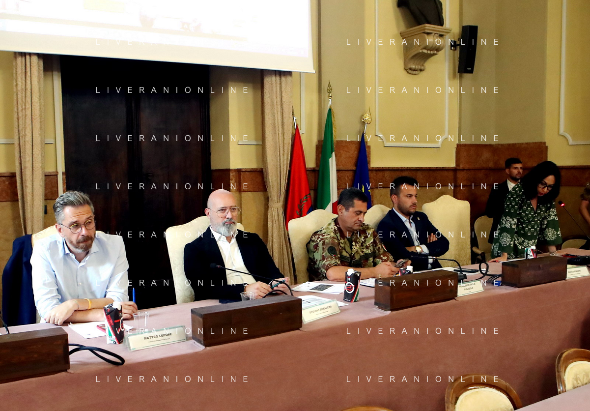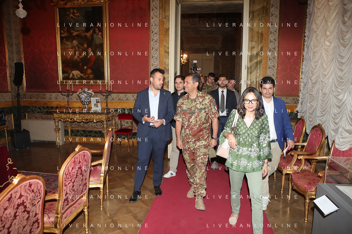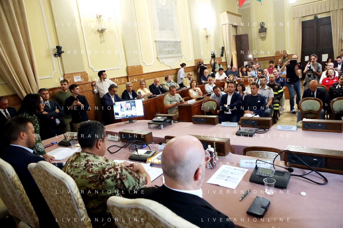 IMOLA 01 08 2023 VISITA DEL COMMISSARIO GEN.FIGLIUOLO PAOLO FRANCESCO A IMOLA E VALLATA DEL FIUME SANTERNO NELLA FOTO SINDACO MARCO PANIERI GEN.FIGLIUOLO PAOLO FRANCESCO E IRENE PRIOLO NELLA SAL ROSSA DEL COMUNE DI IMOLA FOTO GIANNI SANNA-AG ALDO LIVERANI SAS