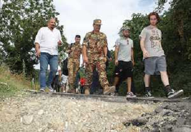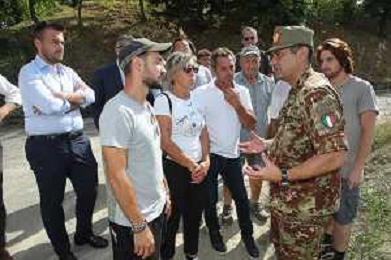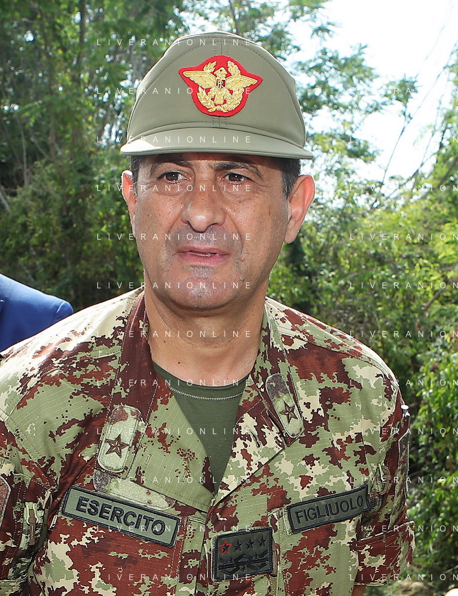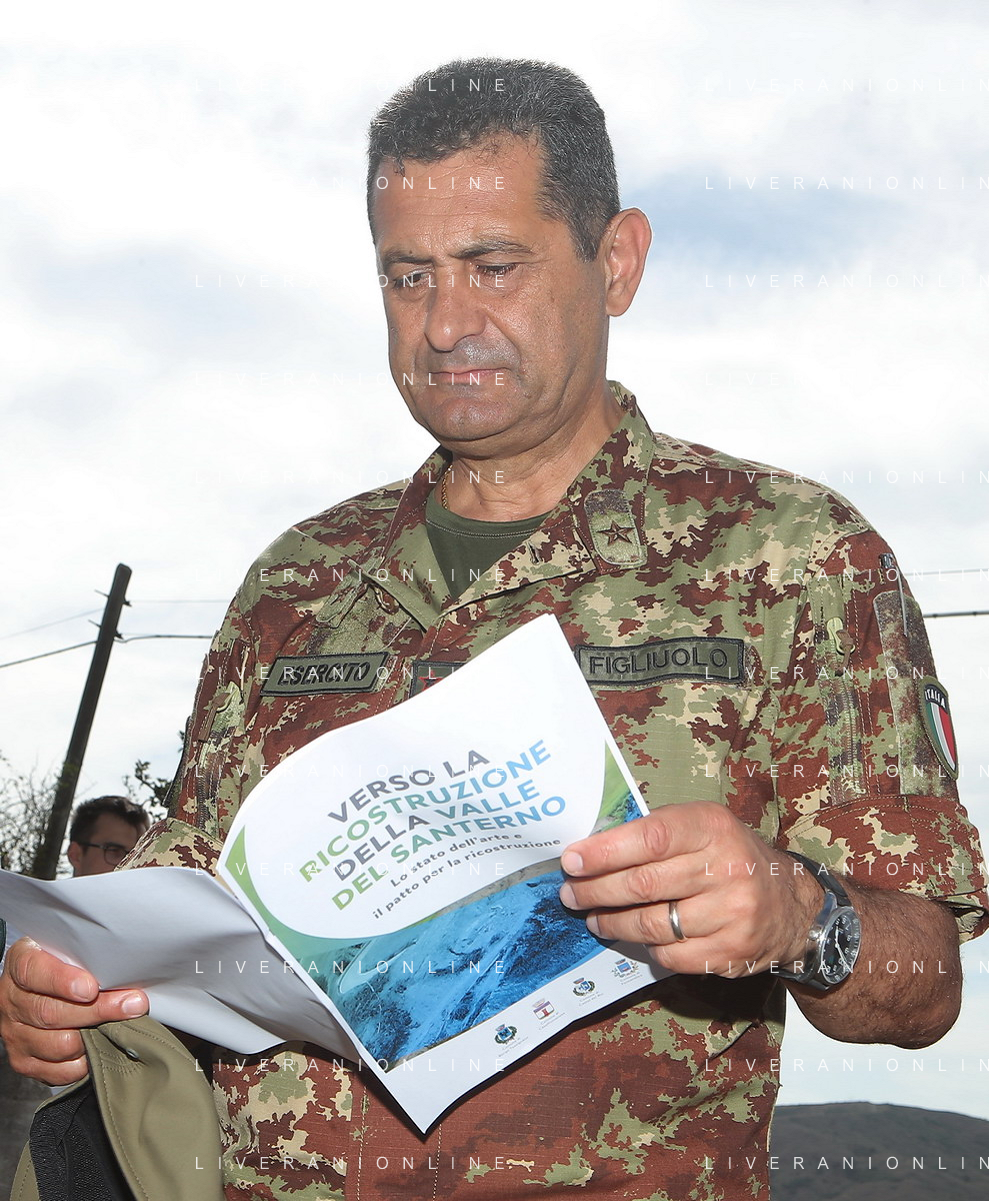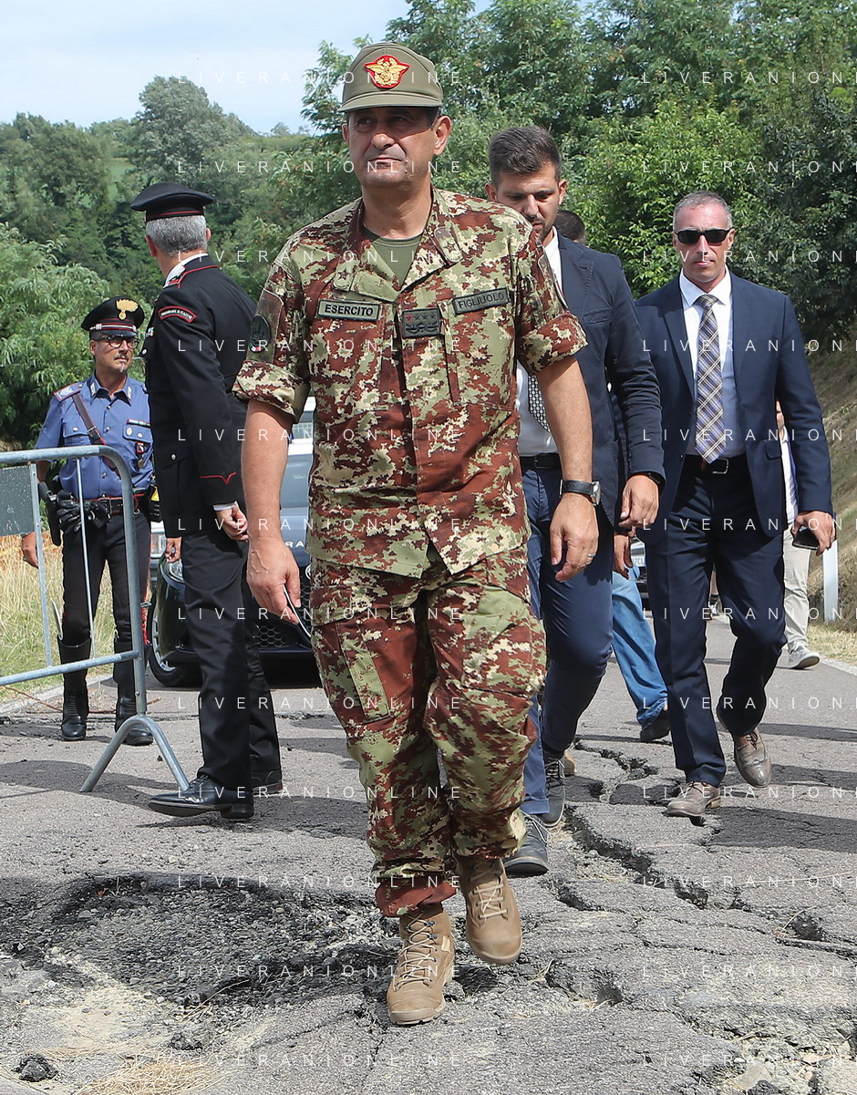 IMOLA 01 08 2023 VISITA DEL COMMISSARIO GEN.FIGLIUOLO PAOLO FRANCESCO A IMOLA E VALLATA DEL FIUME SANTERNO NELLA FOTO ARRIVO IL GENERALE FIGLIUOLO PAOLO FRANCESCO GUARDA LA FRANA PROVOCATA DALLA ALLUVIONE DI MAGGIO NELLA VALLATA DEL SANTERNO FOTO GIANNI SANNA-AG ALDO LIVERANI SAS