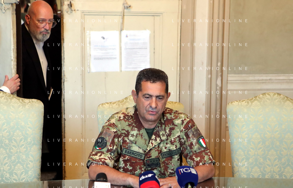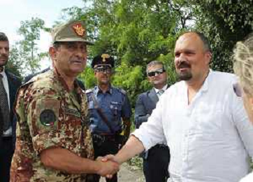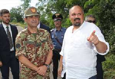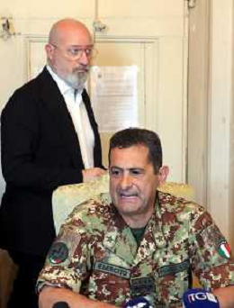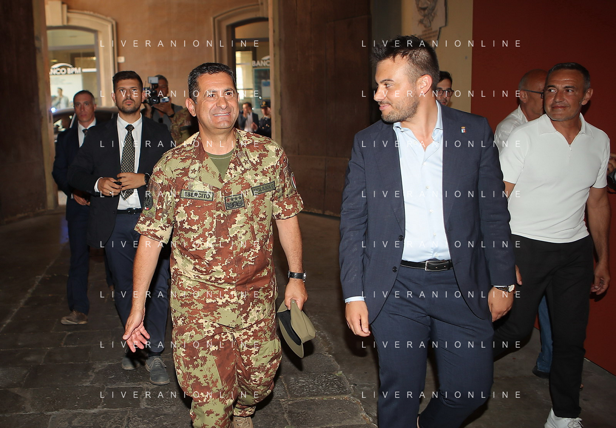 IMOLA 01 08 2023 VISITA DEL COMMISSARIO GEN.FIGLIUOLO PAOLO FRANCESCO A IMOLA E VALLATA DEL FIUME SANTERNO NELLA FOTO ARRIVO SINDACO DI IMOLA MARCO PANIERI E GENERALE FIGLIUOLO PAOLO FRANCESCO FOTO GIANNI SANNA-AG ALDO LIVERANI SAS