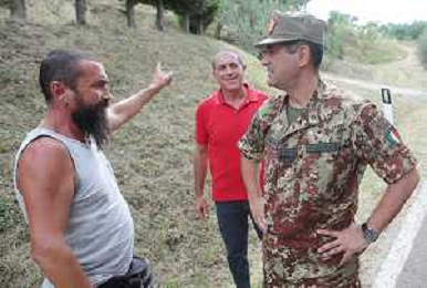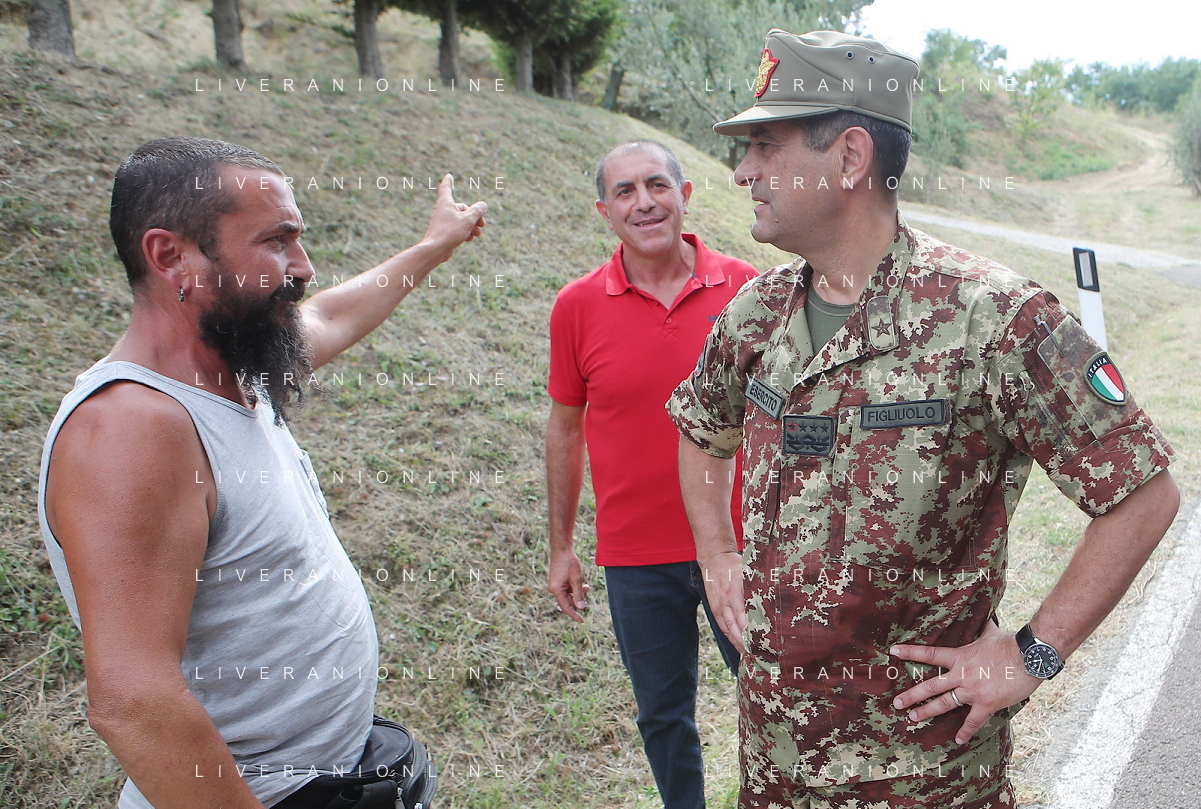 FONTANELICE 01 08 2023 GENERALE PAOLO FIGLIUOLO VISITA I POSTI FRANATI SULLA VALLATA DEL FIUME SANTERNO NELLA FOTO GENERALE PAOLO FIGLIUOLO CON UN CITTADINO DI FONTANELICE CHA HA SUBITO I DANNI DELLE FRANE FOTO GIANNI SANNA-AG ALDO LIVERANI SAS
