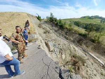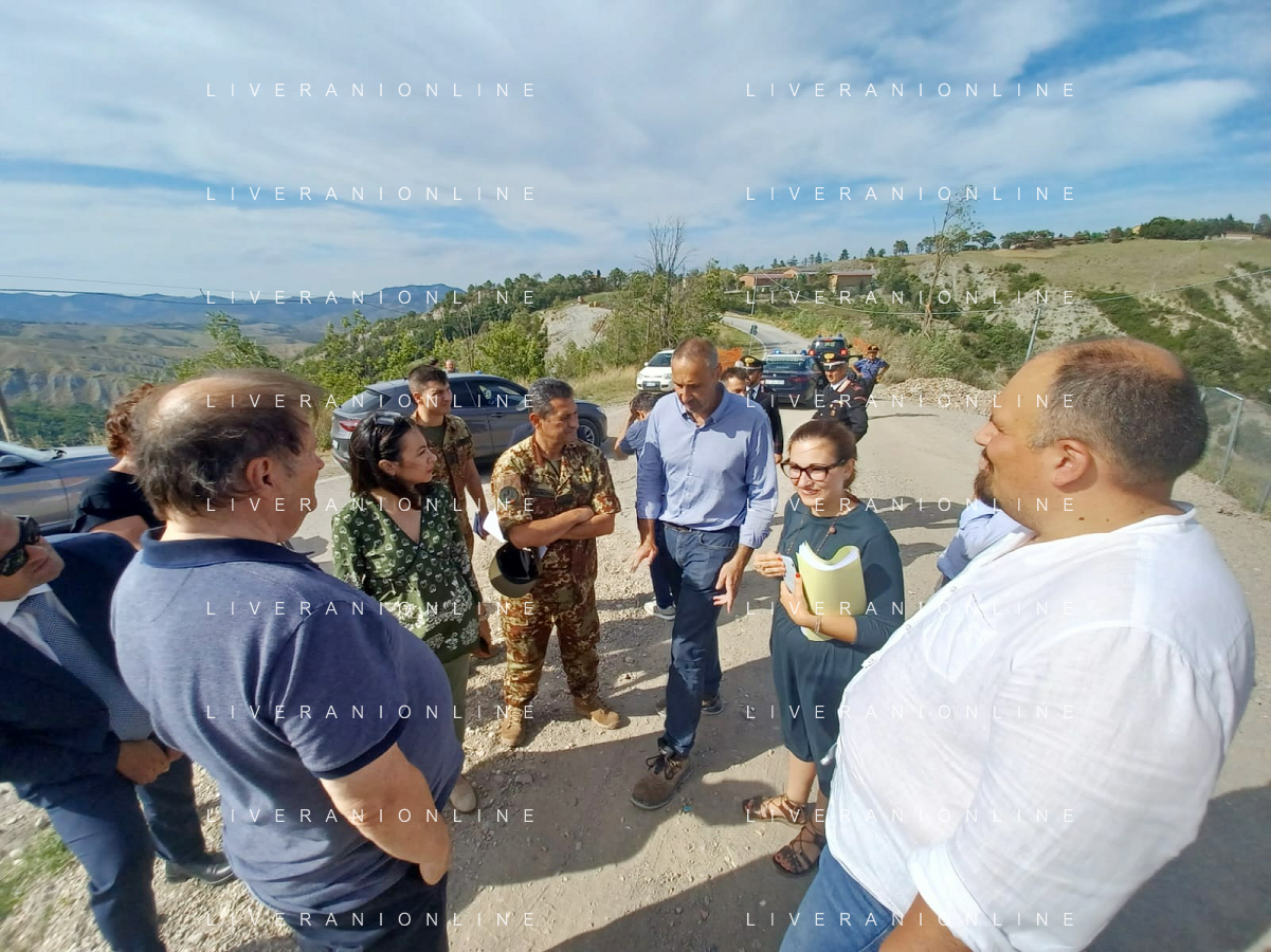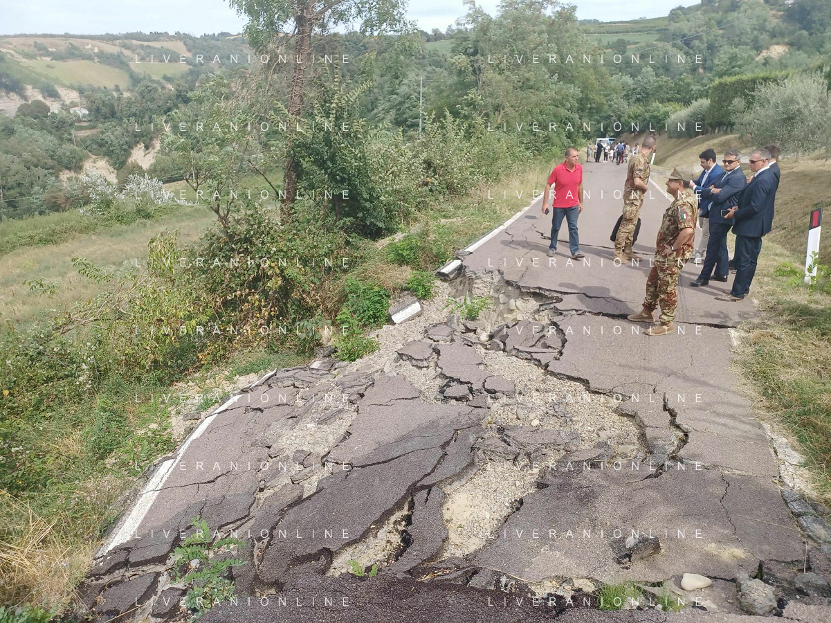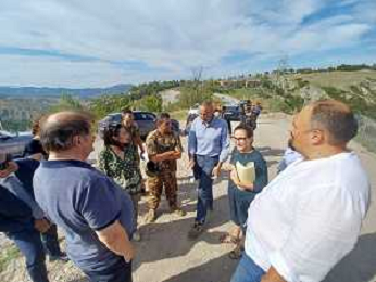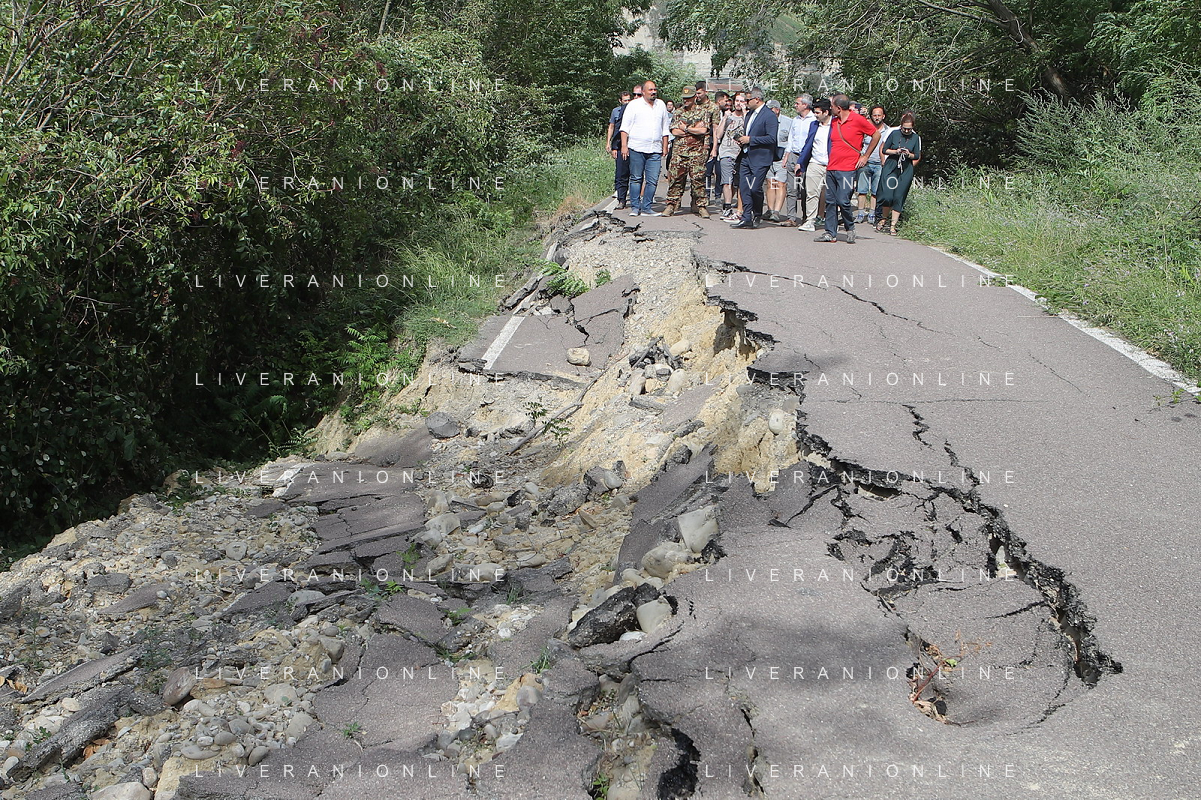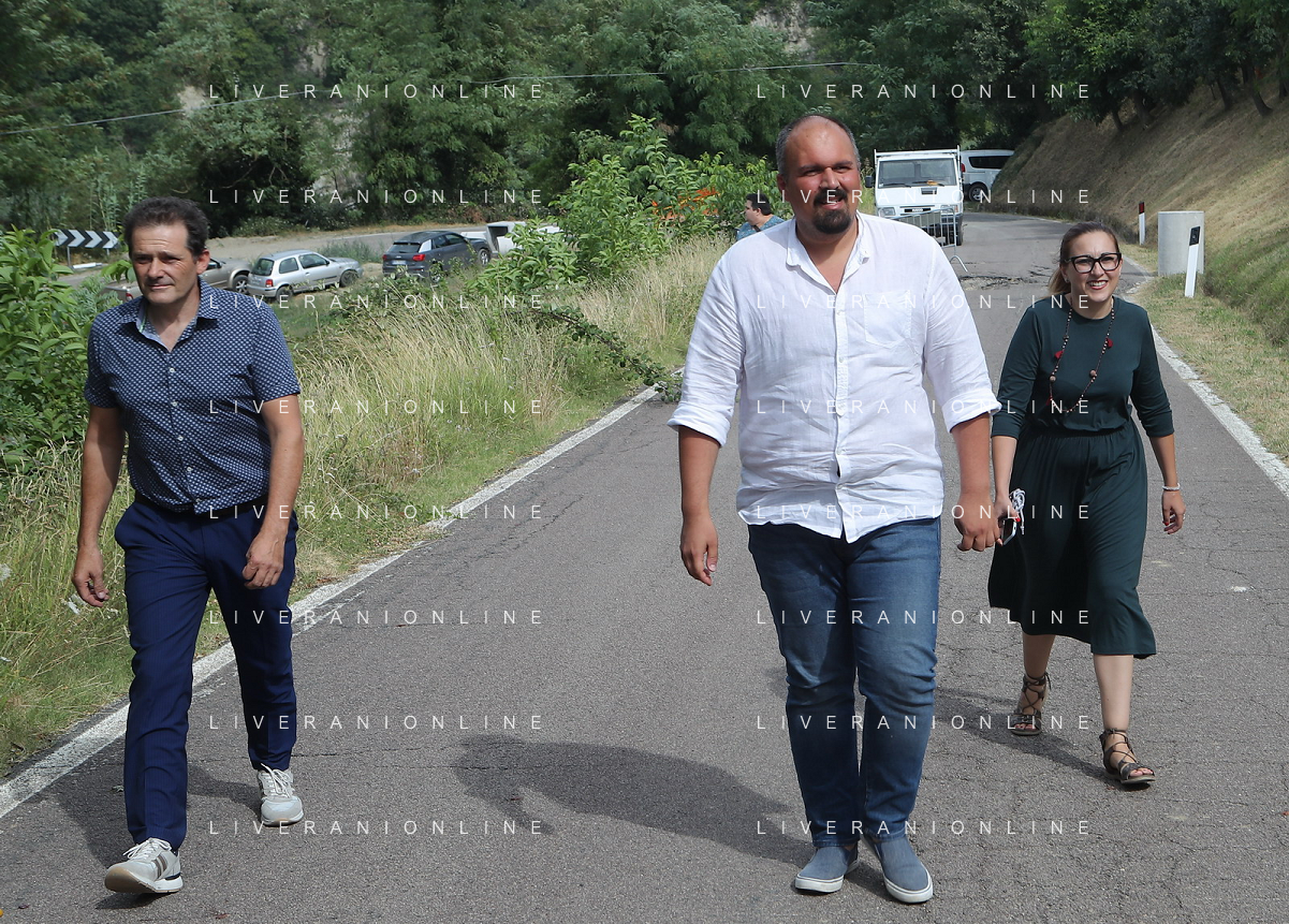 FONTANELICE 01 08 2023 GENERALE PAOLO FIGLIUOLO VISITA I POSTI FRANATI SULLA VALLATA DEL FIUME SANTERNO NELLA FOTO GENERALE PAOLO FIGLIUOLO CON SINDACO DI FONTANELICE GABRIELE MELUZZI CON LA STRADA FRANATA FOTO GIANNI SANNA-AG ALDO LIVERANI SAS