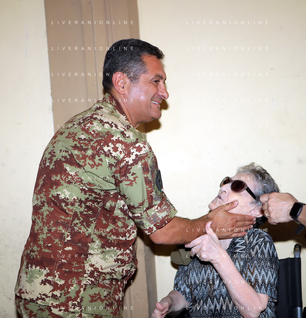 IMOLA 01 08 2023 VISITA DEL COMMISSARIO GEN.FIGLIUOLO PAOLO FRANCESCO A IMOLA E VALLATA DEL FIUME SANTERNO NELLA FOTO GENERALE FIGLIUOLO PAOLO FRANCESCO SALUTA LA ZIA CHE ABITA A IMOLA FOTO GIANNI SANNA-AG ALDO LIVERANI SAS