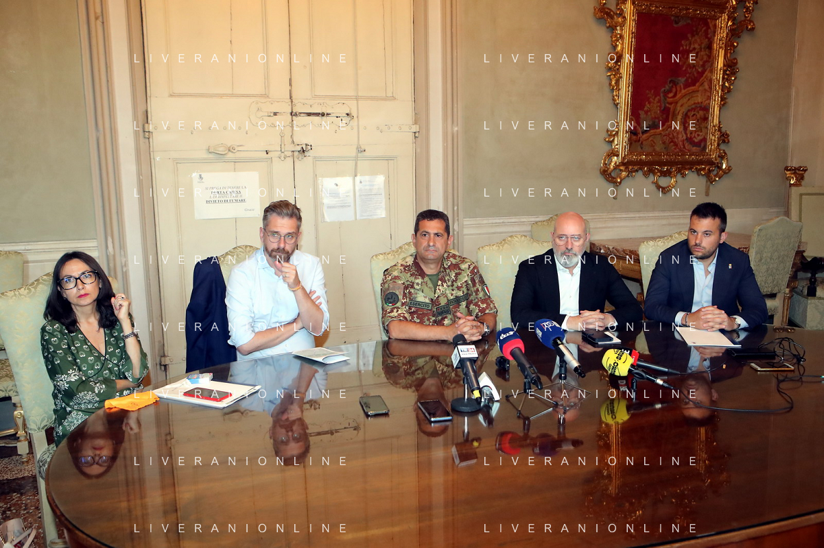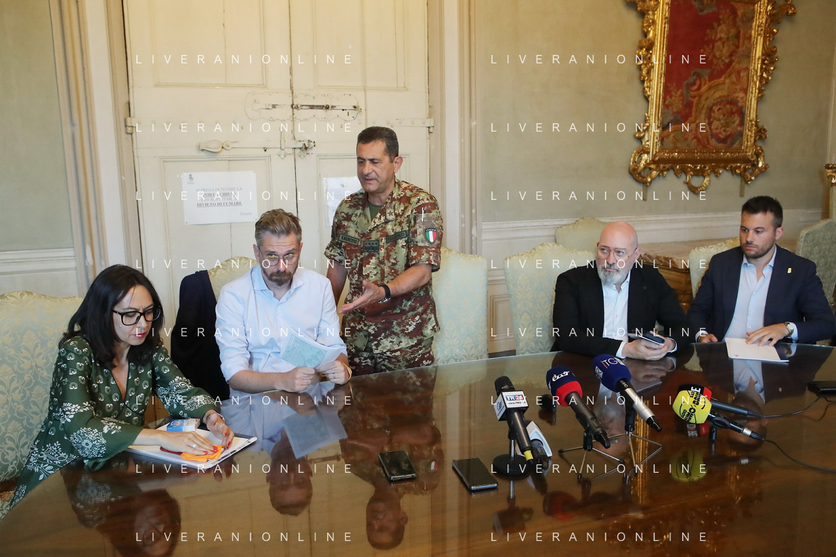 IMOLA 01 08 2023 GENERALE FIGLIUOLO PAOLO FRANCESCO VISITA IMOLA NELLA FOTO DA SINISTRA SINDACO DI BOLOGNA MATTEO LEPORE,PRESIDENTE DELLA REGIONE EMILIA ROMAGNA STEFANO BONACCINI GENERALE PAOLO FIGLIUOLO SINDACO DI IMOLA MARCO PANIERI E IRENE PRIOLO VICE PRESIDENTE DELLA REGIONE EMILIA ROMAGNA FOTO GIANNI SANNA-AG ALDO LIVERANI SAS