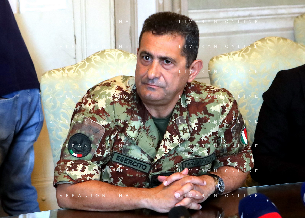 IMOLA 01 08 2023 GENERALE FIGLIUOLO PAOLO FRANCESCO VISITA IMOLA NELLA FOTO DA SINISTRA SINDACO MARCO PANIERI GENERALE PAOLO FIGLIUOLO STEFANO BONACCINI PRES REGIONE EMILIA ROMAGNA E INVITATI FOTO GIANNI SANNA-AG ALDO LIVERANI SAS