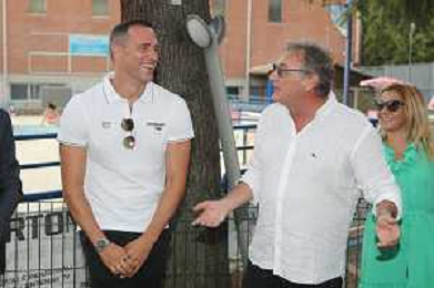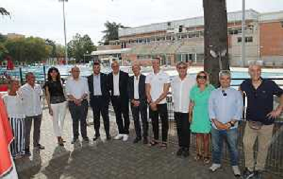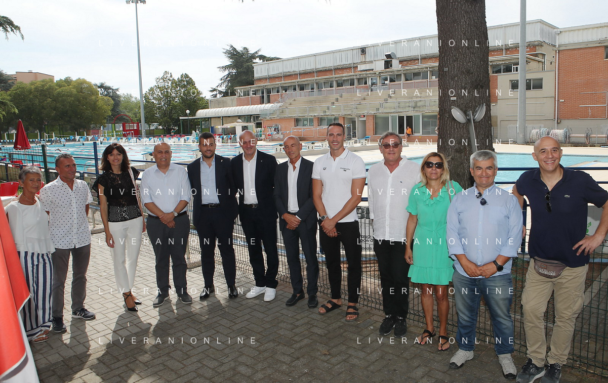 IMOLA 01 08 2023 IL SOSTEGNO DELLA BCC RAVENNATE FORLIVESE E IMOLESE ALLA PISCINA COMUNALE DANNEGGIATA DALL ALLUVIONE NEL MESE MAGGIO 2023 NELLA FOTO SINDACO MARCO PANIERI FABIO SCOZZOLI IMOLA NUOTO,MIRCO PIANCASTELLI PRESIDENTE IMOLA NUOTO,LORENZO MUSCARI GESTORE DELLA PISCINA,GIUSEPPE GAMBI PRESIDENTE BCC IMOLESE RAVENATE,PAOLO MONGARDI SACMI,GIANLUCA CERONI DIRETTORE BCC,FEDERICA GUERRINI BCC,MARIA GRAZIA PENAZZI IMOLA NUOTO FOTO GIANNI SANNA-AG ALDO LIVERANI SAS