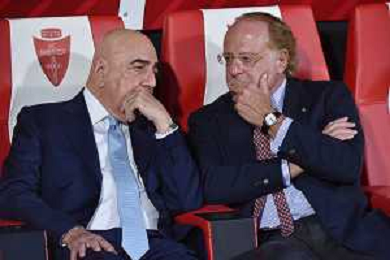 Paolo Scaroni presidente Milan SX e Adriano Galliani amministratore delegato Monza DX Monza vs Milan Monza 08-08-2023 U-Power Stadium amichevole precampionato foto Roberto Garavaglia/ag. Aldo Liverani sas