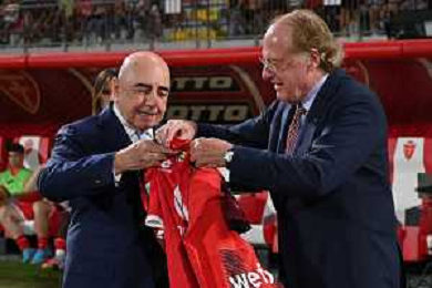 il saluto di Piersilvio Berlusconi Monza vs Milan Monza 08-08-2023 U-Power Stadium amichevole precampionato foto Roberto Garavaglia/ag. Aldo Liverani sas