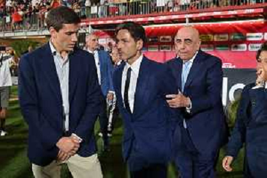 da SX Luigi Berlusconi, Piersilvio Berlusconi e Adriano Galliani Monza vs Milan Monza 08-08-2023 U-Power Stadium amichevole precampionato foto Roberto Garavaglia/ag. Aldo Liverani sas