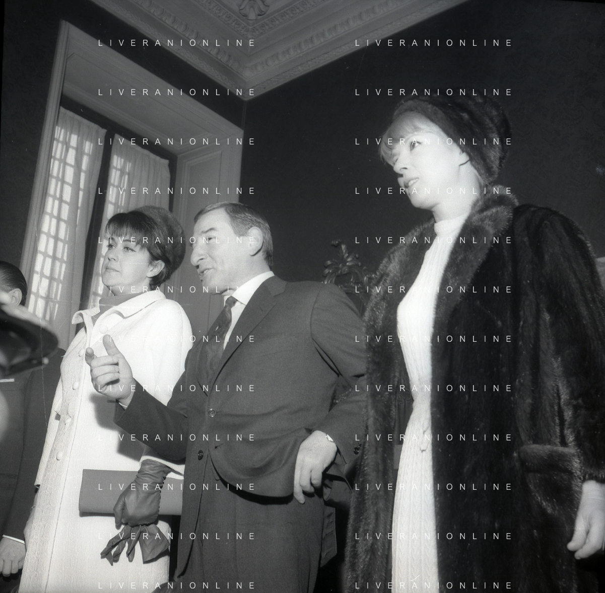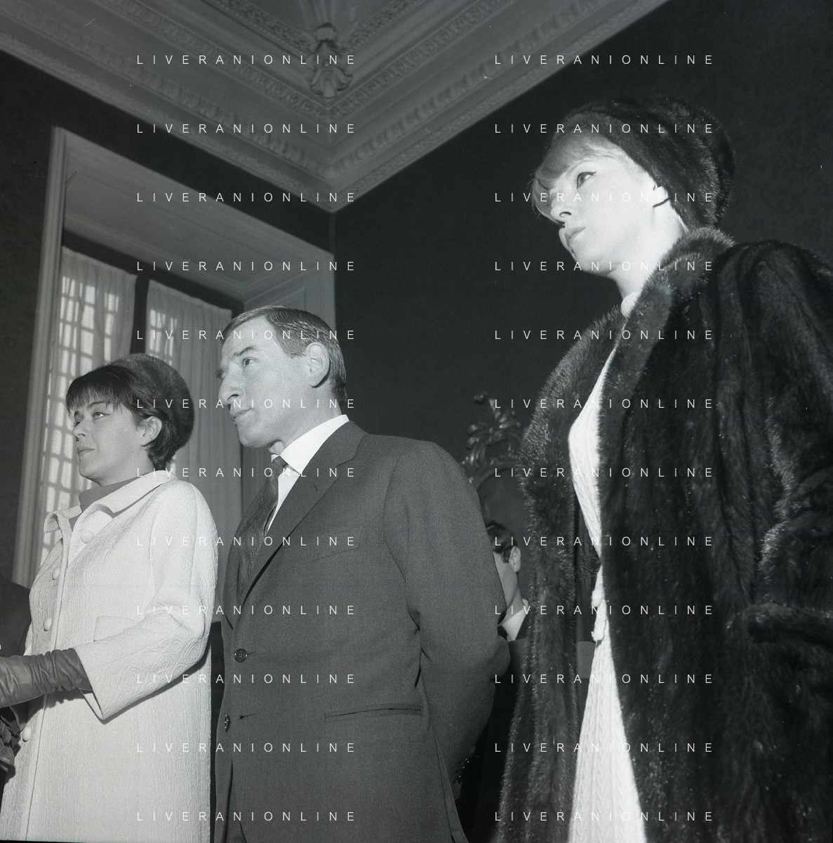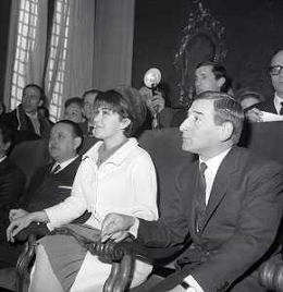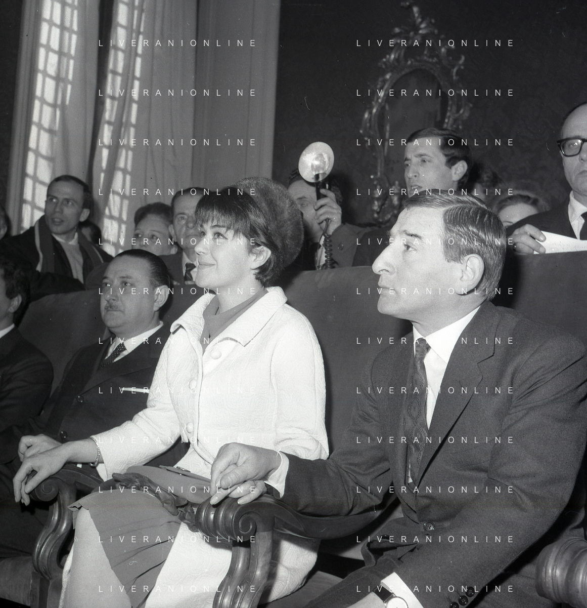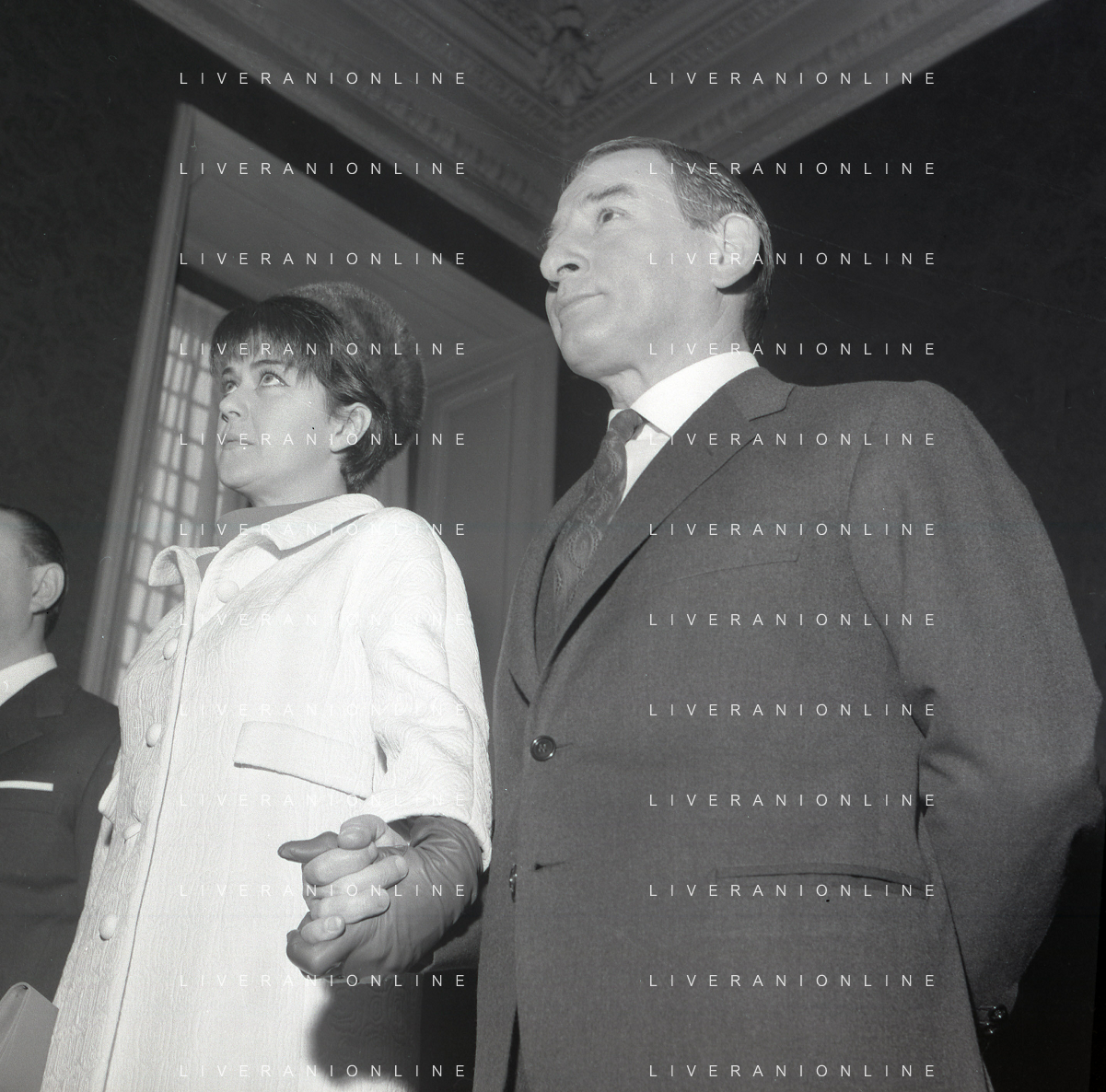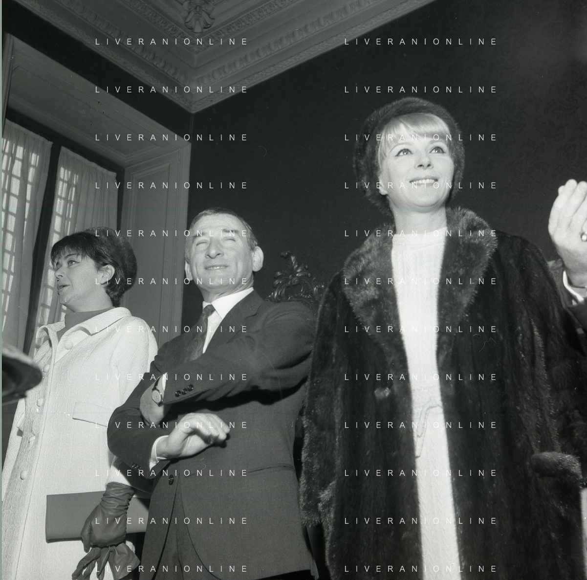 NEG-RETROSPETTIVA RENATO RASCEL ATTORE NELLA FOTO RENATO RASCEL CON HUGUETTE CARTIER A MILANO PER IL LORO MATRIMONIO IL GIORNO 03-01-1966 AG ALDO LIVERANI SAS