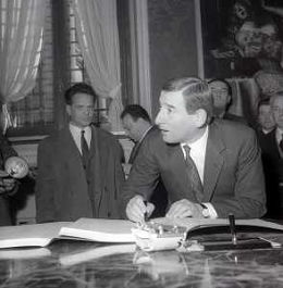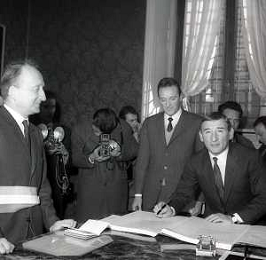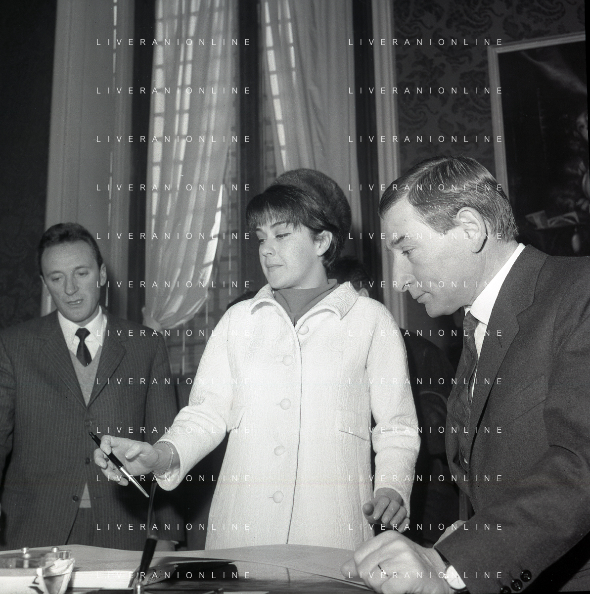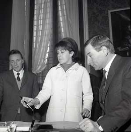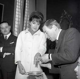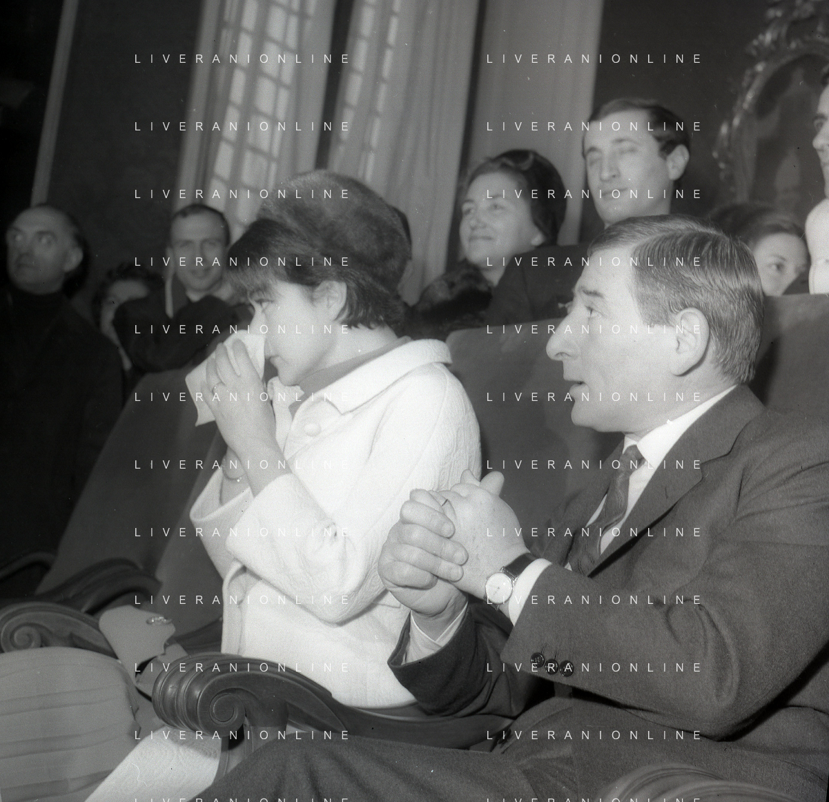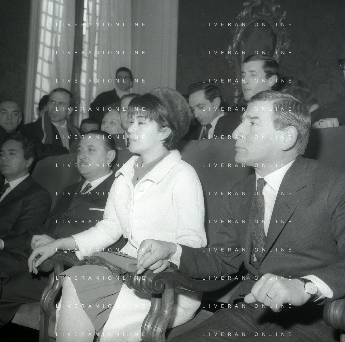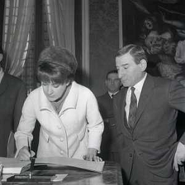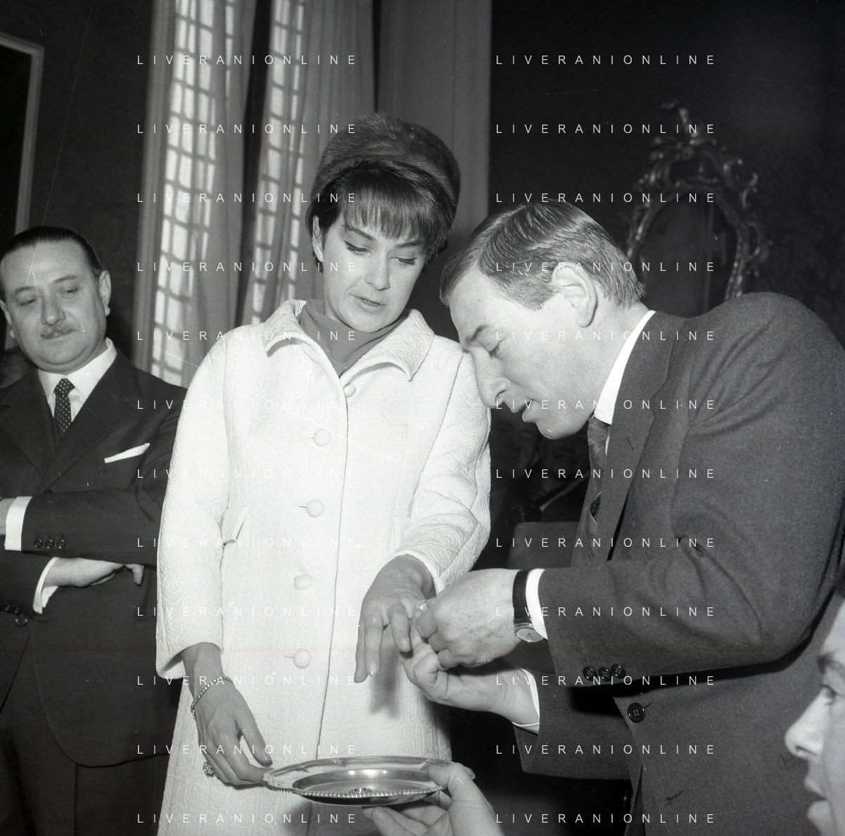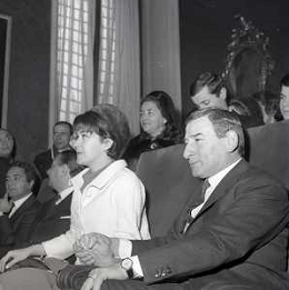 NEG-RETROSPETTIVA RENATO RASCEL ATTORE NELLA FOTO RENATO RASCEL CON HUGUETTE CARTIER A MILANO PER IL LORO MATRIMONIO IL GIORNO 03-01-1966 AG ALDO LIVERANI SAS