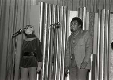 NEG-1976 SANREMO-RETROSPETTIVA DORI GHEZZI CANTANTE NELLA FOTO DORI GHEZZI CON WESS JOHNSON AG ALDO LIVERANI SAS