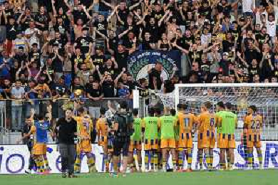 Frosinone vs Pisa Coppa Italia Frecciarossa - Primo turno - Stadio B.Stirpe - Frosinone 11-08-2023 nella foto Saluto Pisa ai tifosi FOTO FEDERICO GAETANO-AG ALDO LIVERANI SAS