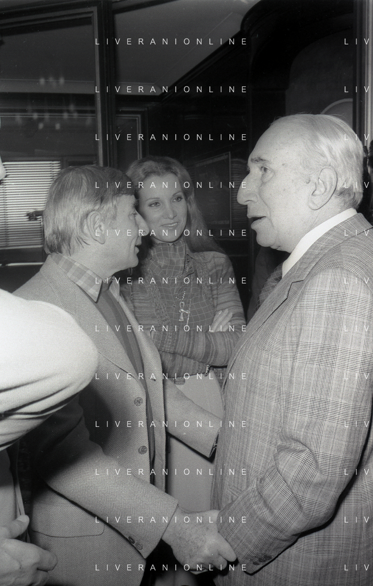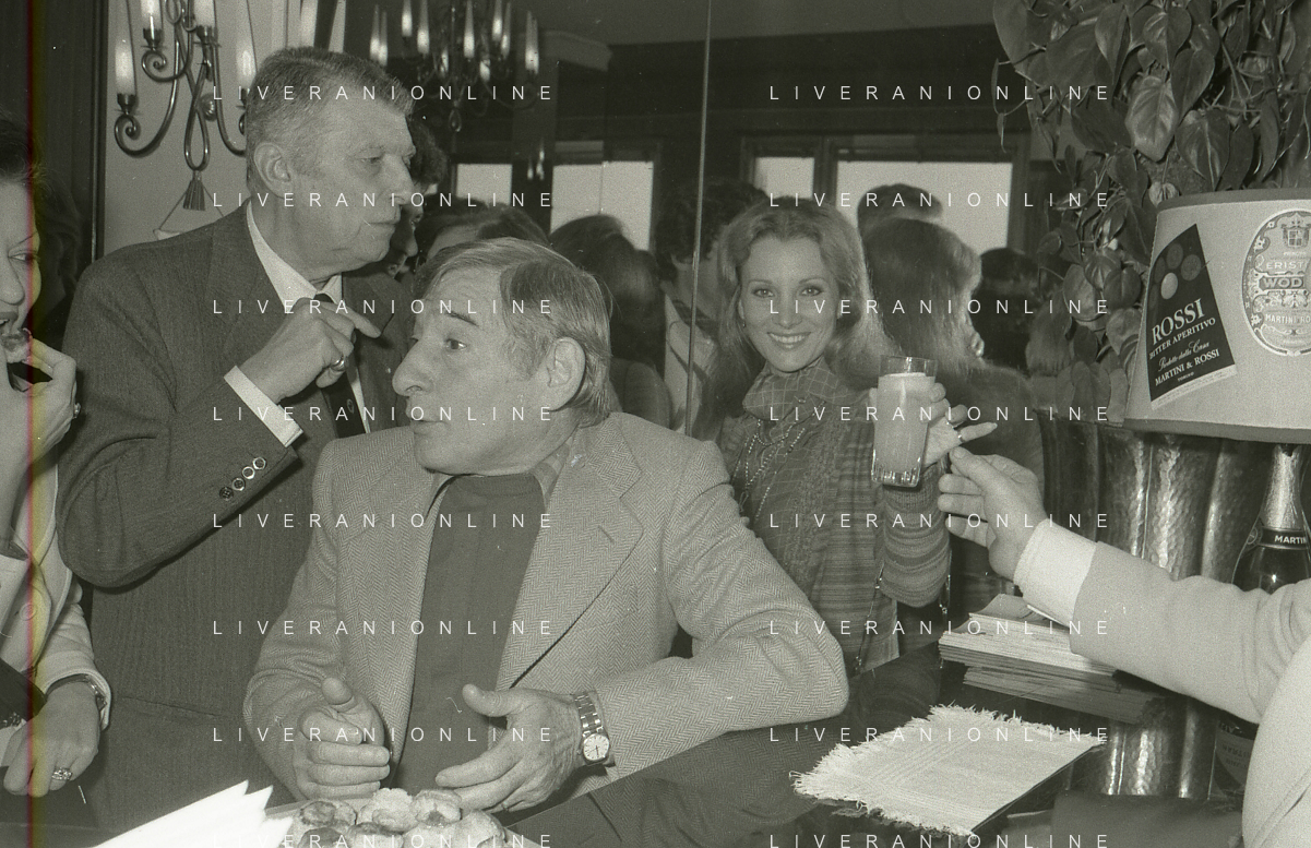 NEG-RETROSPETTIVA RENATO RASCEL ATTORE NELLA FOTO RENATO RASCEL E GIUDITTA SANTARINI E REMIGIO PAONE NELL'ANNO 1978 A MILANO TERRAZZA MARTINI AG ALDO LIVERANI SAS