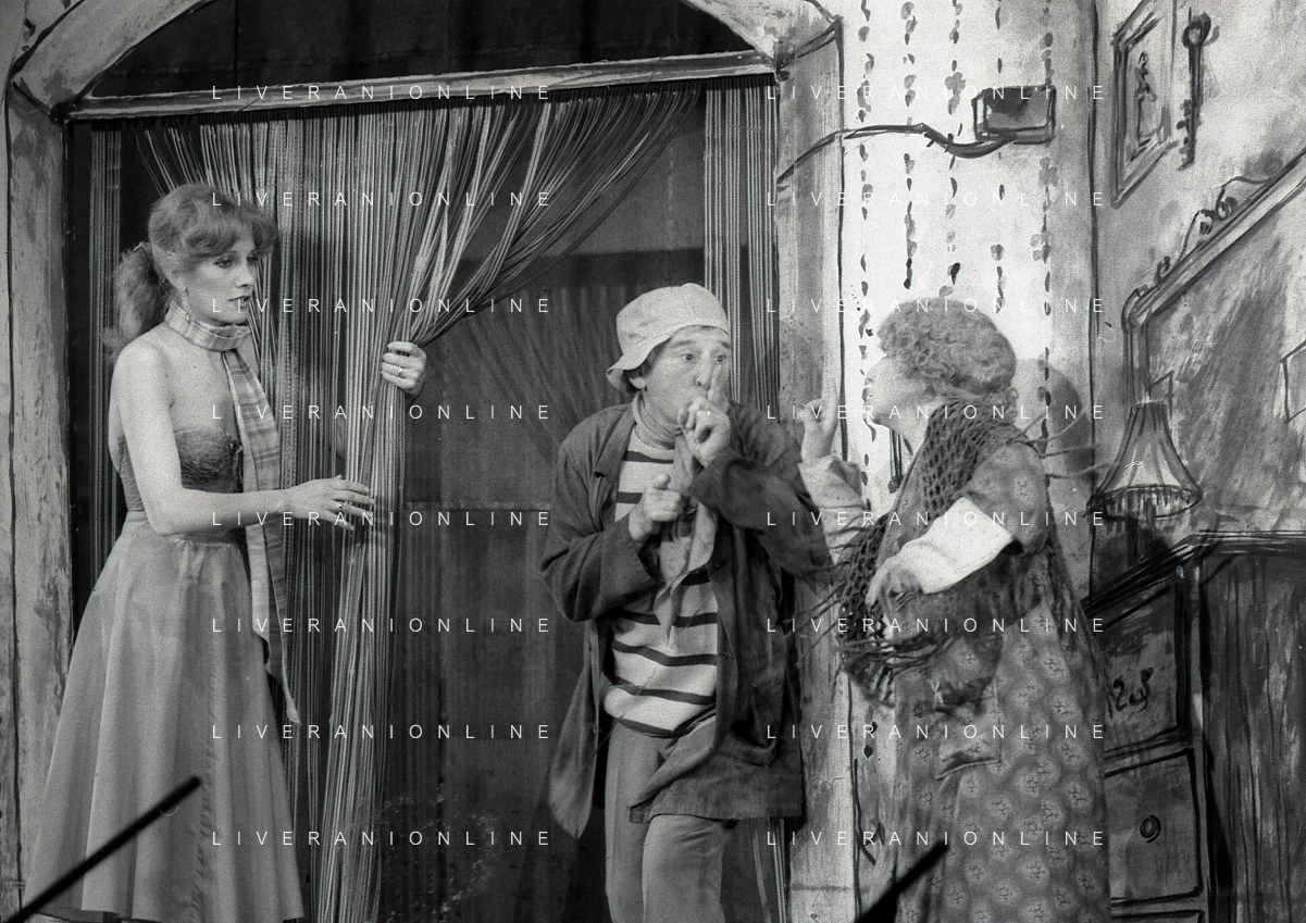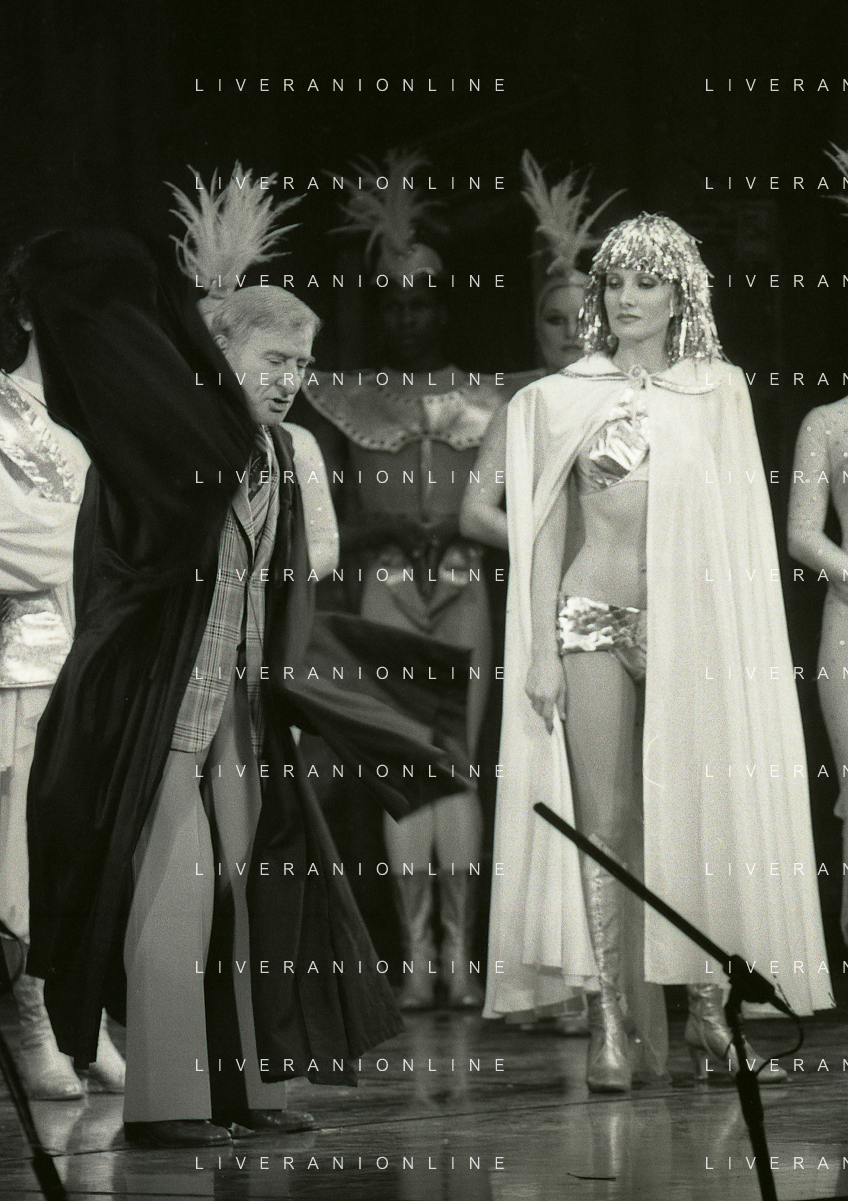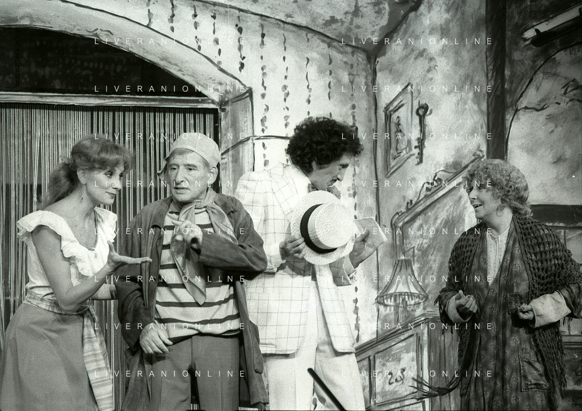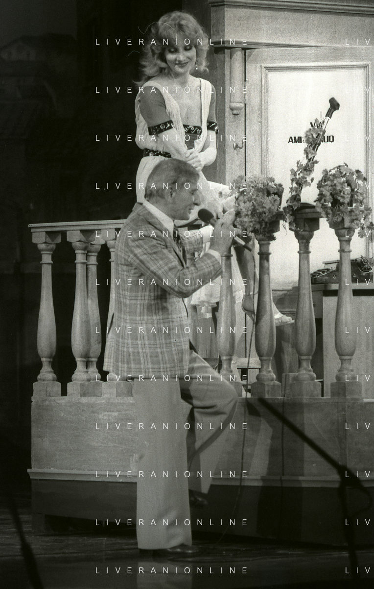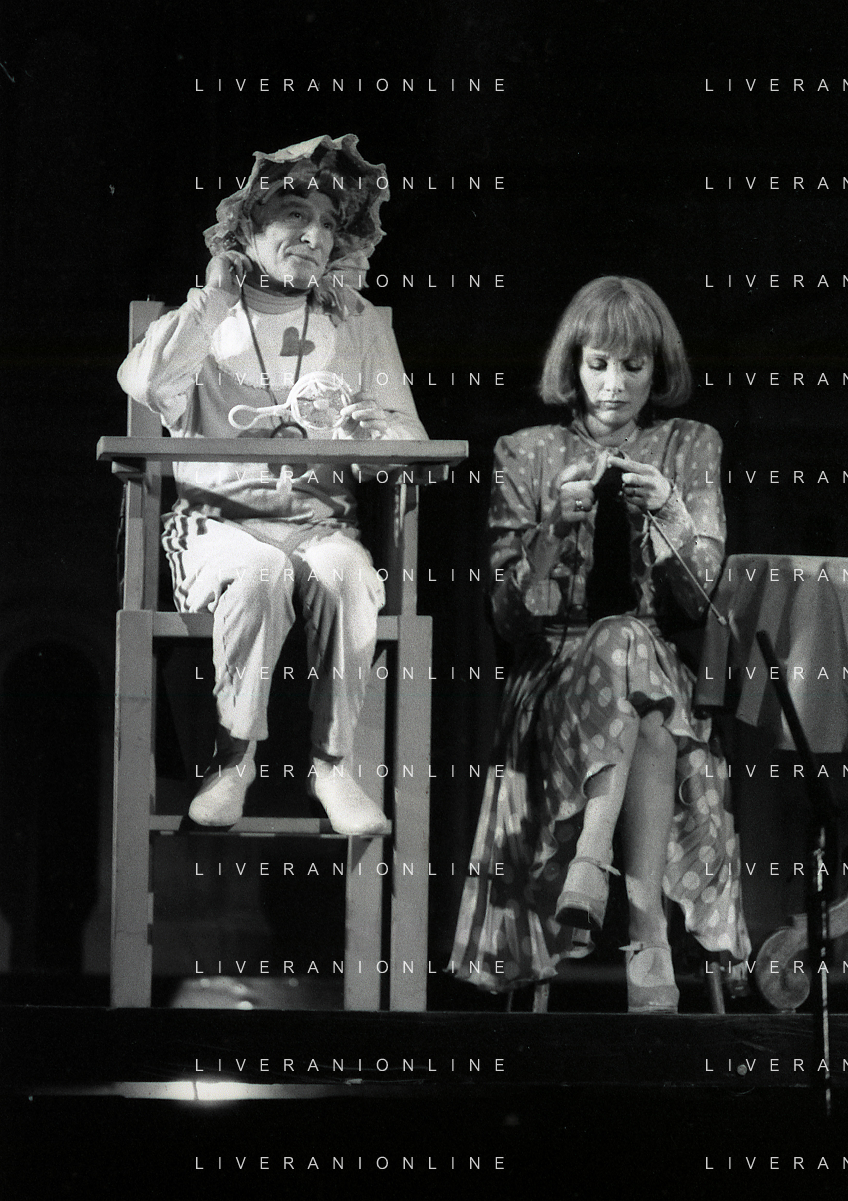 NEG-RETROSPETTIVA RENATO RASCEL ATTORE NELLA FOTO RENATO RASCEL E GIUDITTA SANTARINI NELL'ANNO 1980 A MILANO NELLA COMMEDIA TEATRALE IN BOCCA ALL'UFO AG ALDO LIVERANI SAS