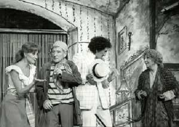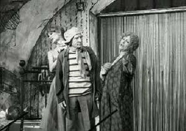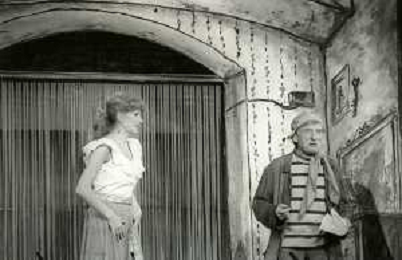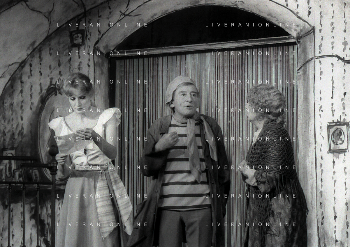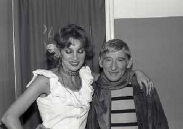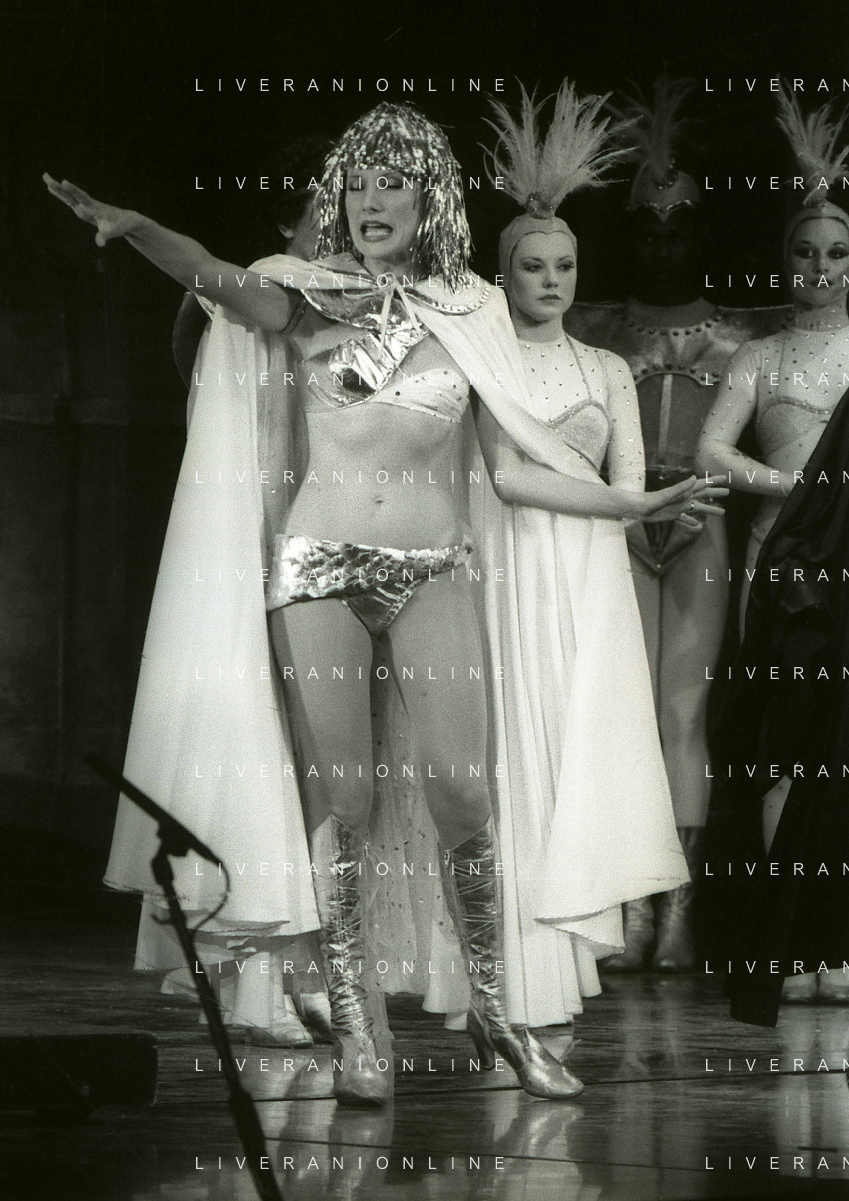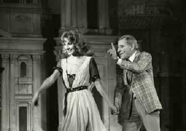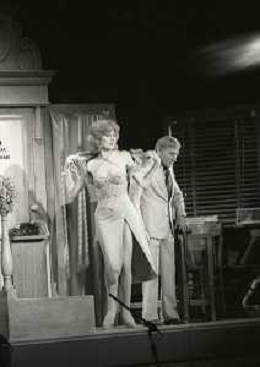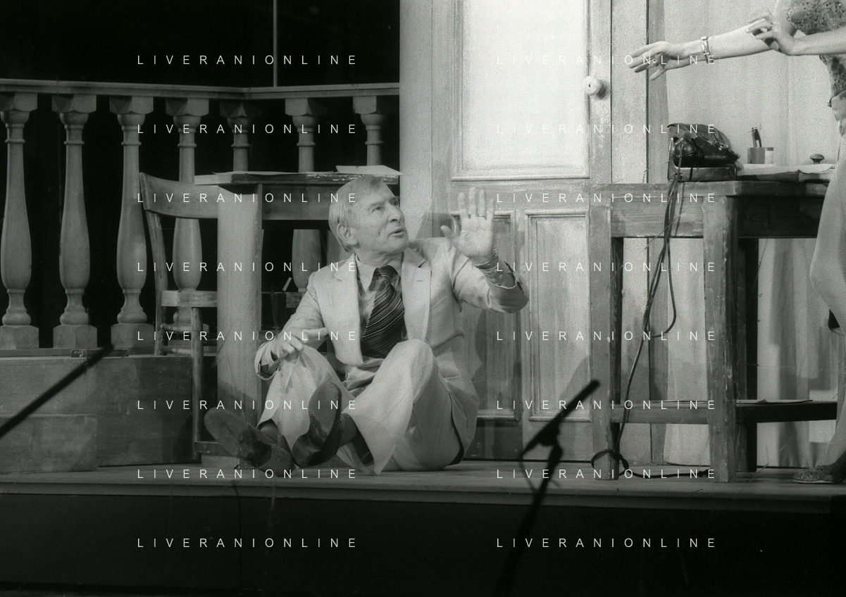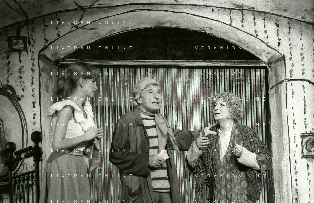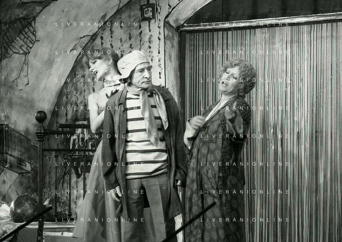 NEG-RETROSPETTIVA RENATO RASCEL ATTORE NELLA FOTO RENATO RASCEL E GIUDITTA SANTARINI NELL'ANNO 1980 A MILANO NELLA COMMEDIA TEATRALE IN BOCCA ALL'UFO AG ALDO LIVERANI SAS