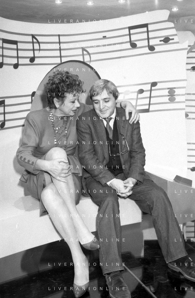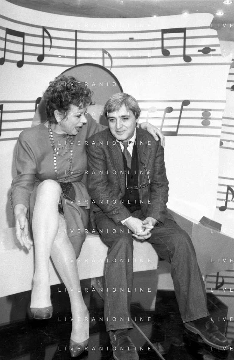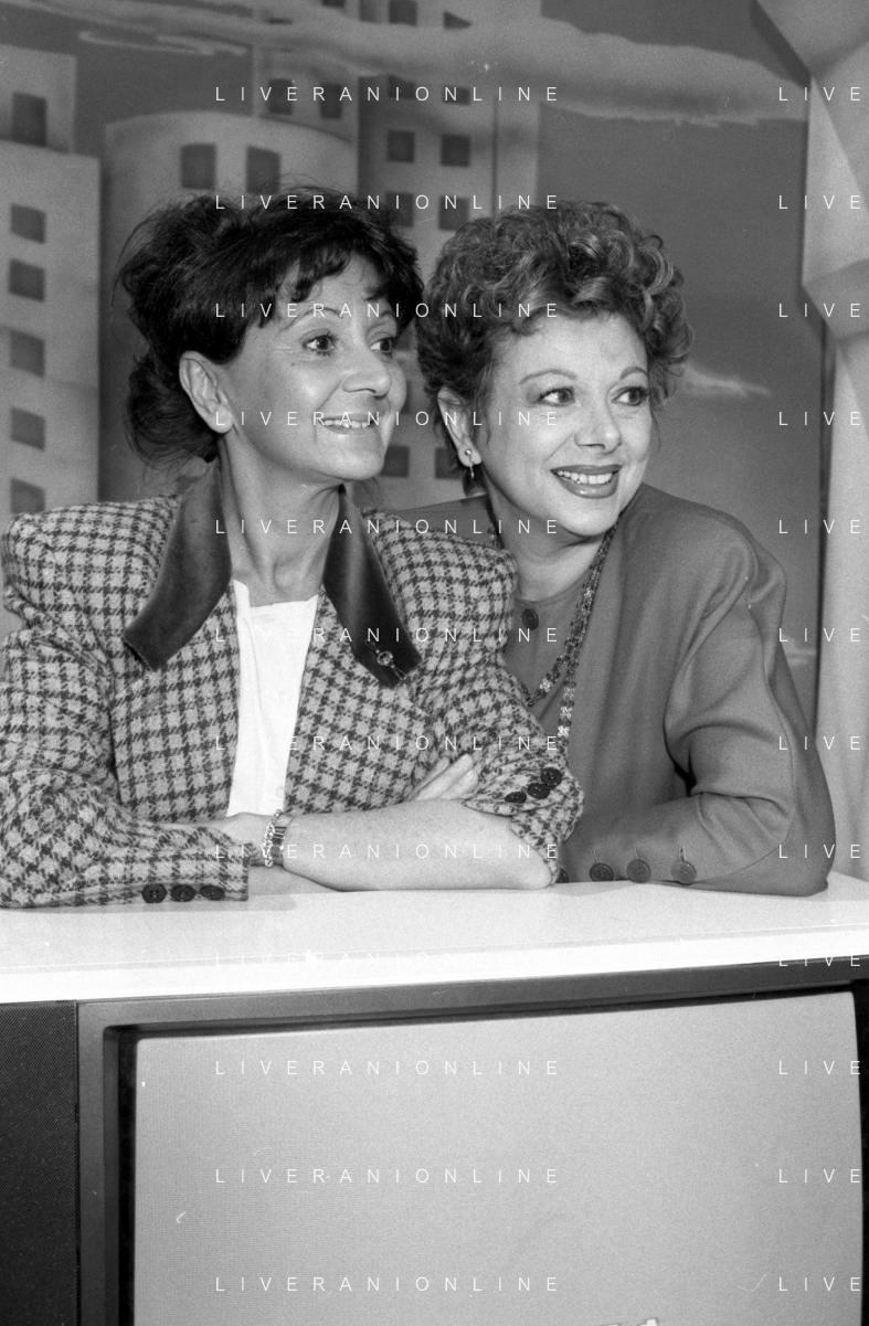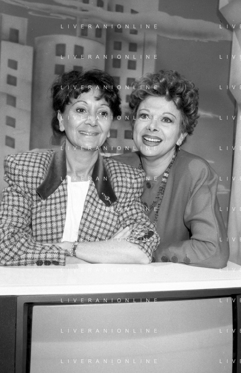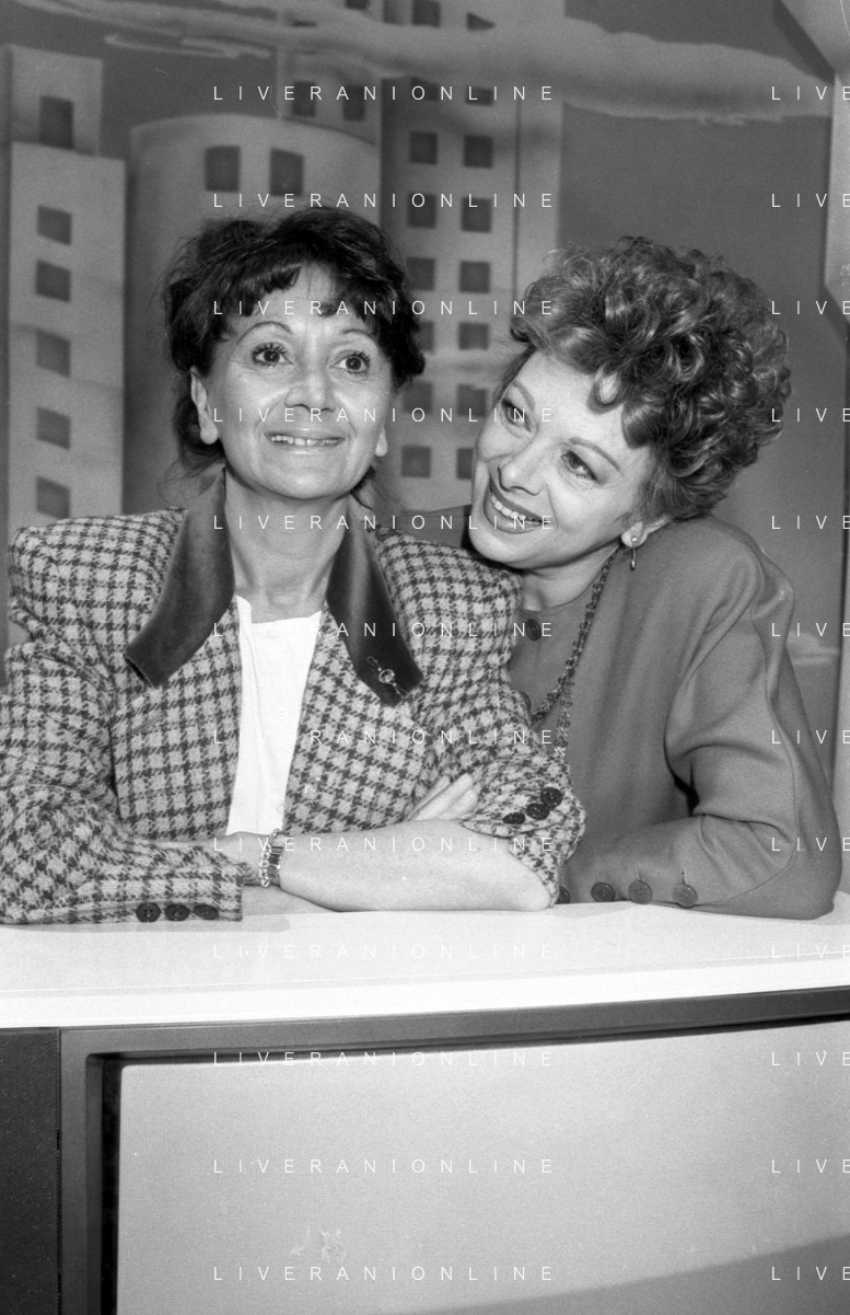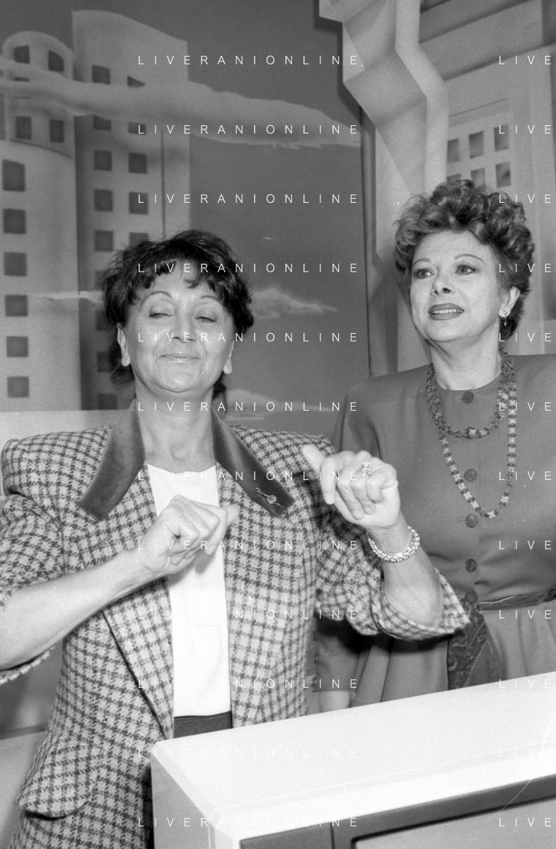 Neg- RETROSPETTIVA SANDRO MILO ATTRICE NELLA FOTO CON ANNA TORTORA A ROMA NELL'ANNO 1988 NELLA TRASMISSIONE TELEVISIVA “PICCOLI E GRANDI FANS“ AG ALDO LIVERANI SAS